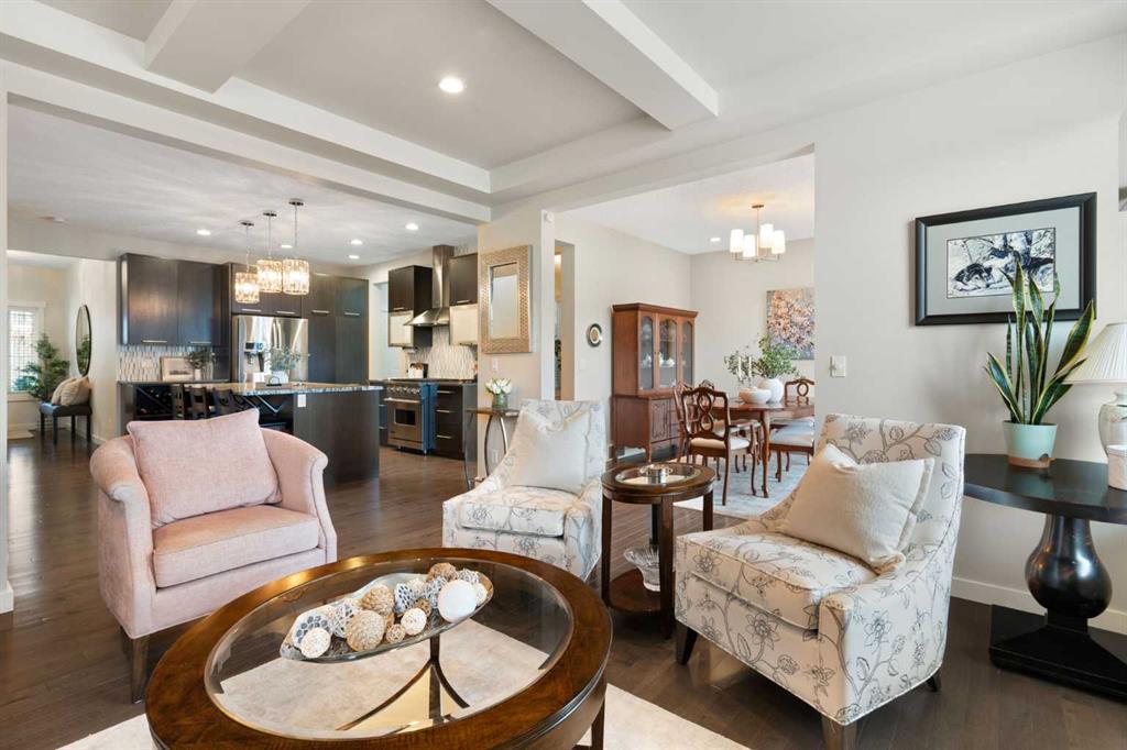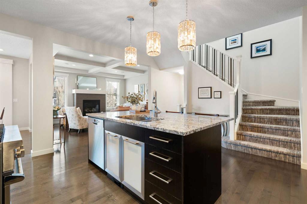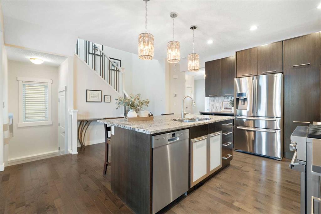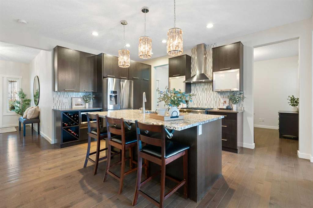 Hello, Gorgeous! Welcome to 1173 Coopers Drive SW, a former showhome located in the heart of Coopers Crossing, offering 5 bedrooms, a fully finished basement, and over 2,345 sq. ft. of above-grade living space. Designed to showcase the best of the community, this home delivers a refined, move-in-ready feel with fresh interior and exterior paint and thoughtful updates throughout. The main floor features a bright, functional layout ideal for both daily living and entertaining, with a spacious kitchen, walk-in pantry, dedicated home office, custom mudroom cabinetry, and seamless flow into the dining and living areas. Upstairs, the primary retreat includes a 5-piece ensuite and custom walk-in closet, complemented by two additional bedrooms, a full bathroom, upper-level laundry, and a generous family room. The fully finished basement expands the home’s versatility with two additional bedrooms, a full bathroom, and a large recreation room with heated floors, perfect for guests, teens, or extended family living. Outside, enjoy a backyard backing onto a park and playground, with a peaceful pond just steps away. Professionally landscaped front and back yards, a heated double attached garage, and smart-home upgrades complete this exceptional offering. A rare opportunity to own a former showhome in one of Airdrie’s most desirable communities, This home truly needs to be seen to be appreciated.