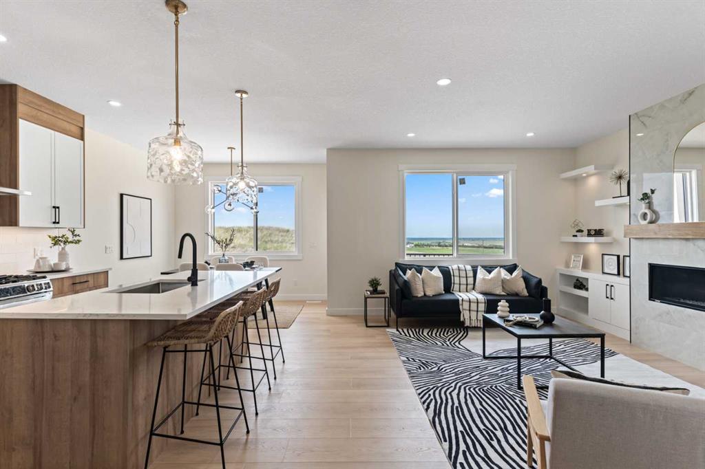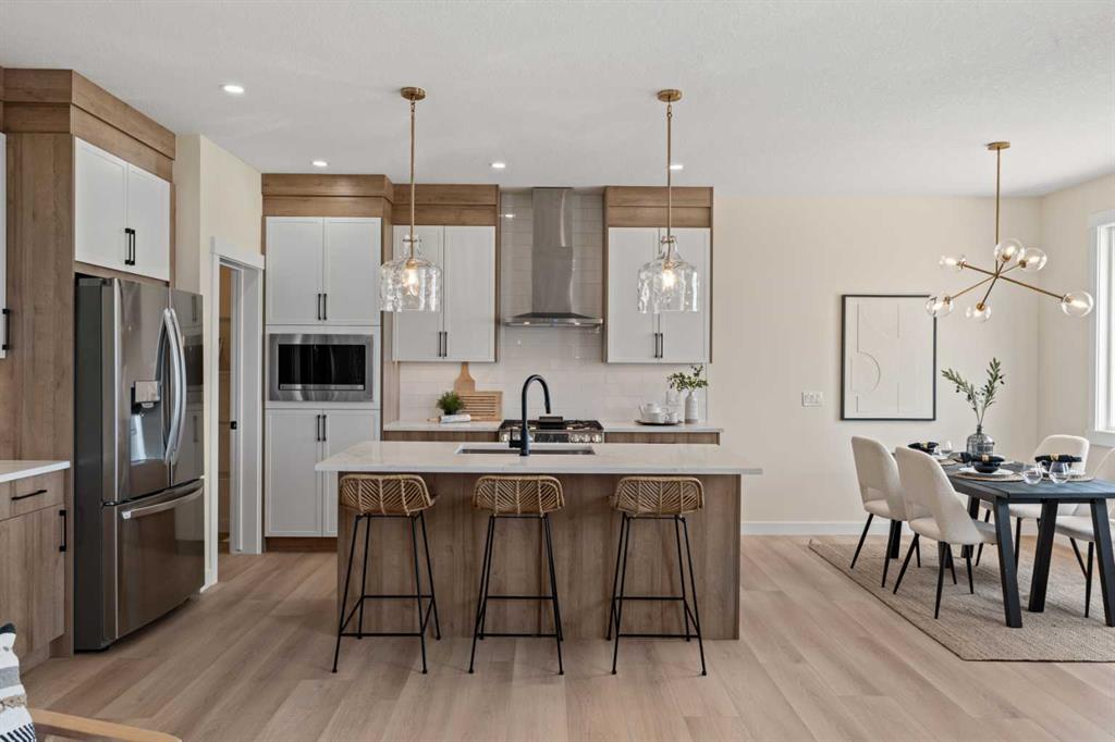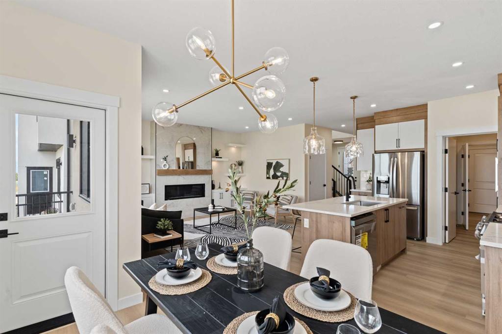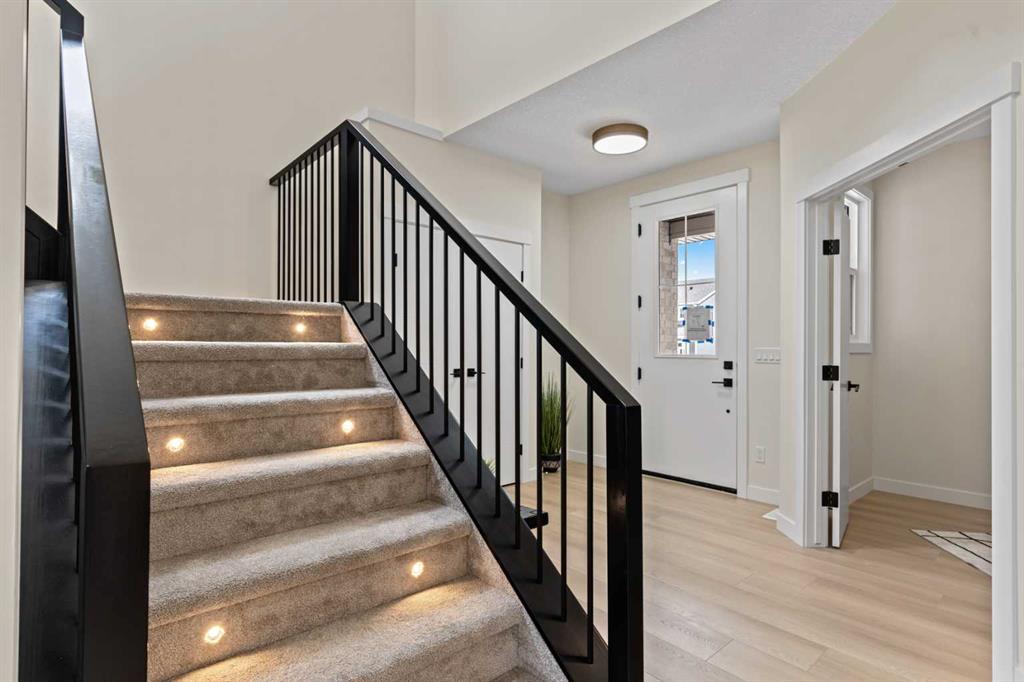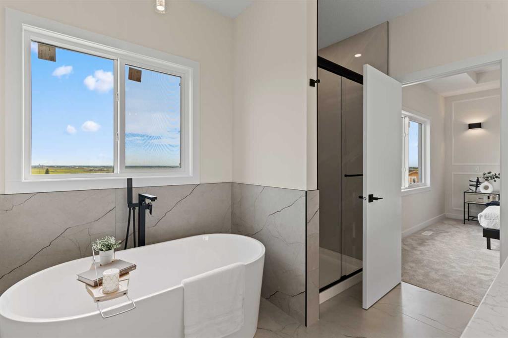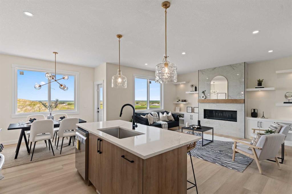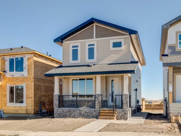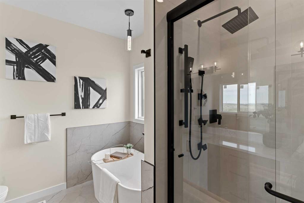 Welcome to our latest Exquisite SHOWHOME in the town of Crossfield. Just 10 minutes north of Airdrie, 25 minutes from Calgary and 3 minutes off highway 2. This 2050sqft heavily upgraded home consists of 3 bedrooms, 2.5 bathrooms with bespoke finishings such as maple wood detail, shaker with plywood cabinet boxes, black exterior dual pane windows, high end lighting, montigo natural gas fireplace feature, quartz countertops, upgraded black plumbing fixtures with freestanding tub, upgraded black hardware, wide plank Lvp flooring with a drywalled/insulated garage. Exterior also includes beautiful stucco/stone finishes. Full finishes can be provided upon request. Additional features include a large WALKOUT lot, 9FT CEILINGS on all floors, Open concept design, separate entrance, completed landscaping, basement roughed in with plans included. Exterior landscaping to be completed concrete wrapped around to rear patio is included. Spend sunny afternoons in the towns parks and playgrounds such as Veterans peace park or checkout the Crossfield Farmers market, the annual demolition Derby, the Rodeo grounds. This rapidly growing town also has amenities such K-12 schools such as Crossfield elementary school and W.G. Murdoch School, which are just short walk away! Find your forever home in this beautiful serene town with connectivity and affordable prices, you’ll wonder why you didn’t move sooner! Home is almost complete with final finishes/touchups and exterior landscaping remaining.