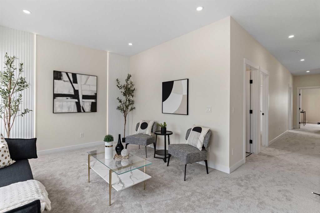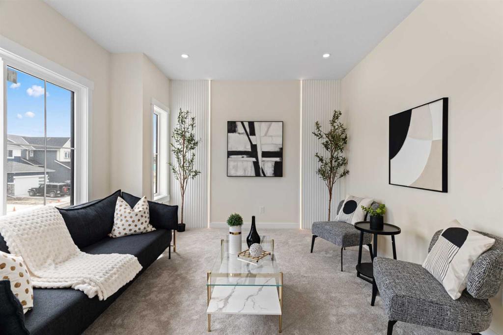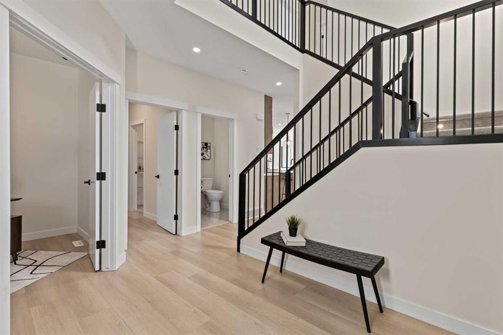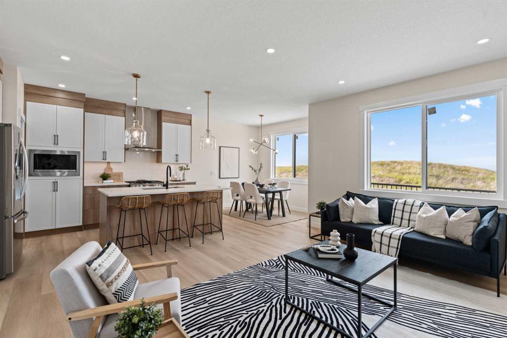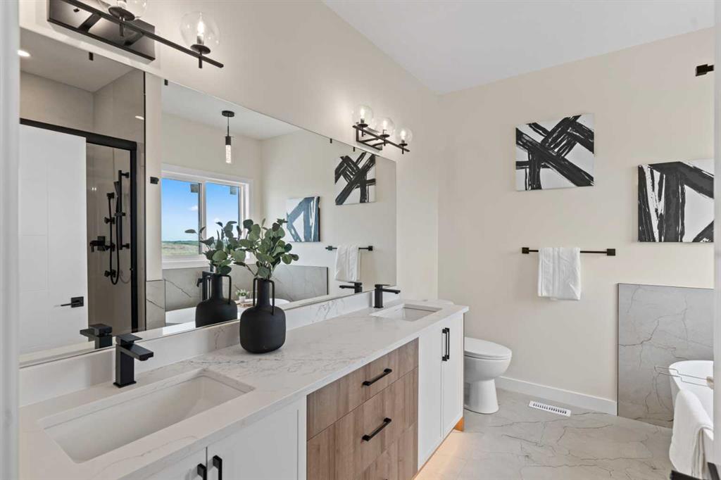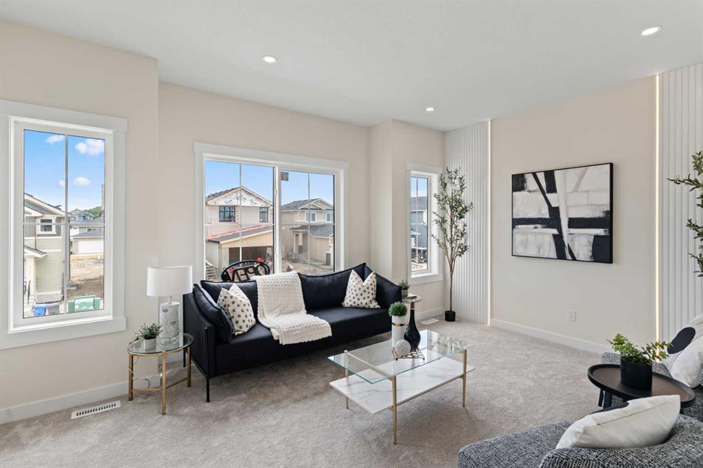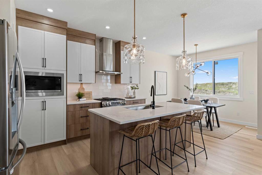 Welcome to our latest Exquisite SHOWHOME in the town of Crossfield. Just 10 minutes north of Airdrie, 25 minutes from Calgary and 3 minutes off highway 2. This 2050sqft heavily upgraded home consists of 3 bedrooms, 2.5 bathrooms with bespoke finishings such as maple wood detail, shaker with plywood cabinet boxes, black exterior dual pane windows, high end lighting, montigo natural gas fireplace feature, quartz countertops, upgraded black plumbing fixtures with freestanding tub, upgraded black hardware, wide plank Lvp flooring with a drywalled/insulated garage. Exterior also includes beautiful stucco/stone finishes. Full finishes can be provided upon request. Additional features include a large WALKOUT lot, 9FT CEILINGS on all floors, Open concept design, separate entrance, completed landscaping, basement roughed in with plans included. Exterior landscaping to be completed concrete wrapped around to rear patio is included. Spend sunny afternoons in the towns parks and playgrounds such as Veterans peace park or checkout the Crossfield Farmers market, the annual demolition Derby, the Rodeo grounds. This rapidly growing town also has amenities such K-12 schools such as Crossfield elementary school and W.G. Murdoch School, which are just short walk away! Find your forever home in this beautiful serene town with connectivity and affordable prices, you’ll wonder why you didn’t move sooner! Home is almost complete with final finishes/touchups and exterior landscaping remaining.