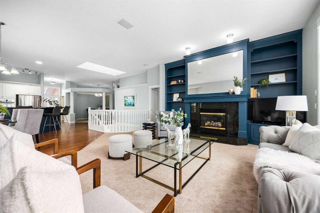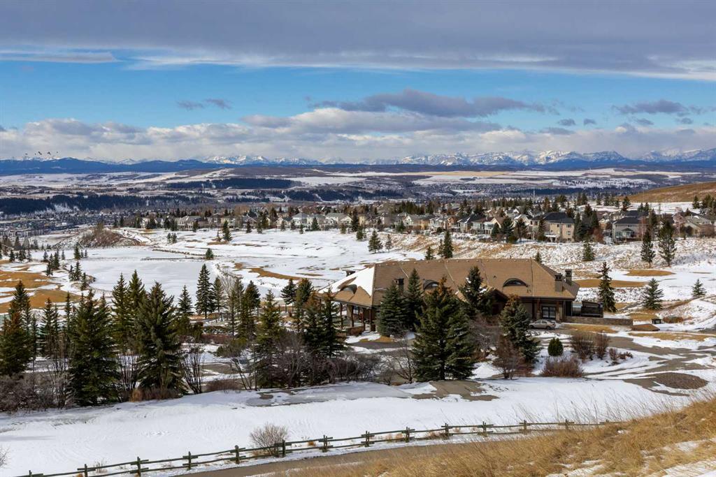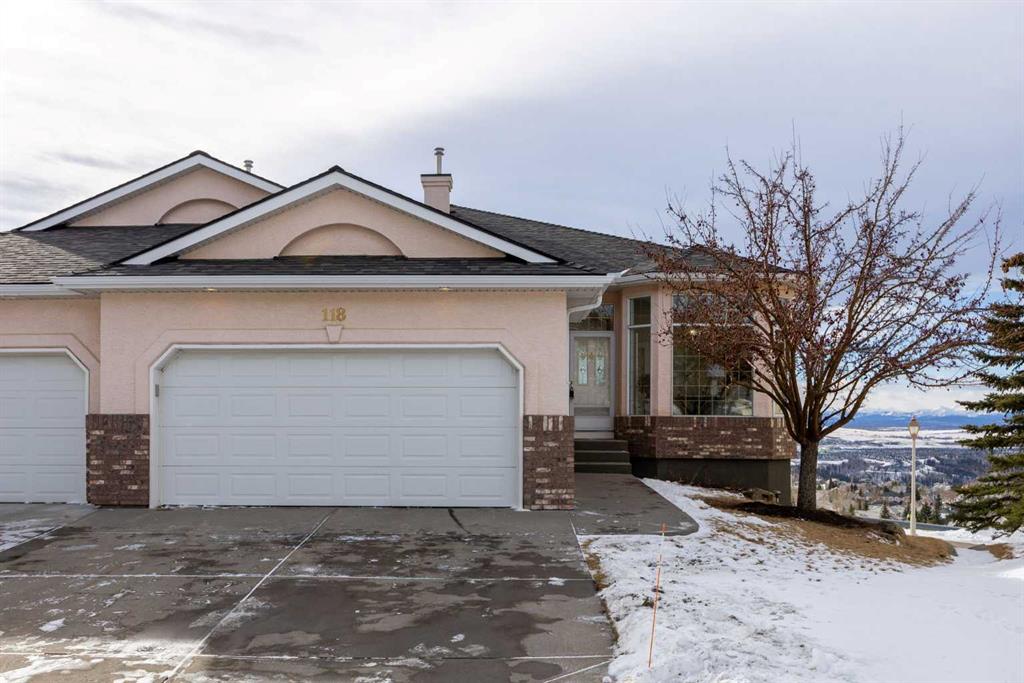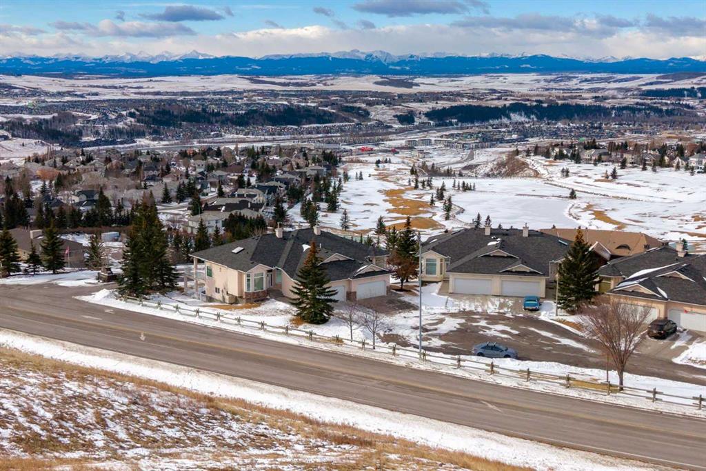 Positioned on one of the most desirable lots in the Villas of Gleneagles, capturing sweeping, unobstructed mountain and golf course views from nearly every room. Elevated above the lush fairways, the setting is both private and spectacular. West facing floor to ceiling windows fill the home with natural light and frame breathtaking sunsets over the Rockies. The bungalow layout offers convenient single level living on the main floor, blending spacious design with everyday comfort. Refinished hardwood floors extend through the kitchen and dining nook, highlighted by a striking island and stainless steel appliances. Updated lighting and fresh neutral paint create a timeless aesthetic, while the dramatic floor to ceiling fireplace anchors the main living space. A formal dining room, dedicated main floor office, and laundry room off the heated garage complete the upper level. The walkout lower level is designed for entertaining and relaxation, featuring a wet bar, large recreation space, second gas fireplace, and two additional bedrooms ideal for guests or hobby space. In floor heat and abundant storage add comfort and practicality. Additional highlights include electric Hunter Douglas blinds on the main floor, in ceiling sound system, Central Air Conditioning, and a heated double garage with epoxy flooring. Enjoy true lock and leave living with snow removal and lawn care included, leaving more time to explore the miles of pathways weaving throughout the community or to enjoy a round at The Links of Gleneagles just outside your back door. A rare opportunity in one of Cochrane’s most sought after villa communities.