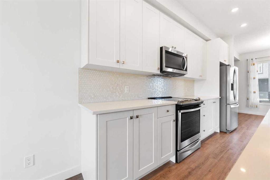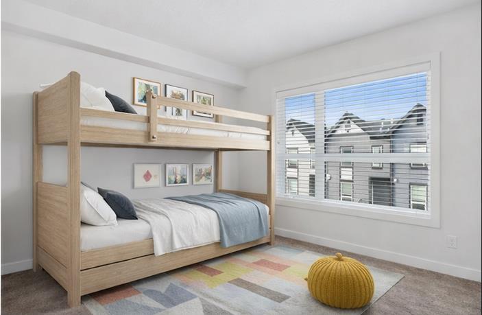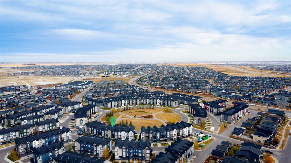 Welcome to this beautifully designed 3 bedroom, 2.5 bathroom townhouse, ideally located in the sought-after community of Evanston in NW Calgary. Perfectly positioned facing a picturesque circular park, this home offers a blend of thoughtful layout, modern finishes, and everyday convenience. The entry level welcomes you with a spacious foyer featuring direct access to the finished double tandem garage, finished with durable epoxy flooring and including dedicated utility and storage areas, providing both function and organization. From here, step outside to enjoy a private ground-level patio, ideal for relaxing, gardening, or entertaining. Additional parking available on the single driveway, ample visitor parking as well as convenient street parking in front of the home. Upstairs, the main living level showcases an open-concept design that seamlessly connects the living room, dining area, and kitchen. The centrally located kitchen is the heart of the home, anchored by a large quartz island and complemented by abundant cabinetry, multiple pantry spaces, and stainless steel appliances. On one side of the kitchen, the bright and inviting living room features large windows that flood the space with natural light and provide access to a balcony, perfect for morning coffee or evening downtime. On the opposite side, the dining area offers plenty of room for hosting family dinners or gatherings with friends. A convenient 2-piece powder room completes this level. The upper floor is thoughtfully arranged to maximize privacy and comfort. The primary suite is situated at one end and features a walk-in closet and a private 3-piece ensuite. On the other end, two additional well-sized bedrooms – one with a walk-in closet—share a full 4-piece bathroom. A convenient upstairs laundry area adds to the practicality of the layout, making daily routines effortless. Additional features include air conditioning for year-round comfort and a location that truly sets this home apart. Enjoy walking-distance access to Evanston’s shopping, schools, and nearby soccer fields, along with quick and easy connections to Stoney Trail for commuting around the city. This move-in-ready townhouse offers a rare combination of park-facing views, modern finishes, and an unbeatable location – an excellent opportunity to call Evanston home.