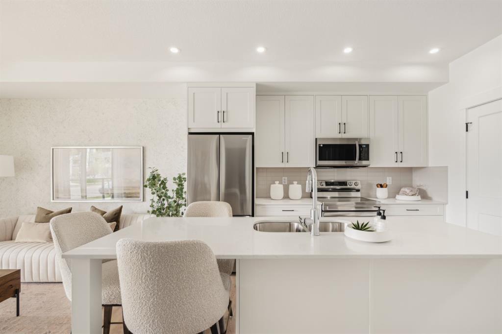 Welcome to Unit 119 in Building 2 of Altitude at Three Sisters—featuring the well-appointed Richler floorplan designed for a comfortable and contemporary mountain lifestyle. This home includes a large covered patio, in-floor heating, durable LVP flooring, and tile in the bathrooms. High-end finishes such as 41″ upper cabinetry with full-height risers, undermount bathroom sinks, and a Samsung appliance package with a built-in hood fan and front-control range create a refined and functional interior. The property includes one underground parking stall, and the $470/month condo fee ensures ease of living with coverage for heat, water, sewer, snow removal, reserve fund contributions, and access to the on-site community spa and hot tub. Built by award-winning Logel Homes who have a decades long pedigree of successful developments in Canmore and located in Three Sisters, next to the upcoming Gateway community hub with shops and grocery options, Altitude offers effortless access to the best of Canmore. Anticipated possession early 2027. Stop by the sales centre and show suite (closed Wednesdays) to discover the lifestyle that awaits you at Altitude. Residential properties – no short term rentals.