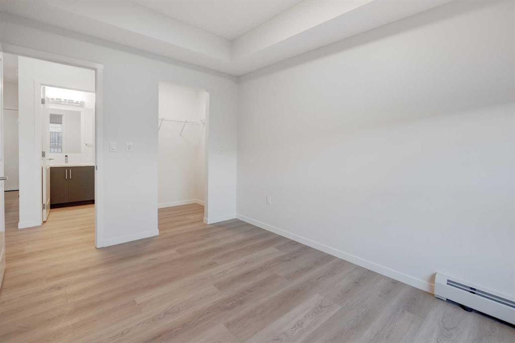 INTRODUCING GLACIER RIDGE, IN BEAUTIFUL NORTHWEST CALGARY. BUILT BY CEDARGLEN LIVING, WINNER OF THE Customer Insight BUILDER OF CHOICE AWARD, 6 YEARS RUNNING! BRAND NEW “GR04” unit with high-spec features. You will feel right at home in this well thought-out, 588.10 RMS sq.ft. 1 bed, 1 bath home with open plan, 9′ ceilings, LVP flooring throughout (NO CARPET), Low E triple glazed windows, BBQ gas line on the patio, Fresh Air System (ERV), A/C rough-in, and so much more. The kitchen is spectacular with full height, two tone cabinets, quartz counters, upgraded bank of drawers for pots and pans, undermount sink, rough-in water line to the fridge and S/S appliances. The island is extensive with built in flush breakfast bar, which transitions into the spacious living area, perfect for entertaining. The spacious primary bedroom has a large bright window (triple pane windows) and sizeable walk-in closet. Right beside your bedroom is a 4pc bath with quartz counters, upgraded tiles to the ceiling, and undermount sink. Nearby is the spacious laundry/storage room, this is a must see (washer & dryer included). Highlights include: Hardie board siding, designer lighting package, sound reducing membrane to reduce sound transmission between floors, clear glass railing to balconies and 1 titled underground parking stall included. A once in a lifetime community in Northwest Calgary. Framed by views of the Rocky Mountains and distinguished by natural coulees that cross the land, Glacier Ridge offers a rare chance for families to live in a new community. PET FRIENDLY COMPLEX, IMMEDIATE POSSESSION AVAILABLE AND DON’T FORGET TO CHECK OUT THE VIRTUAL TOUR.