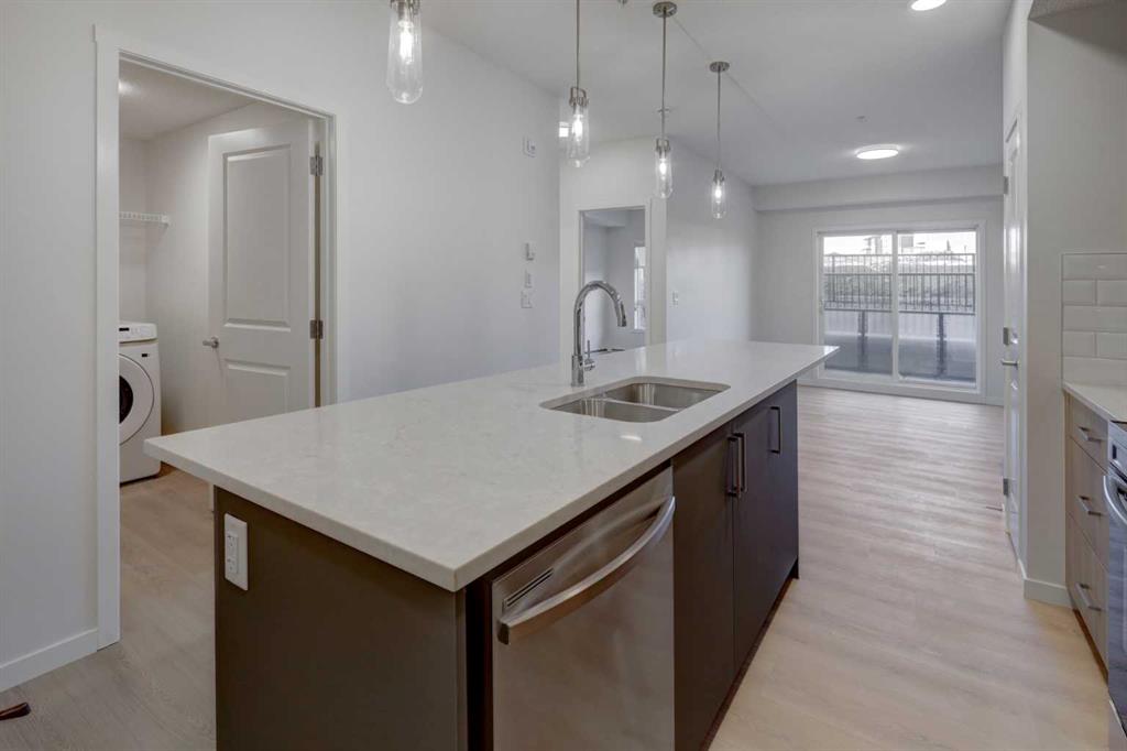 INTRODUCING GLACIER RIDGE, IN BEAUTIFUL NORTHWEST CALGARY. BUILT BY CEDARGLEN LIVING, WINNER OF THE Customer Insight BUILDER OF CHOICE AWARD, 6 YEARS RUNNING! BRAND NEW “GR04” unit with high-spec features. You will feel right at home in this well thought-out, 588.10 RMS sq.ft. 1 bed, 1 bath home with open plan, 9′ ceilings, LVP flooring throughout (NO CARPET), Low E triple glazed windows, BBQ gas line on the patio, Fresh Air System (ERV), A/C rough-in, and so much more. The kitchen is spectacular with full height, two tone cabinets, quartz counters, upgraded bank of drawers for pots and pans, undermount sink, rough-in water line to the fridge and S/S appliances. The island is extensive with built in flush breakfast bar, which transitions into the spacious living area, perfect for entertaining. The spacious primary bedroom has a large bright window (triple pane windows) and sizeable walk-in closet. Right beside your bedroom is a 4pc bath with quartz counters, upgraded tiles to the ceiling, and undermount sink. Nearby is the spacious laundry/storage room, this is a must see (washer & dryer included). Highlights include: Hardie board siding, designer lighting package, sound reducing membrane to reduce sound transmission between floors, clear glass railing to balconies and 1 titled underground parking stall included. A once in a lifetime community in Northwest Calgary. Framed by views of the Rocky Mountains and distinguished by natural coulees that cross the land, Glacier Ridge offers a rare chance for families to live in a new community. PET FRIENDLY COMPLEX, IMMEDIATE POSSESSION AVAILABLE AND DON’T FORGET TO CHECK OUT THE VIRTUAL TOUR.