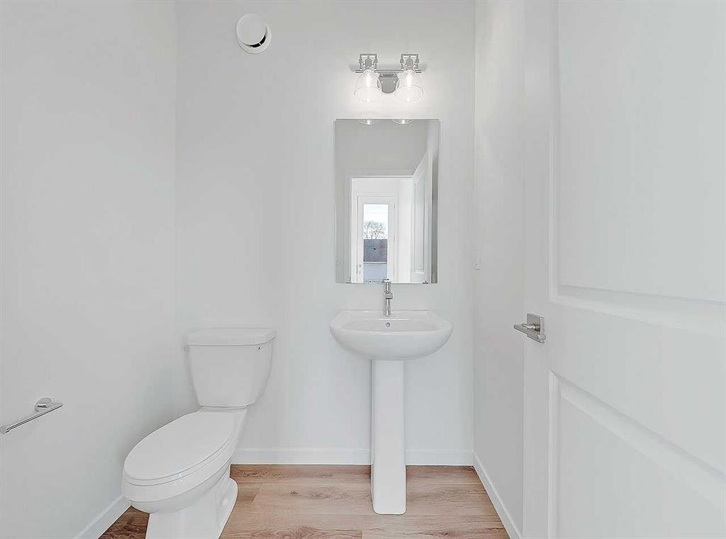 Outside, enjoy a private retreat off the rear mudroom featuring a spacious, south-facing backyard. A two-car parking pad is accessible from the newly paved back lane, with the option to add a two-car garage through the builder.