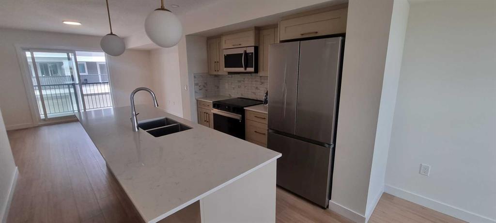 Welcome to this beautifully crafted, brand-new 3 story residence featuring 2 spacious bedrooms and 2.5 bathrooms, and a double tandem garage. As you ascend the stairs, you’re greeted by a gorgeous open-concept kitchen with stainless steel appliances, quartz countertops and full height cabinetry that flows seamlessly into a dedicated dining area and a generous living space, perfect for everyday entertaining or relaxing. Step out onto the front balcony and enjoy fresh air and neighborhood views.