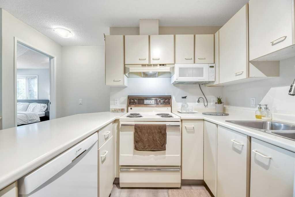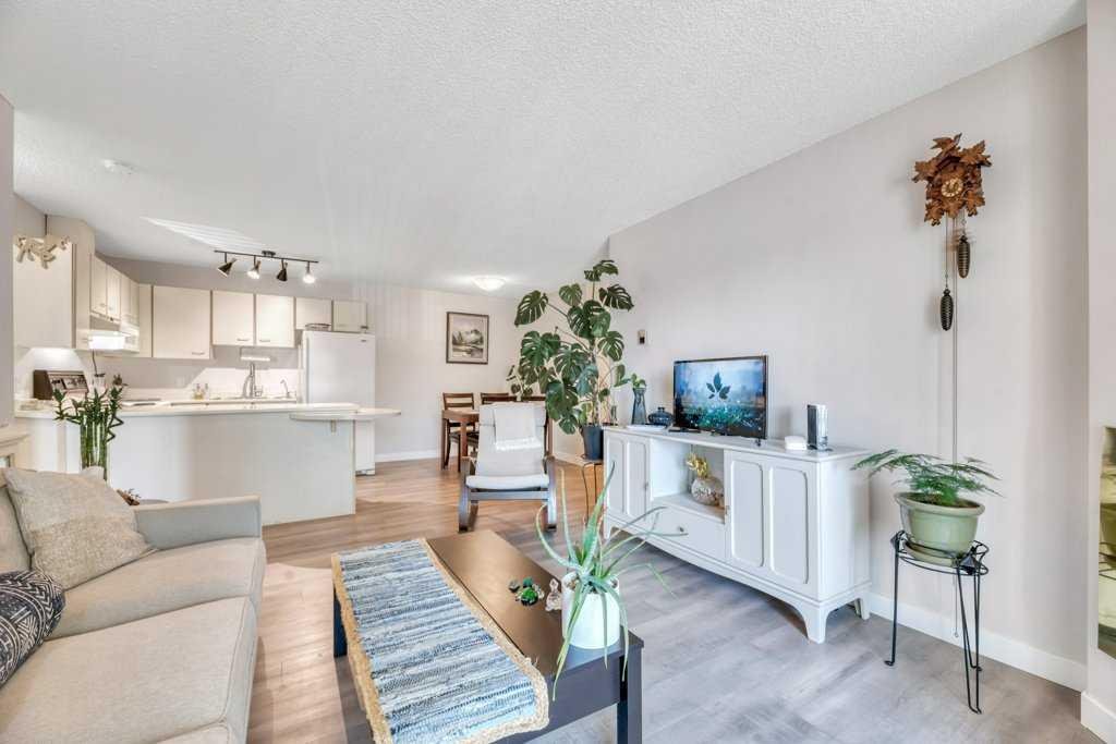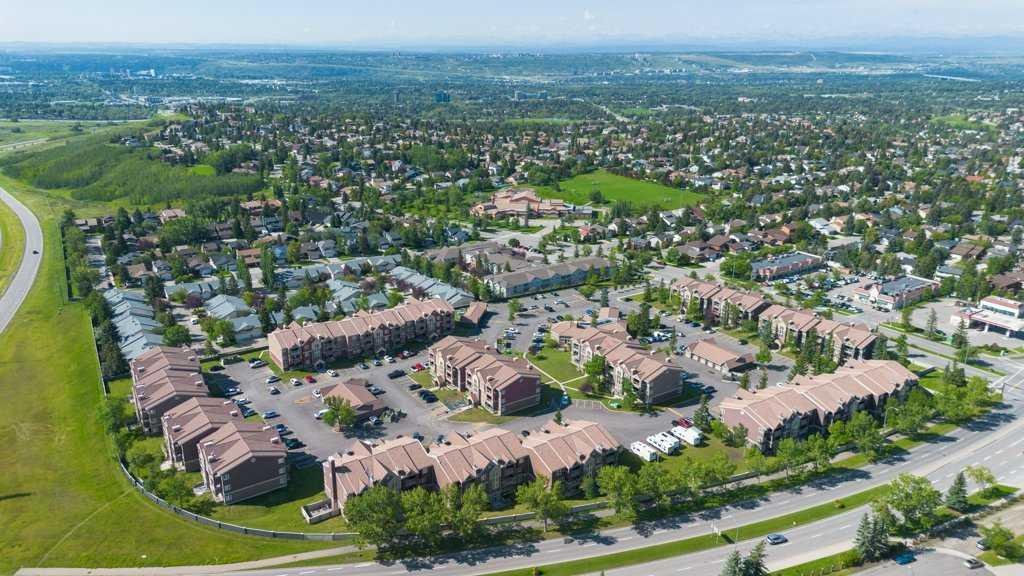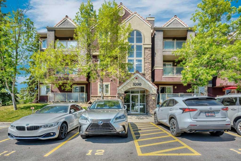 Beautifully renovated 2 bedroom/2 bath end unit in the desirable & well managed Edgecliffe Estates complex featuring a central clubhouse with fitness centre, indoor pool, hot tub, steam room, party room with kitchen facilities and games room with pool & ping pong tables. Amazing location close to schools, shopping, public transit, parks, restaurants and walking distance to the scenic Nose Hill Park. The spacious open concept kitchen, dining & living room separates the bedrooms & bathrooms for maximum privacy and the east exposure allows natural light to flood into the entire unit all day long. The cozy living room features a gas fireplace and patio doors leading to your private deck which is just steps away from your parking stall. The primary bedroom features a walk-thru closet & private 3pc ensuite bath while the second bedroom has a 4pc bath just outside. The laundry room offers extra storage space and recent upgrades include high-end full size washer & dryer, dishwasher, flooring & paint, Easy access to Childrens & Foothills Hospitals, U Of C & SAIT, major routes going east, west, north & south, and all the other extras this property has to offer at an incredible price makes it a must see!!