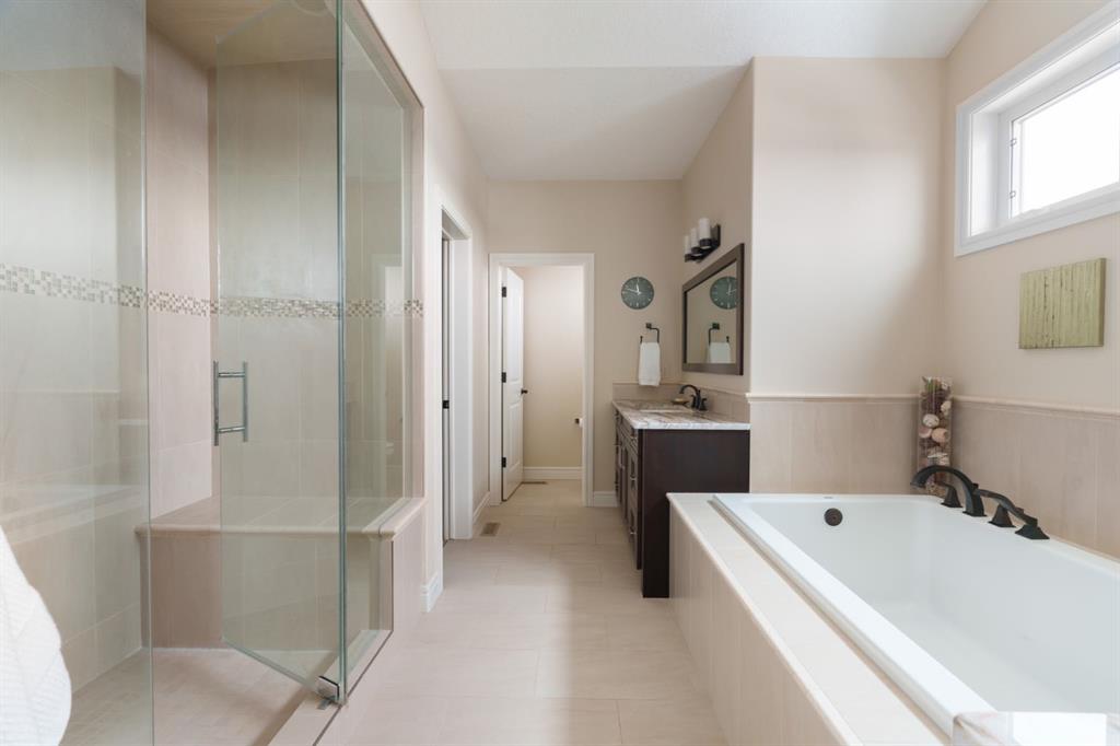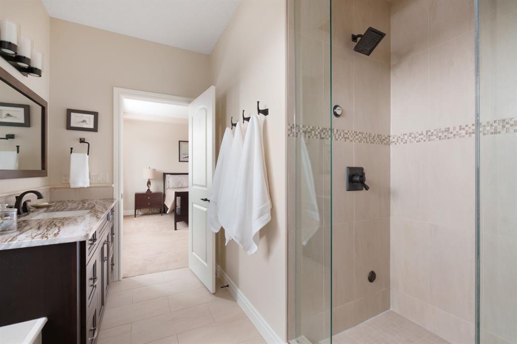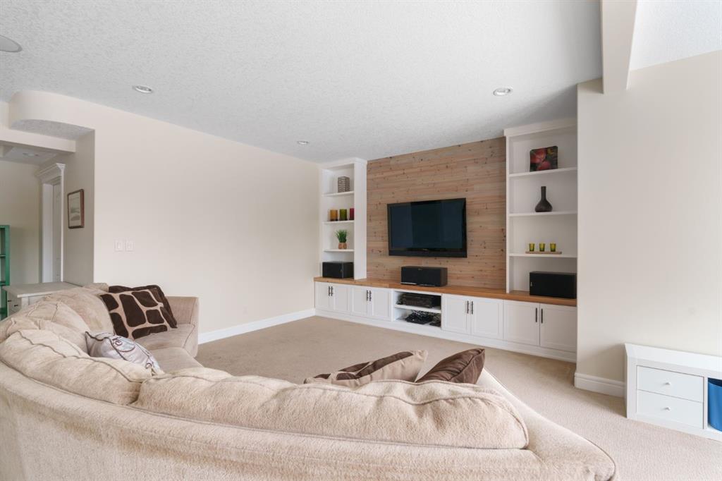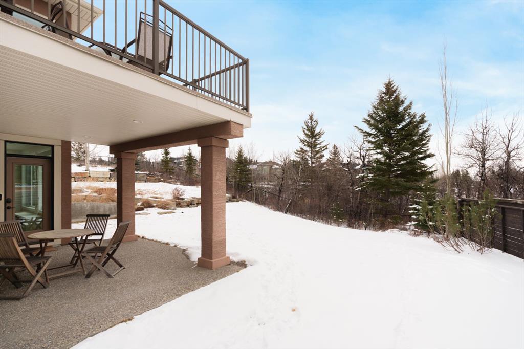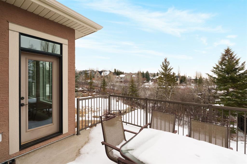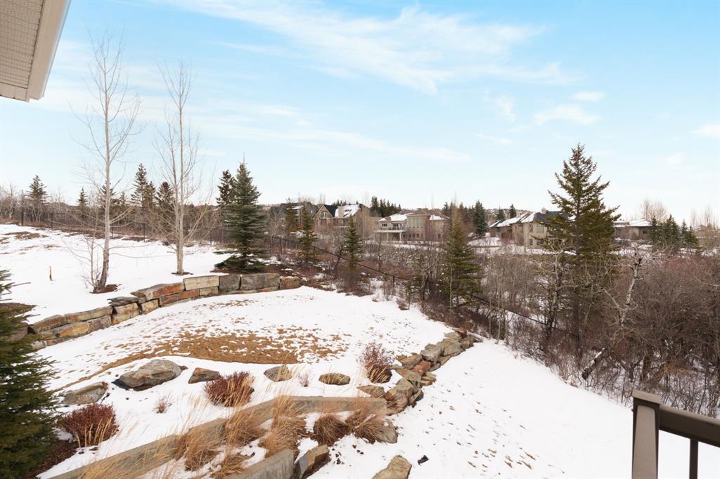 OPEN HOUSE – Sat March 21 (1-3pm) A rare opportunity on Calgary’s Westside… this estate home sits on a quiet cul de sac, on an 11,600 sq ft pie-shaped lot, backing a ravine and nature trail. You will be calmed by the sound of frogs at night, and birds singing in the morning, watching the deer from your deck, this is a space your kids will love to explore and likely where your mornings and evenings will begin walking the dog through the ravine system as it meanders north – a PEACEFUL SPACE – WONDERFUL! All of this is centrally located with ease of access to Calgary’s finest schools and the amenities we love here on the Westside. This home is a two storey walkout, measuring 4,185 sq ft over three levels, 3 beds and a Bonus Room up with a 4th bed and full bath down and a HEATED 3 car garage. Highlights include 10 foot ceilings on the main, 9 feet up & down, wide plank hardwoods through the main, granite counters throughout, designer lighting and window coverings, B/I speakers, central A/C, irrigation and more. On the main you will love the open plan, which draws you through to the Great Room in back, a wall of windows and direct access to the deck and the SIGHTS & SOUNDS of NATURE. The kitchen features an over-sized center island, granite counters in a “leather” finish, a Bosch gas cooktop and wall oven and a wine fridge. The kitchen is open to the dining space, overlooking the ravine – NICE! There is also a private Den/Home office on the main with custom built-ins. Upstairs, a large Bonus Room under a 13’ ceiling, SPACIOUS and BRIGHT. The Primary Bedroom sits at the back of the home, overtop of the ravine and enjoys a wonderful 5pc en suite and steam shower! The two additional beds up are well-sized and share a 4pc bath. The walkout level is fully finished offering a wide open space to accommodate a media space, a gams space, a 4th bed and full bath… with direct access to your over-sized rear yard… BACKING THE RAVINE – this is an AMAZING location.