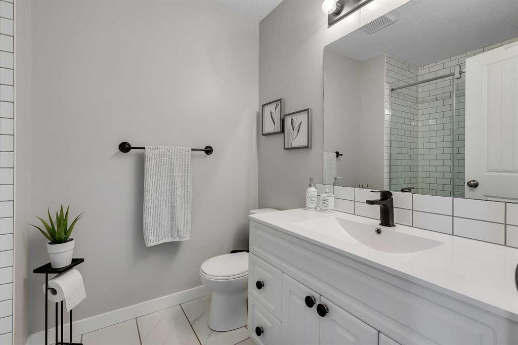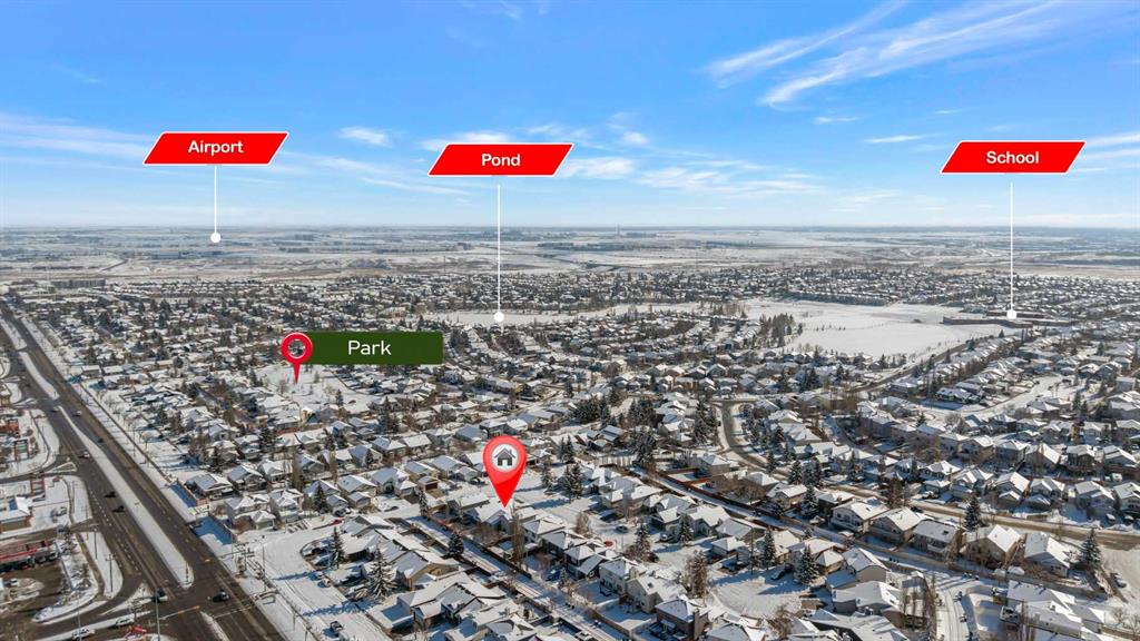 Beautifully maintained home in an unbeatable location! Just a short walk to the large North Pointe shopping plaza featuring banks, restaurants, Tim Hortons, Shoppers Drug Mart, Canadian Tire, The Home Depot, a movie theatre and many other everyday conveniences. You’re also only minutes from the North Pointe Transit Terminal, making commuting around the city simple and convenient. Inside, the main floor offers a bright and well-designed layout with vaulted ceilings, a welcoming front living room, formal dining area, and a spacious kitchen featuring granite countertops, stainless steel appliances, and ample cabinet and counter space. Just off the kitchen is a large family room, perfect for relaxing or entertaining. Down the hall you’ll also find a versatile office that could easily function as a bedroom. Upstairs features 3 comfortable bedrooms, a full main bathroom, and a private primary retreat complete with a walk-in closet and full ensuite. The fully finished basement adds even more living space with a large recreation room, 4th bedroom, full bathroom, and plenty of storage. This home has been very well maintained with numerous updates, including stucco painting (Aug 2022), main floor LVP flooring (2022), upper floor carpet (2022), main floor paint (2022), windows & blinds (2016), garage door (2016), hot water tank – 50 gal (2017), and new shingles, eavestroughs & downspouts (2025). Fantastic location with quick access to the airport as well as Deerfoot Trail and Stoney Trail, making commuting around Calgary a breeze.