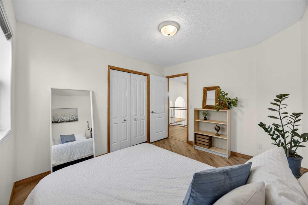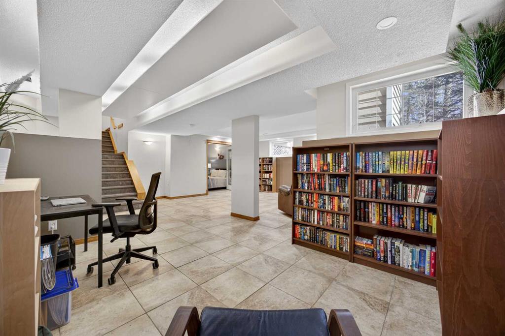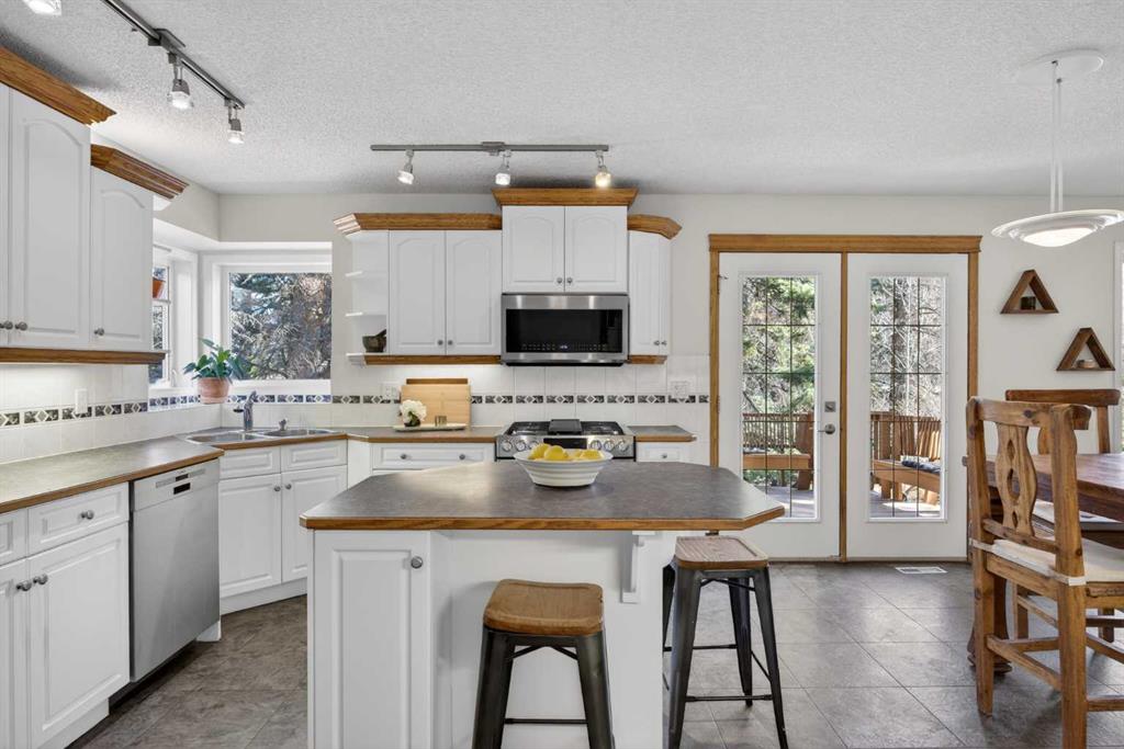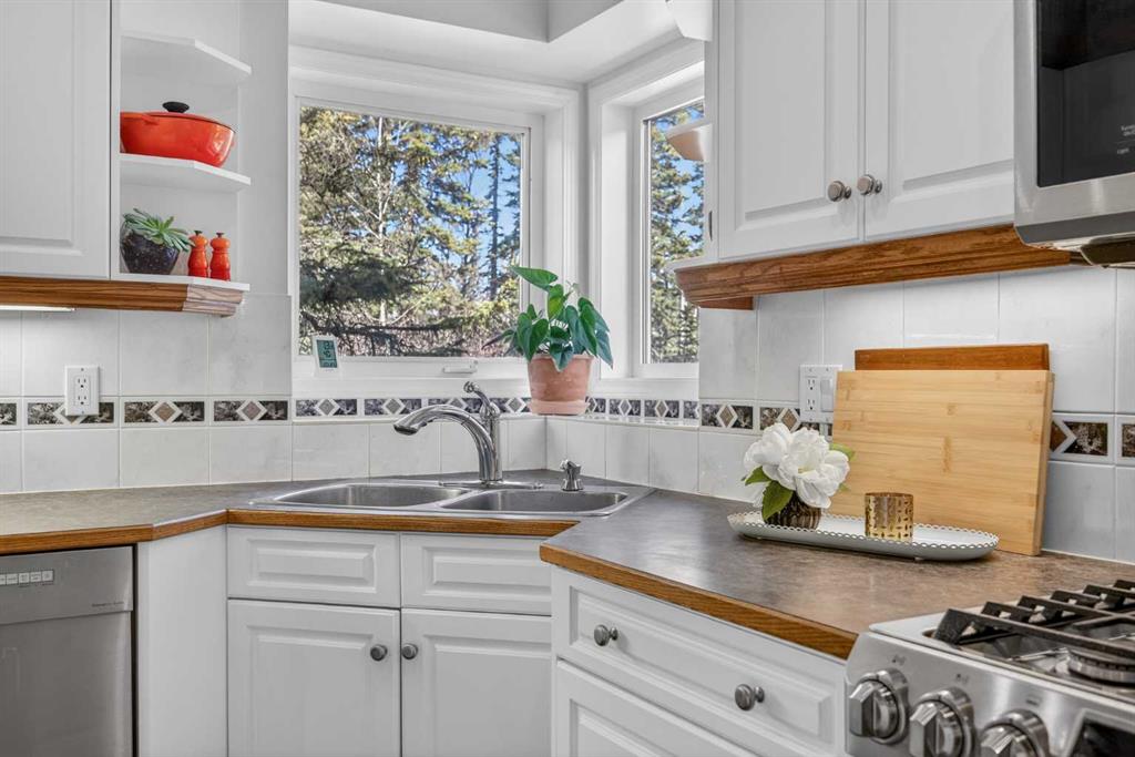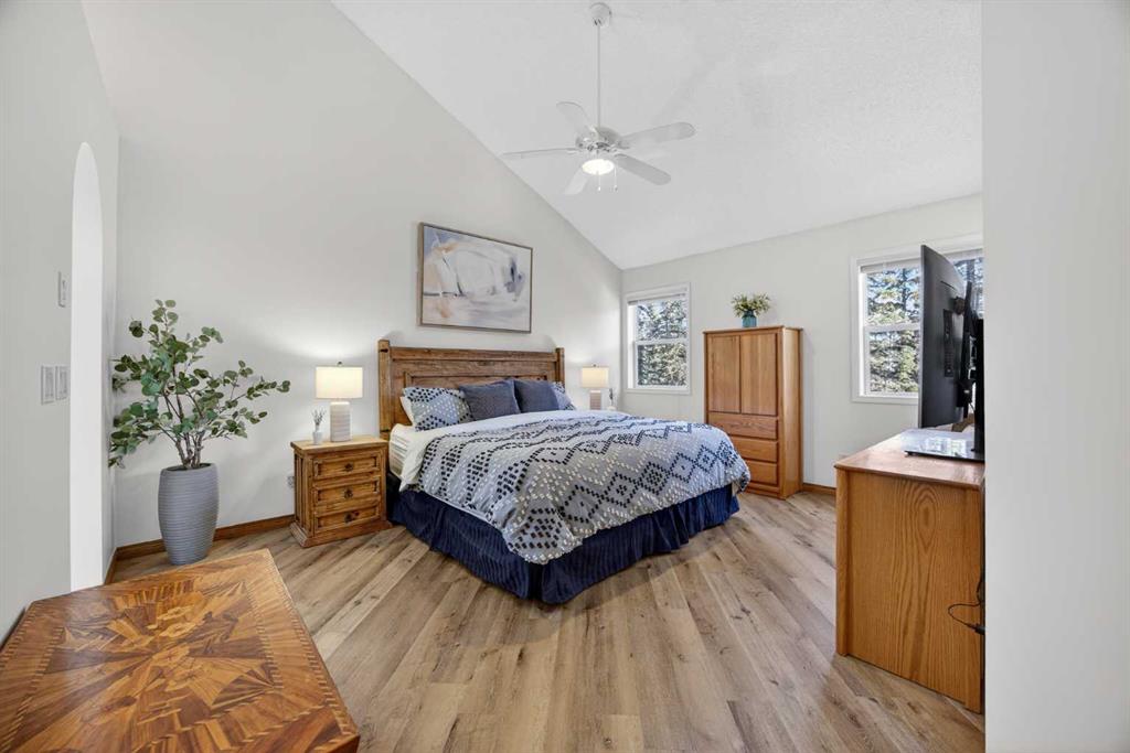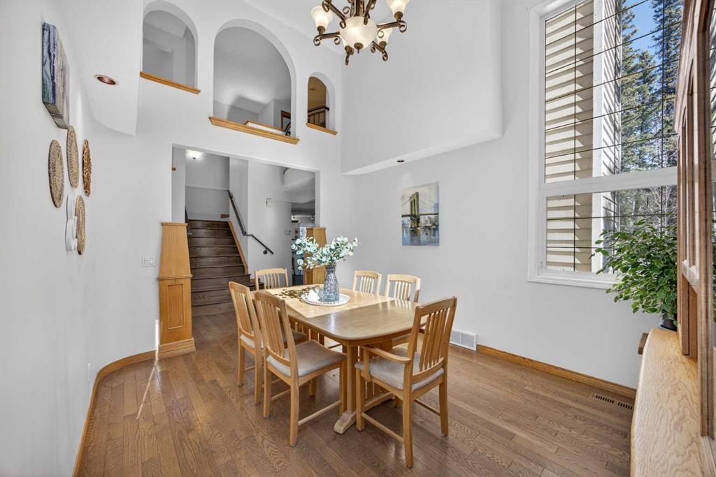 Step inside to a grand, light-filled entryway featuring soaring vaulted ceilings, elegant architectural details while your eyes are drawn to the stunning balconies above that capture the imagination. Arched windows…skylights…layers of Elegance! With rich hardwood floors and a beautiful brick-faced wood-burning Fireplace, the Living room flows seamlessly into the Kitchen and is framed by tranquil views of your expansive treed lot and surrounding wildlife. Windows and Skylights that capture the sunlight and beauty of nature create an ambiance of peaceful living and your own piece of paradise. The Kitchen is finished with gleaming white cabinets trimmed with natural wood. Built in display shelves and desk, a center island, and a corner sink that enjoys the views through two windows to the backyard. Upstairs, the home continues to impress with 3 bedrooms and a lofted, open-to-below design that enhances the sense of space and light. The primary suite is a peaceful retreat featuring vaulted ceilings, a walk-in closet, 4-piece ensuite including a jetted tub and glass shower beautifully designed with a glass block wall to bring in the light with your privacy in mind. This primary suite offers plenty of room to unwind. A bonus area completes this level and would make a perfect office or place for the kids to escape to with a conveniently located laundry room upstairs. The Basement level is fully finished with a 4th bedroom and 4-piece ensuite with heated floors. Family room, flex space and ample storage. This home offers Multiple living areas ideal for families or entertaining. Let’s not forget about the TRIPLE CAR GARAGE, attached, with plenty of room for vehicles, toys, or workshop space. Step out onto the multilevel deck to enjoy and relax for an evening BBQ and morning coffee. Round the corner and step up to the upper levels with a convenient side entry/mudroom access or even hot tub access one day. The backyard has plenty of space to enjoy the natural surroundings. Making memories in your backyard is easy with the firepit, large trees, garden. No need for camping when you can experience it in your yard. This is an opportunity to live the dream, removed from the city, yet still within a short drive to take advantage of the conveniences the City has to offer.