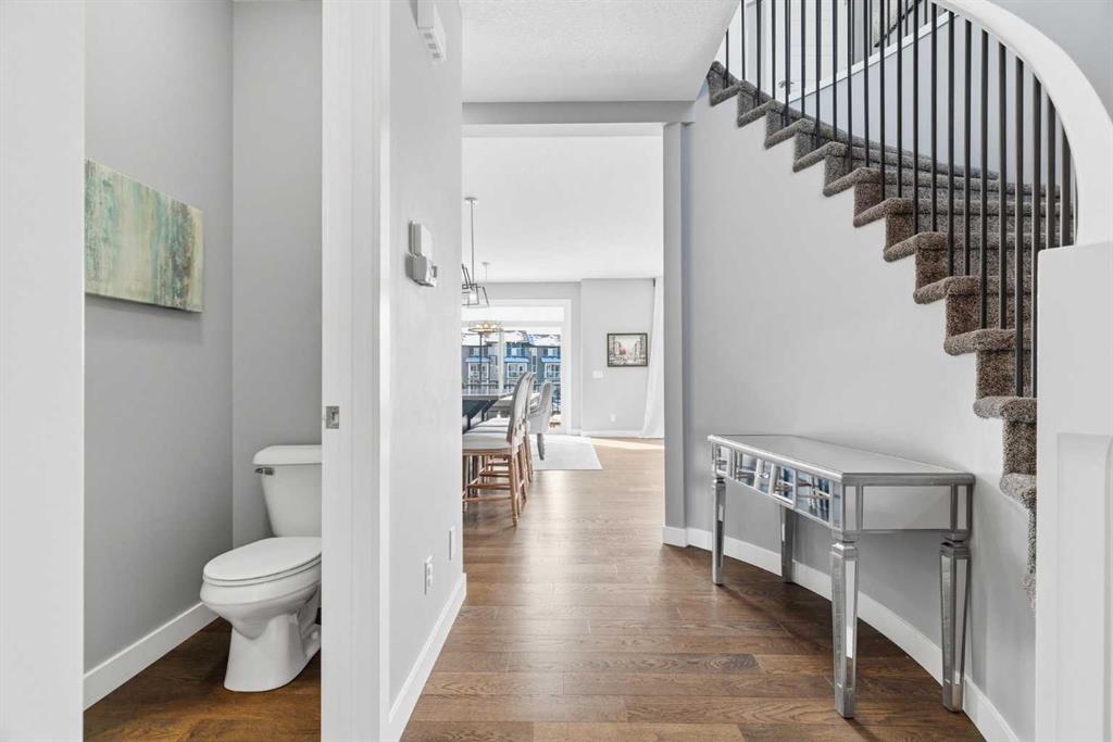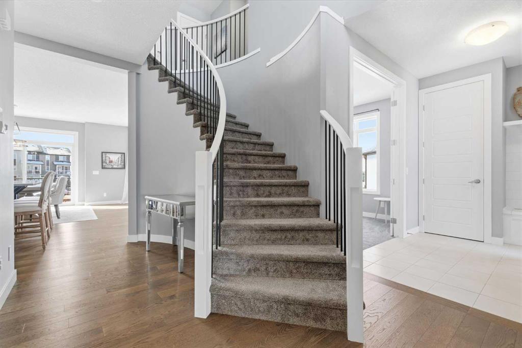 SHOWSTOPPER HOME tucked away in a quiet cul-de-sac with MOUNTAIN VIEWS and huge PIE SHAPED YARD!!! Welcome to 12 Ranchers Bay, a beautiful one-owner home with unique features that will be sure to please. This family friendly location will welcome you as soon as you pull into the driveway. The charming covered front porch provides a great place to greet family and guests. Inside the front entrance you will notice the unique floorplan right away. High ceilings, built in features, french doors to a bright and sunny office, and stunning hardwood floors that lead through to the heart of the home. Notice the upgraded kitchen with extended cabinetry, built in appliances, gas cooktop, quartz countertops, loads of storage, a huge dining space, and the perfect sit up island. This kitchen will be sure to please the chef at heart! A large walkthrough pantry adds convenience for busy families. Settle into the cozy family room and warm up on winter nights by the gas fireplace. Loads of natural light fill the home with the large south facing windows that give glances of the Rocky Mountains. The curved staircase is a true masterpiece and leads to the upper level. The large bonus room is the perfect place to host family movie/games night . You will be impressed with the primary suite. It is graced with size, natural light, views, a large walk in closet and a gorgeous spa like ensuite. Imagine winding down after a busy day in a tub full of bubbles , admiring the features of this beautiful bathroom. Through the walk in closet to the laundry room – a genius floorplan that you will absolutley love – and making this primary retreat space complete. 2 more good sized bedrooms and a 4 piece bathroom complete this upper level. The lower level is a blank slate for finishing to your desire. The south facing back yard is gardeners delight. With multi level decks, underground sprinklers, a few trees, and plenty of space to run around with the kids and pets, you will spend many summer nights in this back yard. Backing onto walking paths you can head out for meandering walks along the extensive pathway system that Okotoks has to offer. Leading to parks, playgrounds, ponds, wetlands, sports fields, the dog park , and so many other fun filled outdoor adventures. This air-conditioned home isn’t just a place to cook dinners and sleep – its a true way of life – a place to make memories, and a spot to create the family life you have been longing for. The convenient north location makes it a breeze for commuters. Make sure to book this as a stop on your home shopping tour. Its truly refreshing to see a home with a unique plan and attention to detail.