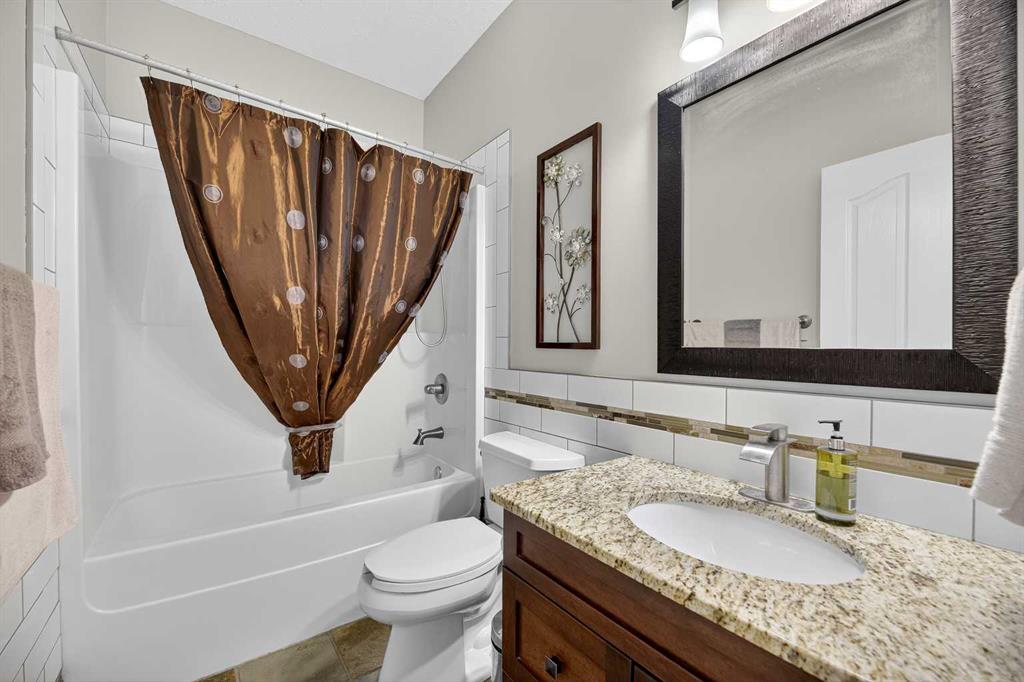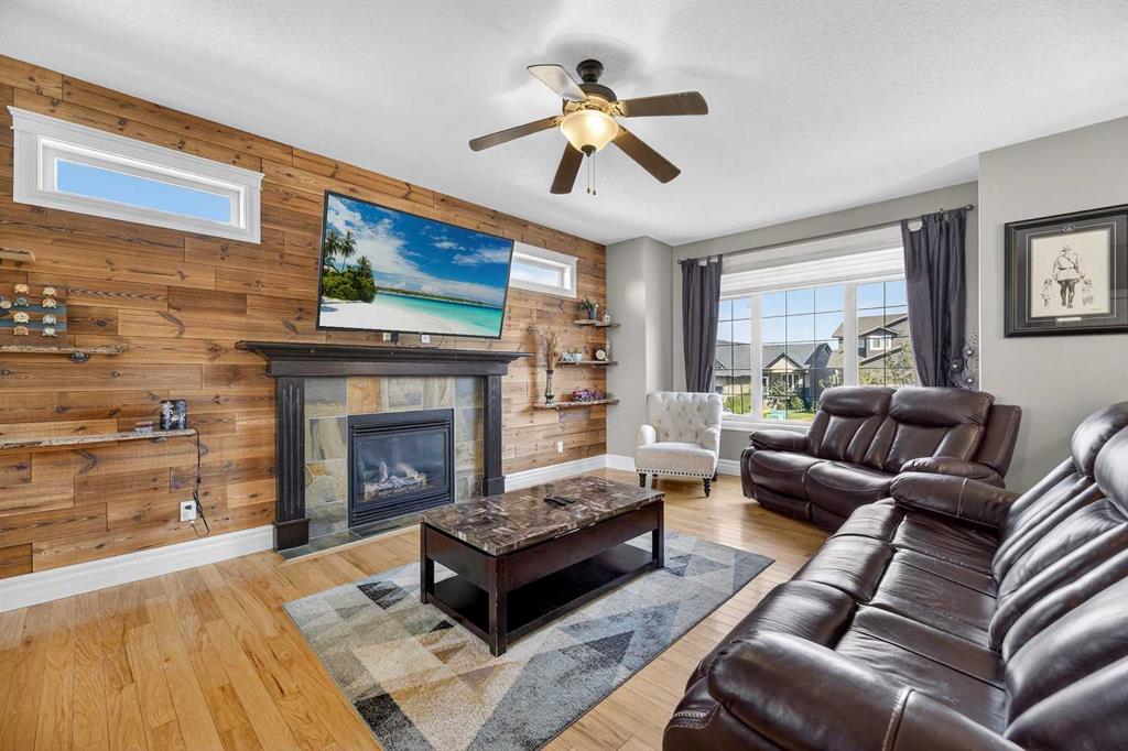 Beautiful FAMILY HOME! Nicely kept and well maintained 1,333 sq.ft. 5 BEDROOM HOME in The Vistas. Ideally located CLOSE TO HOSPITAL, WALKING TRAILS, AND PARKS, IN A NEWER DEVELOPMENT IN OLDS. From the moment you walk in, you are greeted with a bright open floor plan with lots of natural lighting. Beautiful hardwood flooring throughout the main level Living/Dining and Kitchen. The kitchen with stainless steel appliances, granite countertops and large island has a corner pantry and the dining area has an entrance to the rear west facing deck with BBQ gas line, which overlooks a landscaped and fully fenced yard with a fire pit area, and 8’ x 12’ shed. The living room features a natural gas fireplace with slate tile accents to keep you cozy on winter nights. The Primary Bedroom boasts a walk-in closet and a 3 piece ensuite. The main floor also features two other nice sized bedrooms, and a 4 piece bath. BRAND NEW CARPET was just installed throughout the house! The basement is fully finished with a large family room, flex space/bonus room, 2 more bedrooms, a 4 piece bath, on demand hot water tank and in-floor heating. The basement also features the laundry room as well. The home and property have seen many nice IMPROVEMENTS over the last few years including BRAND new carpet, newer furnace in 2023, some newer paint, newer feature wall, and improved under deck storage to name a few. This could be your dream home. Call today to make it happen!