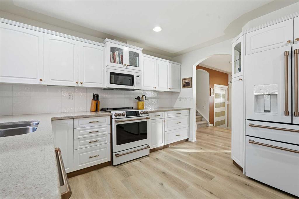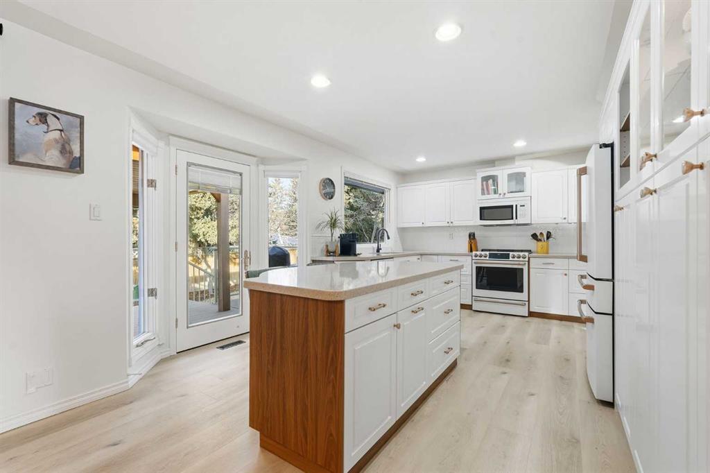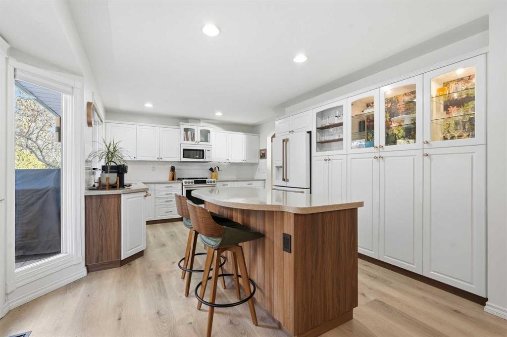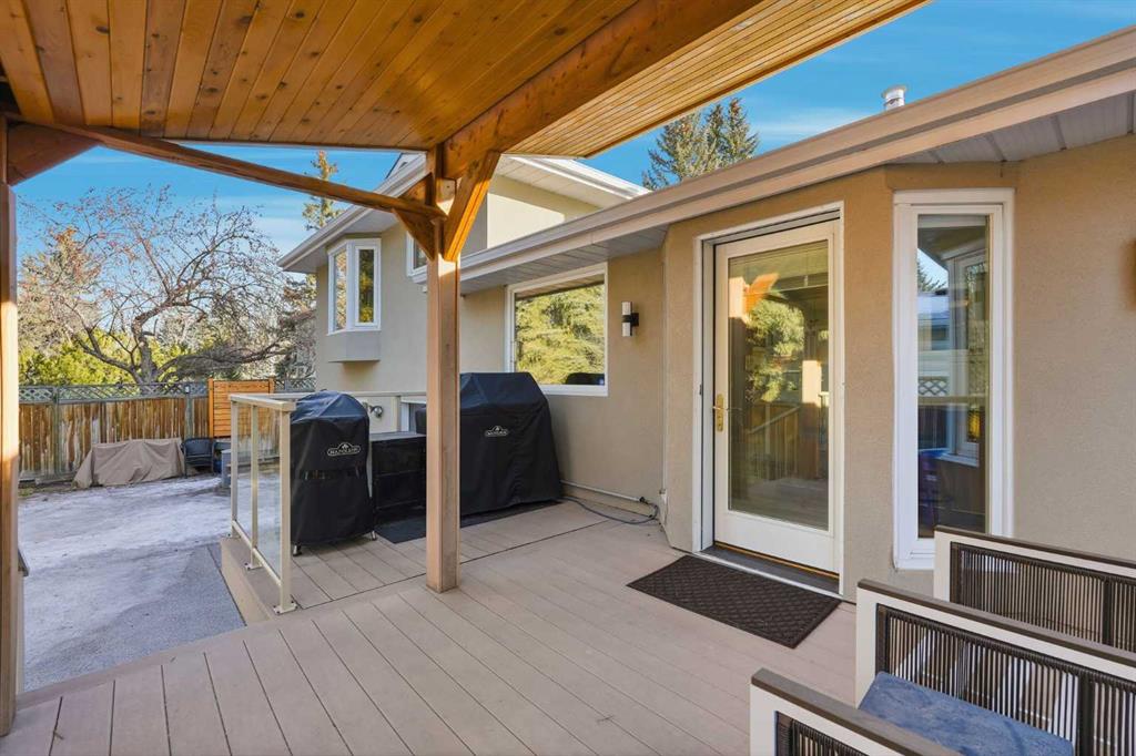 Beautifully updated and ideally situated on a quiet street in the established community of Canyon Meadows, this welcoming family home offers more than 2,800 sq ft of developed living space. The main level features new luxury vinyl plank flooring and elegant curved archways, leading into a generous living room filled with natural light. The adjoining dining area provides ample room for hosting family and friends, while the well-appointed kitchen is finished with granite countertops, a central island with eating bar, abundant cabinetry, and all-new Café Series appliances (excluding microwave). The upper level, complete with new carpeting, hosts two bedrooms and a 4 piece main bath. The spacious primary bedroom includes a comfortable sitting area, walk in closet, and private 3 piece ensuite. The lower level extends the home’s versatility with a cozy family room anchored by a gas fireplace, an additional bedroom with a full wall of built in shelving, and a 3 piece bath. The fully finished basement adds even more functional space, including an exercise room, office, and generous storage. Significant recent upgrades enhance peace of mind and comfort, including two new furnaces, a new electrical panel with surge protection, newer roof, all new flooring, fresh paint throughout, updated hardware, faucets, and lighting. Car enthusiasts will appreciate the oversized triple attached garage, complete with in-floor heating, workbenches, and a sink. Outdoors, the large, fenced backyard offers both a deck and patio—an ideal setting for outdoor entertaining. This exceptional location provides quick access to Canyon Meadows Golf & Country Club, the pathways and natural beauty of Fish Creek Provincial Park, excellent schools, shopping, public transit, and major routes including Elbow Drive, Anderson Road, and Canyon Meadows Drive.
