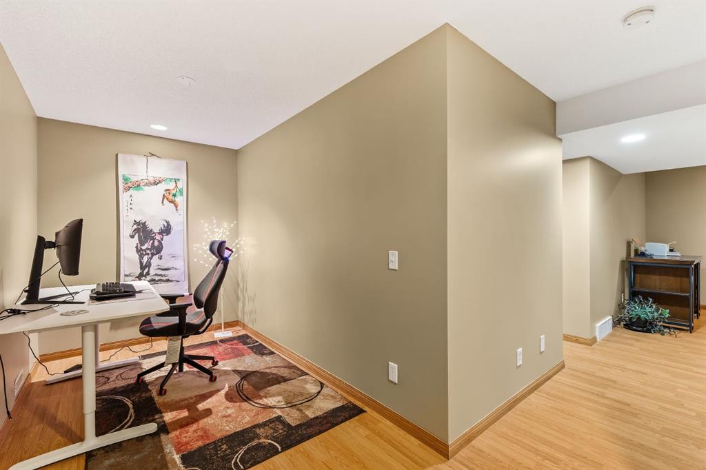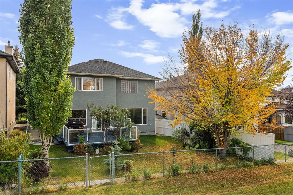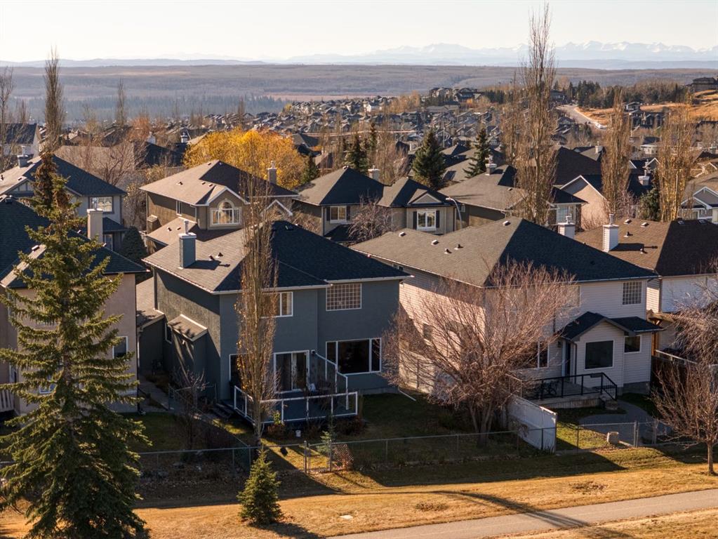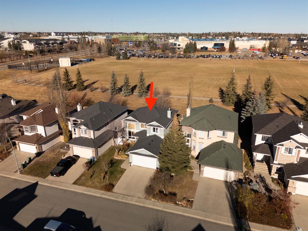 OPEN HOUSE – Sat March 14 (12-2pm) LOCATION ALERT!! A quiet crescent in Signal Hill, backing the playing fields, adjacent the Westside Rec Centre, steps to the West LRT and Ernest Manning HS, a short walk to Battalion Park School…. A FANTASTIC LOCATION! A great location to enjoy all the Westside has to offer… Signal Hill or Aspen Landing for shopping, Griffith Woods for a bike ride or hike, and easy access downtown or west to the mountains. Enjoy your evenings on the deck, with no neighbours behind, send the kids to kick a ball in the field behind, ENJOY THE MOUNTAIN VIEWS, sneak out the back gate for your workout at the Westside Rec, or to see your kids off to school in the morning… there is a lot to LOVE about this location. This two storey home, offers 2 + 2 beds, 3.5 baths and 2730 sq ft of developed living space over three levels, a wonderful space to call home. On the main you will enjoy the Great Room in back, overlooking the playing fields – PRIVATE & QUIET! The kitchen is designed for entertaining with its center island breakfast bar, and generous dining nook, granite counters and s/s appliances including a gas stove. There is also a living room (or dining room) at the entrance, under a 17’ cathedral ceiling, with a south exposure – WARM & BRIGHT! The sweeping staircase leads you upstairs where you will find the primary retreat behind French doors, overlooking the fields behind, where you will enjoy a lounge area and full 5pc en suite. There is a second bedroom up, which also features a full en suite PLUS… two additional beds down. The lower level is fully developed offering a large rec room, the two additional beds and a full bath, Your older kids will love to have this space to themselves. Welcome to the wonderful Westside!