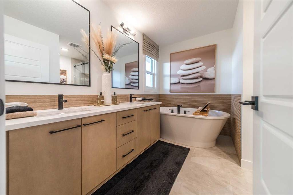 Built by Sterling Homes, this home showcases on-trend, designer-curated interior selections tailored for a home that feels personalized to you. Energy efficient and smart home features, included in each home. Built to 2025 specifications, this home features additional windows throughout, a gas fireplace with tile face, maple railing with iron spindles, and a vaulted bonus room. The executive kitchen showcases built-in stainless steel appliances, a chimney hoodfan, waterfall granite island, and a walk-in pantry. The primary bedroom offers a stunning 5-piece ensuite with soaker tub, fully tiled shower with two glass walls, bench, niche, glass shelves, swing door, and a bank of drawers in the ensuite and main bath. Enjoy tile flooring in all bathrooms and laundry, a side entrance, 9′ basement wall height, and a stylish flex room with barn door and interior windows. This energy-efficient home is Built Green certified and includes triple-pane windows, a high-efficiency furnace, and a solar chase for a solar-ready setup. With blower door testing that may be eligible for up to 25% mortgage insurance savings, plus an electric car charger rough-in, it’s designed for sustainable, future-forward living. Featuring smart home technology, this home includes a programmable thermostat, ring camera doorbell, smart front door lock, smart and motion-activated switches—all seamlessly controlled via an Amazon Alexa touchscreen hub. Photos are representative.