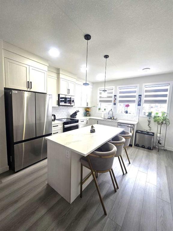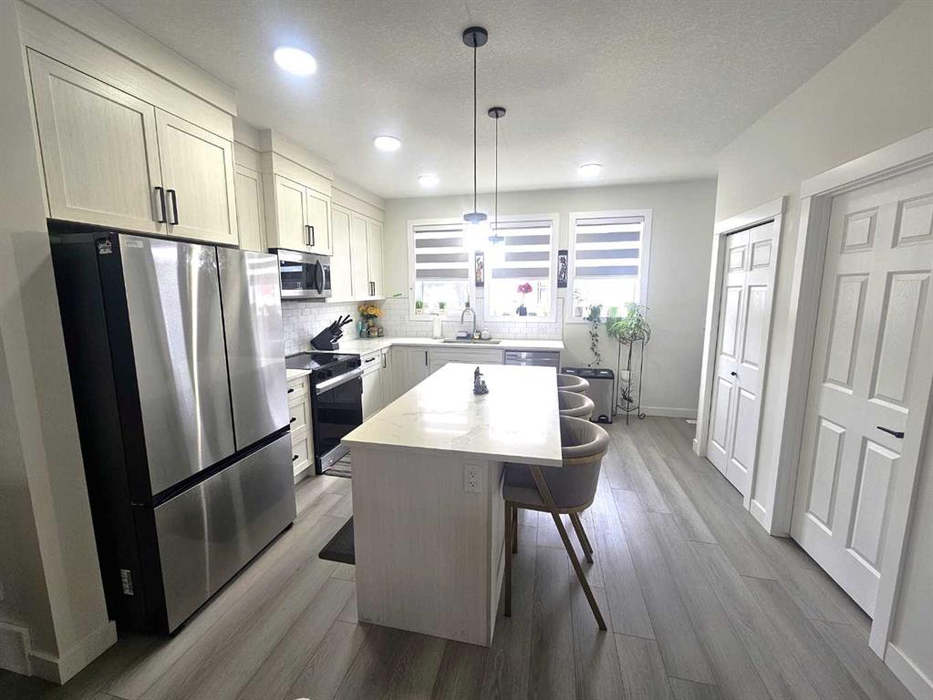 Welcome to this absolutely beautiful 2024 built home by Homes By Creation. , This home is ideal for young first time buyer family and if downsizing. Great location in this fast growing Iron landing community in Crossfield, just 10 minutes drive from Airdrie and 25mins to Calgary Airport. If you are looking for the quiet, peaceful community to start and grow your family, this is the right place for you. This home is tastefully built in 2024, lots of windows for natural light, open concept, main floor laundry, and a side entrance to the unfinished basement awaiting your finishing touch or develop for rental income. Features, Quartz counters throughout, Vinyl Plank flooring, Comfortable master bedroom with 4 piece Ensuite, addition good size bedrooms for the young ones and or other family members. Walking distance to schools, bike path, playground area. This comes on Market just in time for the little ones to enjoy the splash waterpark minutes away in the summer. Call your favorite agent today and book a showing to check this out.