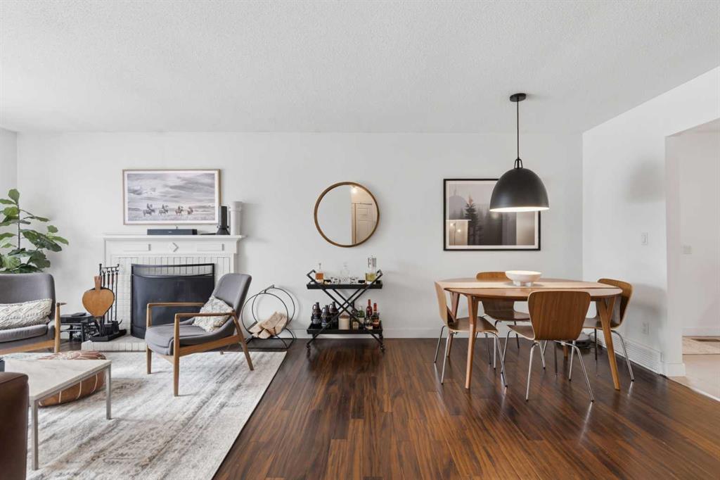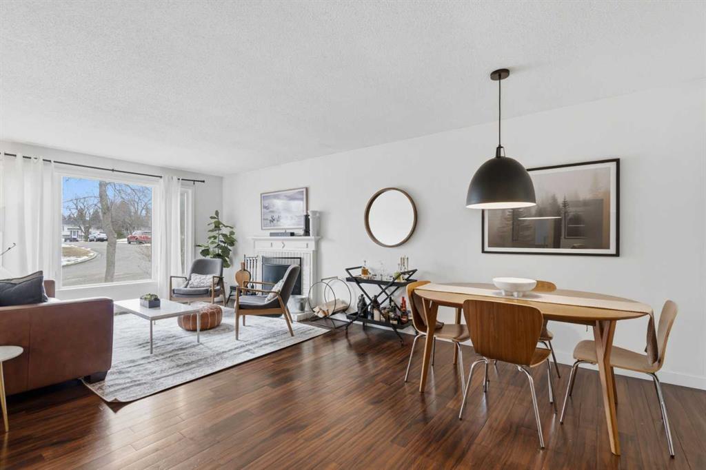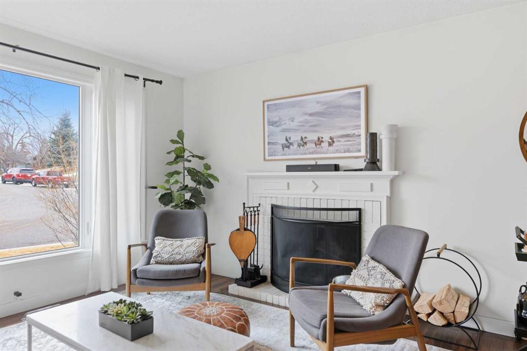 The main level is bright and comfortable, featuring a welcoming living area with a wood-burning fireplace, an efficient open dining space, and three bedrooms including the primary. The layout is practical, warm, and easy to live in.
