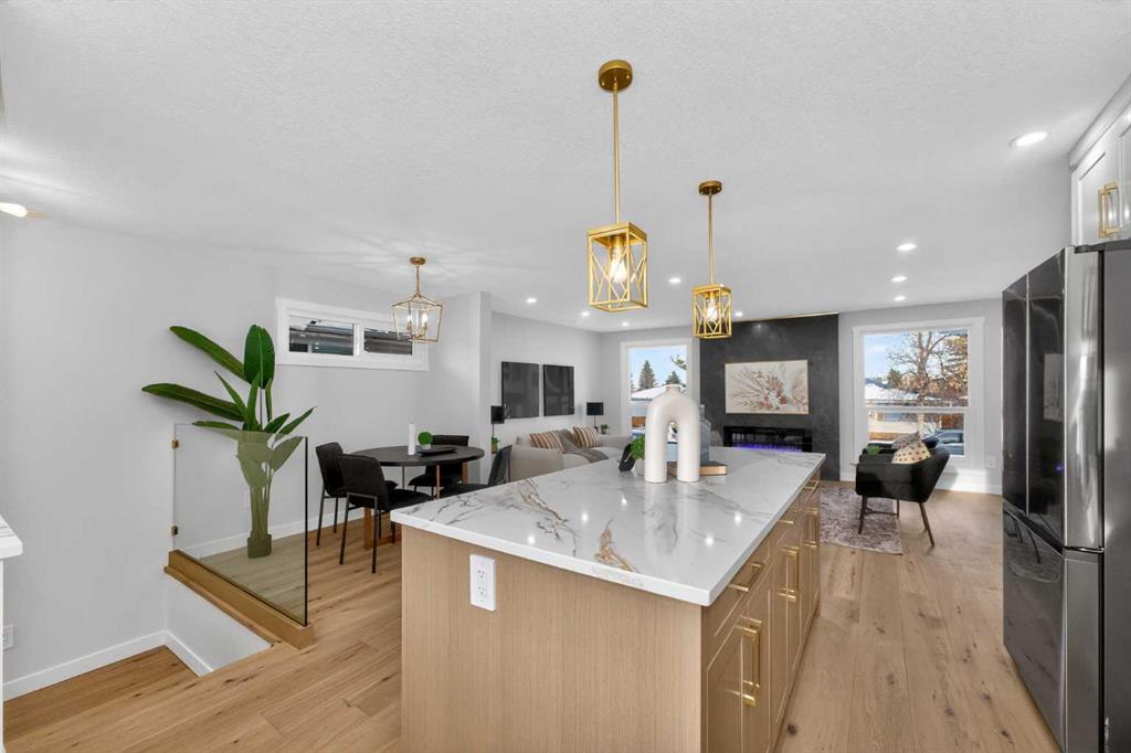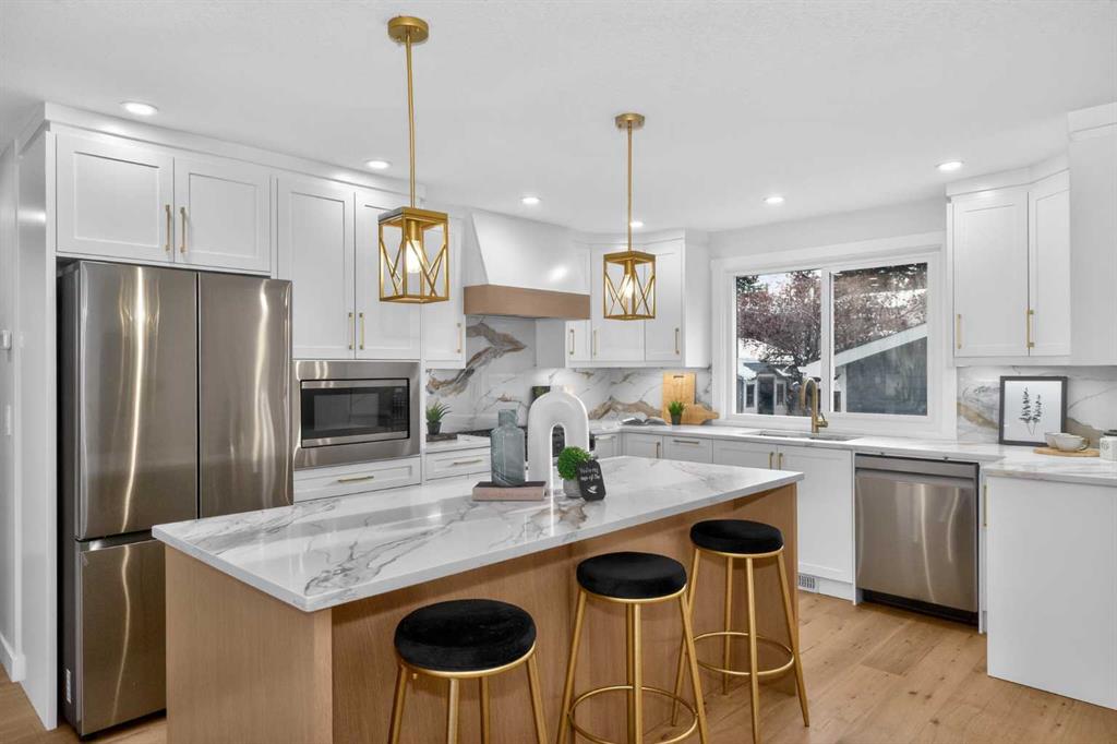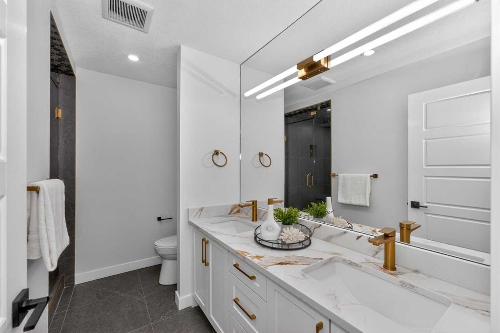 Experience a complete, Professionally Curated Renovation that elevates this home to a new level of luxury. Meticulously reimagined from top to bottom, every element has been crafted to deliver a refined, One-of-a-kind living experience. Resulting in a truly an exceptional luxury residence unlike any other that stands apart in the community. From the street, you’ll be captivated by the all-new Hardie board siding, Custom-designed window package, New roof, New concrete all around, and an Oversized Garage— Curb appeal that is second to none. Walk through the front door and into a bespoke home with 2328 sqft of living space. You will be met with Engineered Hardwood Flooring, Heated Bathroom Tiles, and Brushed Gold finishes throughout. The interior is flooded with natural light, creating a bright and elegant atmosphere. The Kitchen is a stunning showcase of custom design and craftsmanship— Featuring Schenk Painted Custom Cabinetry with an Oak finished extra large island with storage, Pull-out Waste & Recycling, Under cabinet lighting, Quartz countertops, Samsung appliance package, and an Oak trimmed built-in hood range. Every detail has been thoughtfully considered and beautifully executed. The Master bedroom suite offers an elegant experience, complete with a spa-like Custom Rainfall Shower finished with Custom Tile work and Heated floors, The large Walk-in closet is complete with built-ins. The Second bedroom has ample storage and lots of natural light. The Main Bathroom includes tasteful finishes and a polished look with Heated tile flooring. Luxury touches continue into the Completely reimagined Basement which features another Master bedroom complete with its own separate Full Bathroom and a Second spacious Bedroom. The Signature Wet bar is complete with Cabinet lighting, wine racks, and glass built in shelves. The beautiful laundry room is finished with Quartz countertops and a sink for added convenience. The basement also features Massive windows, storage room, and a huge Main full Bathroom offering plenty of room for everyday comfort. Behind the new drywall, the home was re-engineered from the studs and up for modern luxury with new electrical and plumbing throughout and complete with all city permits. Also featuring a high-efficiency Rheem furnace and Rheem tankless hot water on demand, and air conditioning. If you’re looking for a Home that truly sets itself apart — Distinguished by Unmatched Design, Integrity, and Finish. — This Is Truly The One!