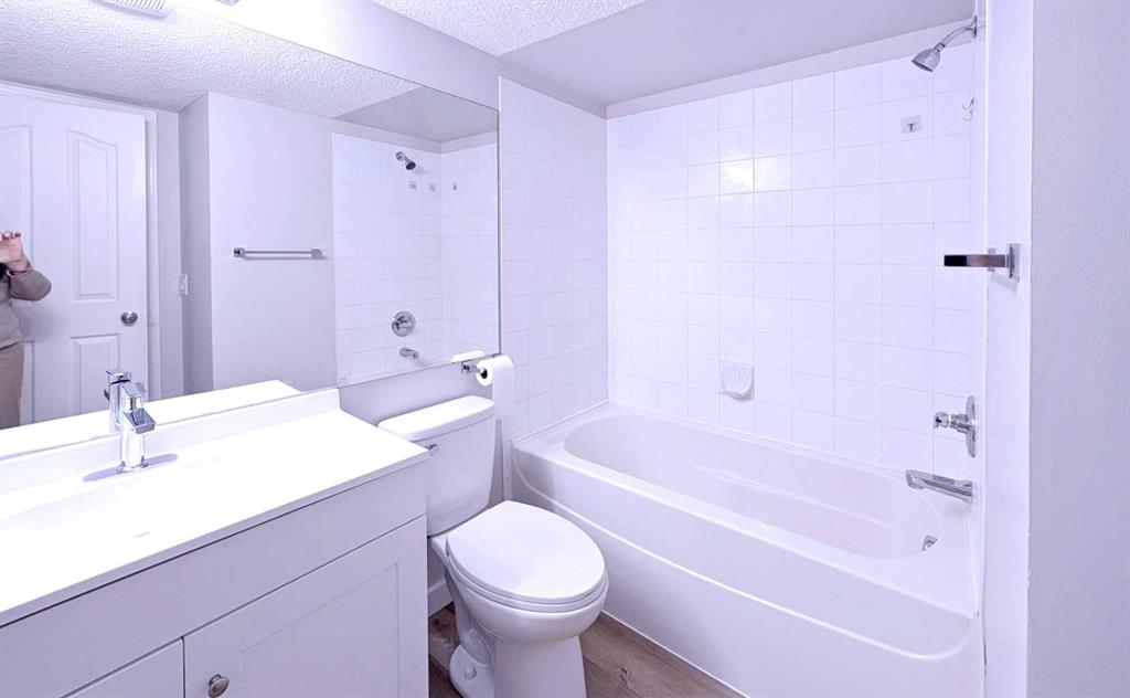 This inviting home features brand-new luxury vinyl plank flooring throughout, creating a seamless and modern aesthetic. The upgraded kitchen showcases newer stainless steel appliances, freshly installed cabinet doors, and contemporary laminate countertops. The entire unit has been professionally repainted, including the ceilings, giving it a crisp, refreshed feel.