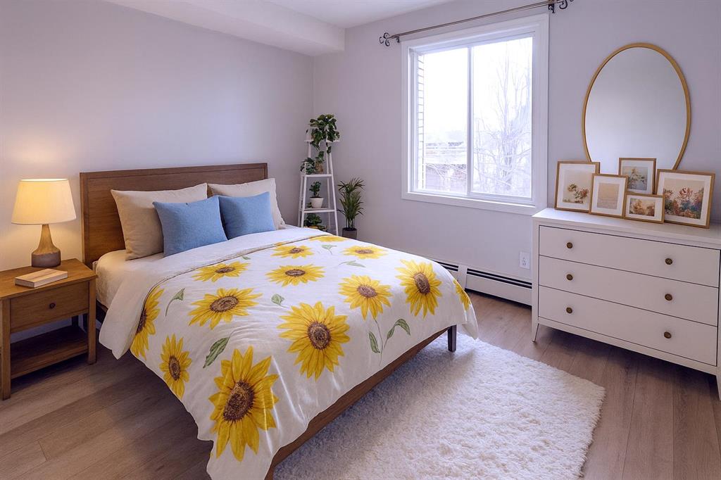 Both bedrooms are generously sized, with excellent closet space, including a walk-in closet in one of the rooms. A well-appointed 4-piece bathroom and the convenience of in-suite laundry complete the interior.