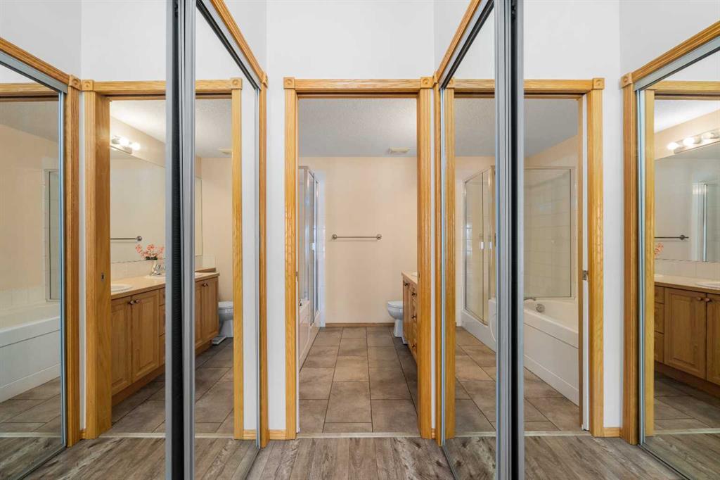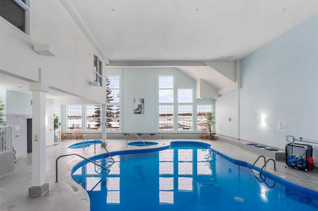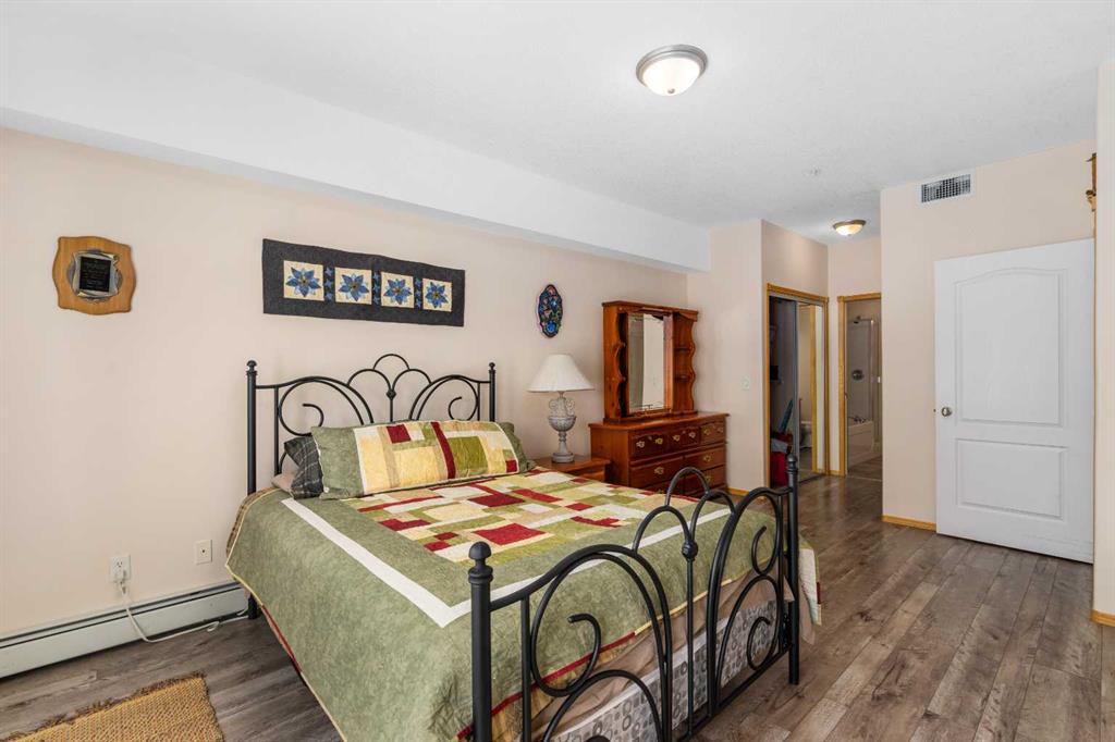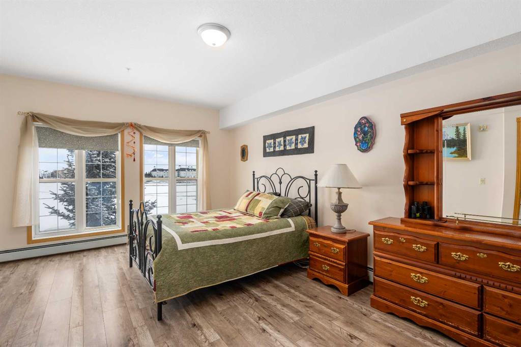The one you’ve been waiting for! The Roxton model is located in the ever so popular Country Village on the Cove! This 1378 sf unit faces south onto the Pond and walking paths! The large foyer with hall closet invites you into a bright and open living space! The open living area features a large living room with corner Electric Fireplace finished in Oak trim with a nice mantle. The open concept kitchen features oak cabinets with lots of cupboard space, a corner pantry and separate entrance to the formal dining room! Next to the dinette is the utility/laundry room with stacked washer & dryer, a standup freezer and small closed cupboard for additional storage. There are 2 spacious bedrooms with 2 ensuites! The Primary offers a perfect sitting area for reading and gazing over the Pond! There is room for a King suite or doubles and features double mirrored closets entering the 5pcEnsuite. The second bedroom is also quite spacious and looks out over the Pond. It has a 4pc Ensuite with a separate door to the living room. The covered balcony offers space for a BBQ and sitting area w/table. Additionally, this unit has a separate titled heated parking space with assigned storage in front. The amenities are many and offers you an array of options, from bowling to a well expansive collection of reading material in the library! Or go for a date night to the private theatre. If you’re looking for a change from a high maintenance house and yard but still need a little room for a little entertaining, consider moving into this well cared for facility and unit! Don’t wait as these larger units don’t normally last long! Thanks for your interest!