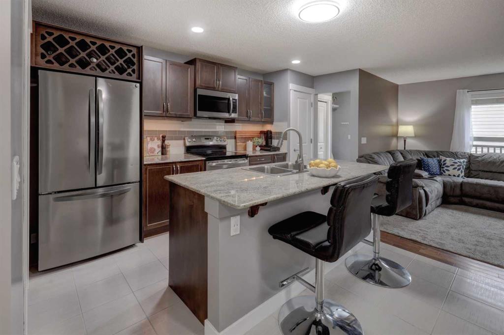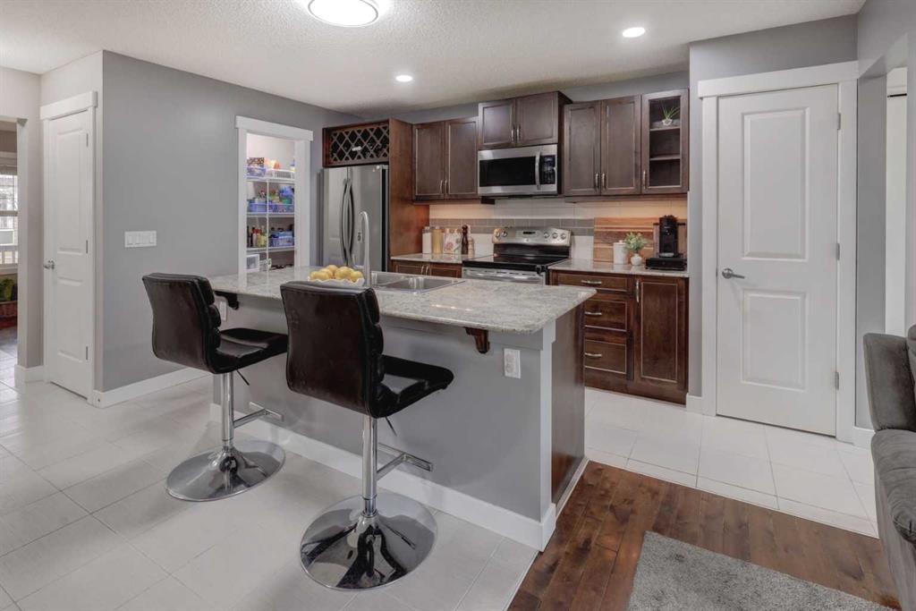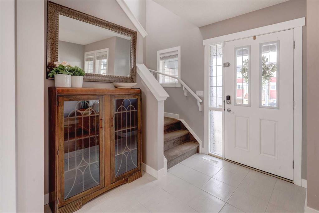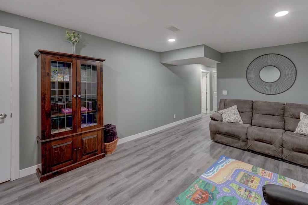 OPEN HOUSE Saturday Feb 7th from 2-4pm ** Charming curb appeal, a thoughtfully designed layout, brand new Basement development, and an oversized double detached Garage – all come together! Welcome to this beautifully maintained semi-detached 4-bedroom, 3.5-bath home that delivers a functional layout ideal for a growing family. From the moment you arrive, you’ll appreciate the adorable covered front porch, charming front garden beds, and inviting curb appeal that set the tone. Step inside to a functional tiled foyer perfect for muddy winter boots and busy mornings, and continue into the bright main floor featuring hardwood and tile flooring throughout. A front Office/Den provides a flexible work-from-home or playroom space, while the heart of the home is the Kitchen, showcasing rich cabinetry, quartz countertops, SS appliances, an eat-up island, a built-in custom wine rack above the fridge, and a large Pantry for added organization. The open-concept Dining area easily accommodates a large gathering table and flows into the spacious Living Room — ideal for both everyday living and entertaining. Near the back entrance, enjoy an organized closet and built-in bench, creating a smart drop zone before stepping outside to the extremely private NW facing, full-width back deck, beautifully shielded by the detached garage and a built-in privacy wall. Completing the main level is a well-placed 2pc Bathroom with pedestal sink. Upstairs, you’ll find three bedrooms, including a generous Primary retreat with Walk-In Closet AND a 4-pc ensuite featuring an oversized tile-surrounded soaker tub beneath a large opening window. Additional two bedrooms are finished with carpet for added comfort. The upper Laundry Room adds everyday convenience with built-in cabinetry and a folding counter. The NEWLY DEVELOPED Basement adds outstanding value, offering a FOURTH BEDROOM, spacious Rec Room, and an elegant full Bathroom with a corner walk-in shower, all finished with modern vinyl plank flooring and bright recessed lighting. Additional highlights include Central Air Conditioning for year-round comfort, south-facing front exposure to enjoy your morning coffee, rear lane access, and a fantastic oversized Detached Double Garage with lot’s of electrical outlets. Located close proximity and walking distance to parks, walking paths, schools, and shopping, this move-in-ready home delivers space, function, and comfort in a family-friendly community! Book your private viewing TODAY.
