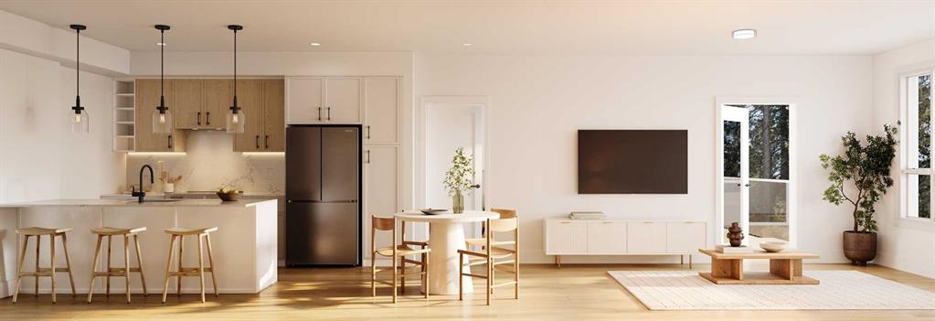 Welcome to Aspen Village by Vesta Properties! This is modern urban living in a thoughtfully designed 2-bedroom residence offering exceptional functionality, contemporary finishes, and a vibrant lifestyle setting. Featuring an open-concept layout, this home combines comfort and style with a spacious living area and designer kitchen ideal for both everyday living and entertaining. The sleek kitchen showcases quartz countertops, full-height cabinetry, under-mount sinks, and a large central island with pendant lighting. Energy-efficient stainless-steel appliances and a rare oversized in-suite laundry and storage room provide exceptional practicality and modern convenience. Two well-proportioned bedrooms offer flexibility for guests, a home office, or family living, while the elegant bathroom features clean modern detailing, quartz surfaces, and timeless fixtures. Durable luxury vinyl plank flooring flows throughout, complemented by curated interior palettes and contemporary ceiling finishes. Enjoy outdoor relaxation on your private balcony. Built with quality construction standards including triple-pane windows, engineered floor systems, and enhanced soundproofing, this home offers comfort, quiet, and energy efficiency. Residents will have the opportunity to join the members-only Aspen Club, a private amenity hub featuring collaborative workspaces, lounge areas, a state-of-the-art fitness centre and spin studio, yoga and games rooms, and beautifully designed rooftop gathering spaces. Aspen Village will also feature an Urban Village with over 60,000 sq. ft. of planned retail and services, offering pedestrian-friendly streets lined with boutique shopping, cafés, dining, wellness studios, daycare, medical services, and everyday conveniences—creating a vibrant and connected community atmosphere. Ideally positioned close to transit, parks, shopping, and key lifestyle amenities, this residence presents an exceptional opportunity for first-time buyers, downsizers, or investors seeking long-term value in one of Calgary’s most exciting emerging communities. Anticipated possession is scheduled for 2027.