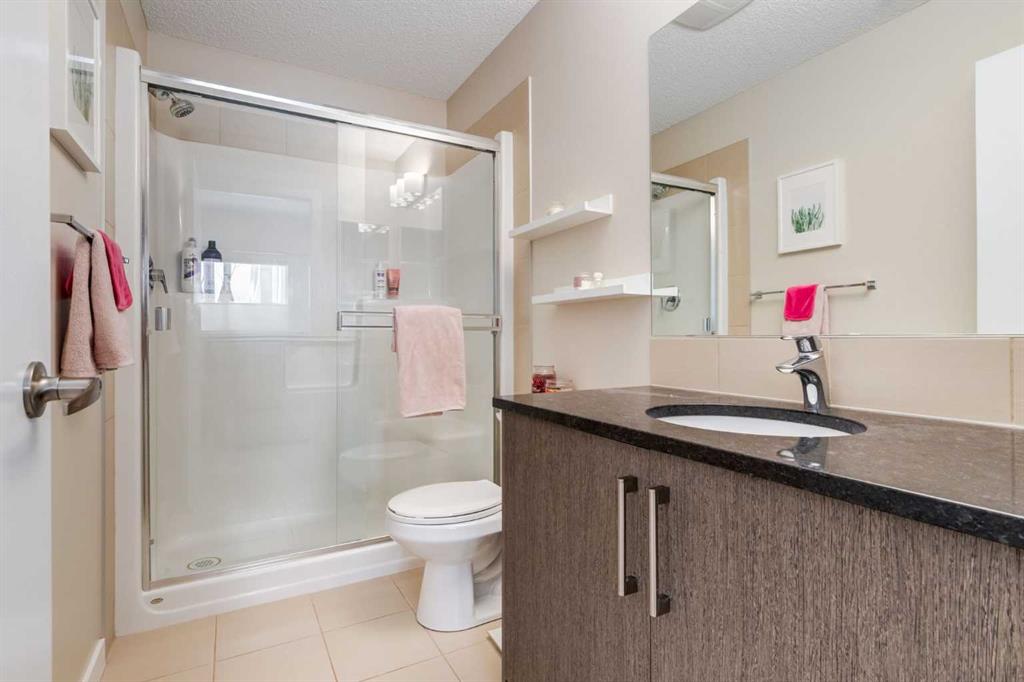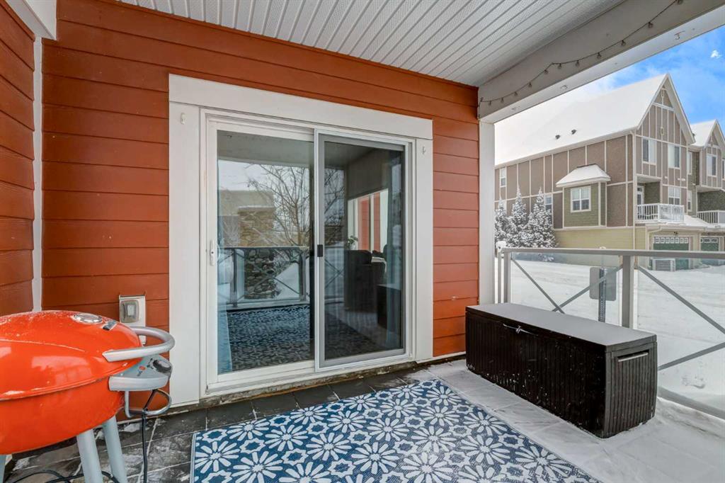 Welcome to Ebony in Mahogany, Built by Jayman this Condo lifestyle communty offers a gym and easy walking access to the main beach in Mahogan. The community offers an incredible lifestyle with restaurants, cafes, shops, scenic pathways, year round access to Lake Mahogany with sandy beaches, paddle boarding, fishing, skating in winter. This luxuriously upgraded former Jayman Showhome is a bright end unit with abundant windows that fill the space with natural light. The main floor location offers convenient access to the generous covered southwest patio, perfect for relaxing outdoors or enjoying summer evenings, imagine reading a book on a rainy day. A private exterior gate provides direct access to the unit, making it especially convenient for those with dogs or guests arriving directly from outside. Meticulously cared for, this home is truly move in ready with fresh paint, new carpets and a dishwasher replaced within the past year. The modern kitchen showcases rich espresso cabinetry, sleek dark granite countertops and a striking mosaic tile backsplash. Stainless steel appliances and abundant cabinetry create a highly functional workspace while the oversized island with seating invites casual dining and conversation. Contemporary lighting enhances the space and the window over the kitchen sink allows additional natural light while offering a pleasant outlook outside. The living room offers a comfortable space where relaxing is key, with large windows that bring in beautiful natural light and create an ideal environment for plants to thrive. The spacious primary bedroom easily accommodates larger furniture and features a walk in closet along with a well appointed three piece ensuite with stone counter and stylish shower. The second bedroom is thoughtfully positioned on the opposite side of the kitchen, providing excellent privacy for guests, roommates or a home office. A four piece bathroom is conveniently located just outside the bedroom. The welcoming front entry offers space for guests to arrive comfortably while the in suite laundry room includes additional shelving for practical storage. Central Air Conditioning provides welcome comfort during warm summer months. An exceptional opportunity to enjoy stylish living and the incredible Mahogany lifestyle.
