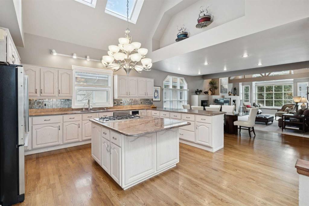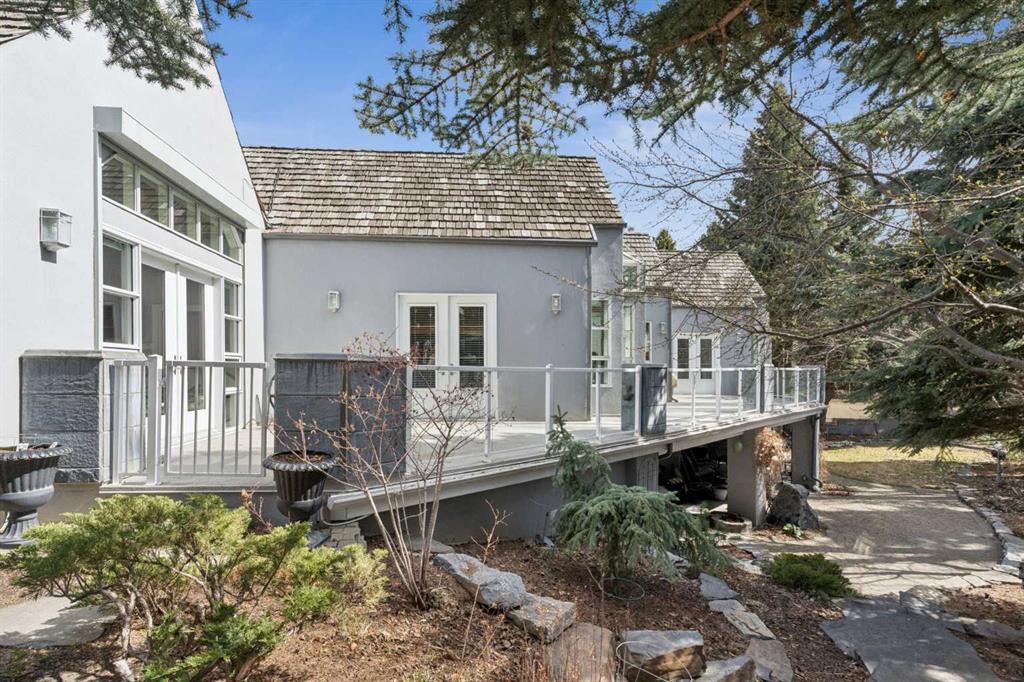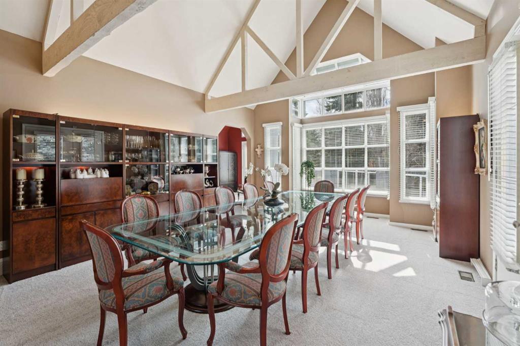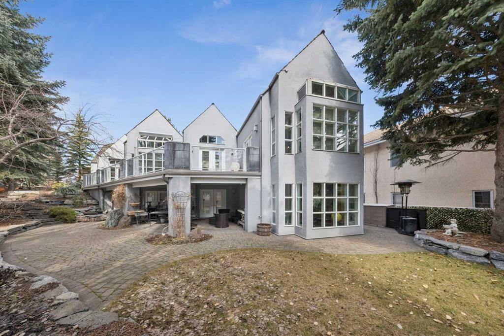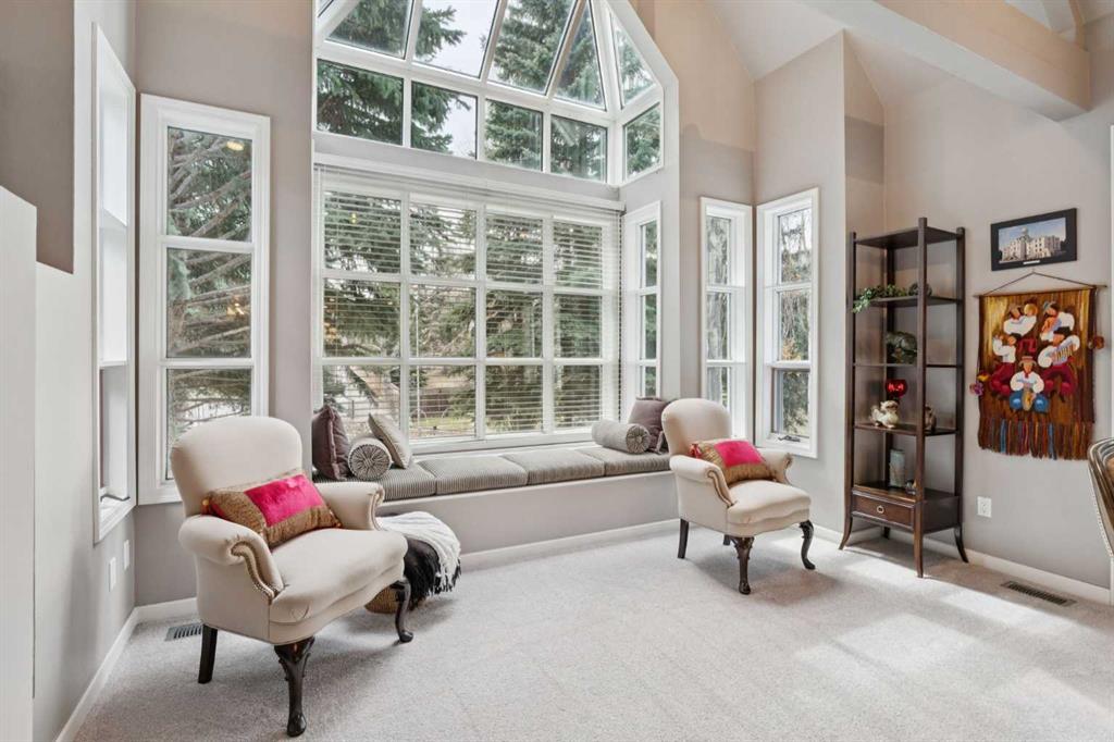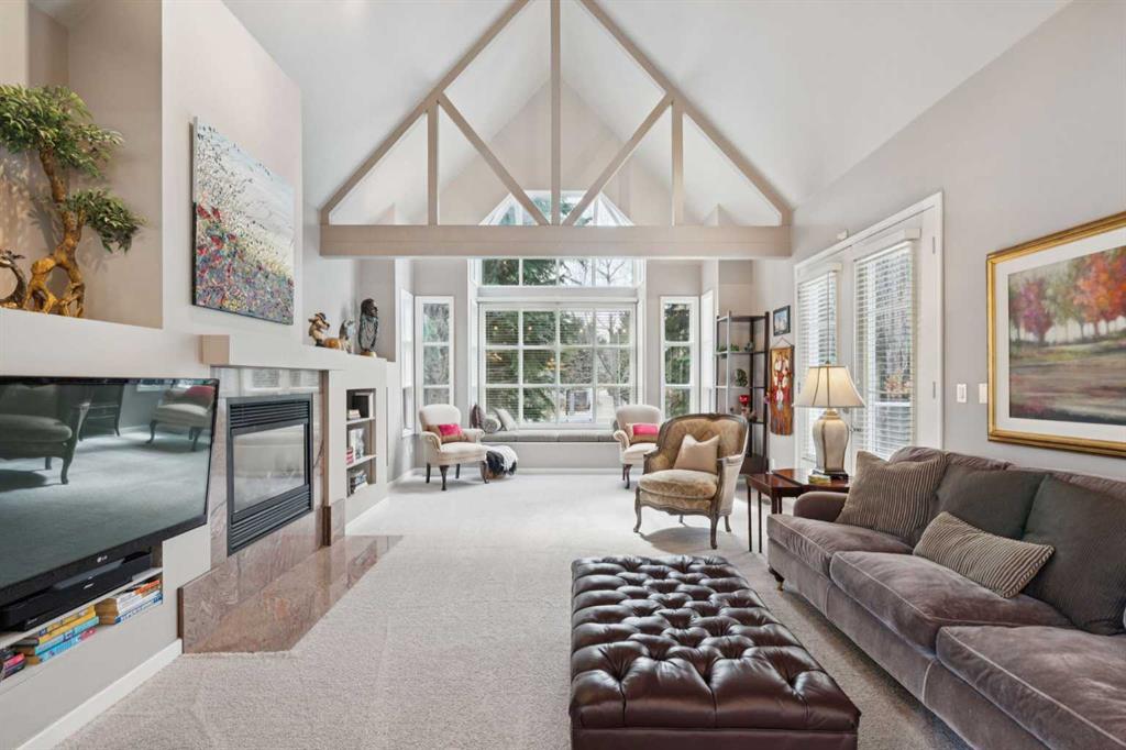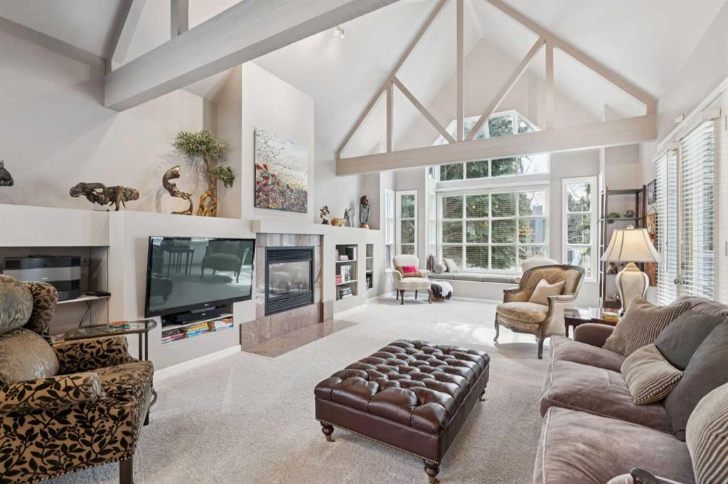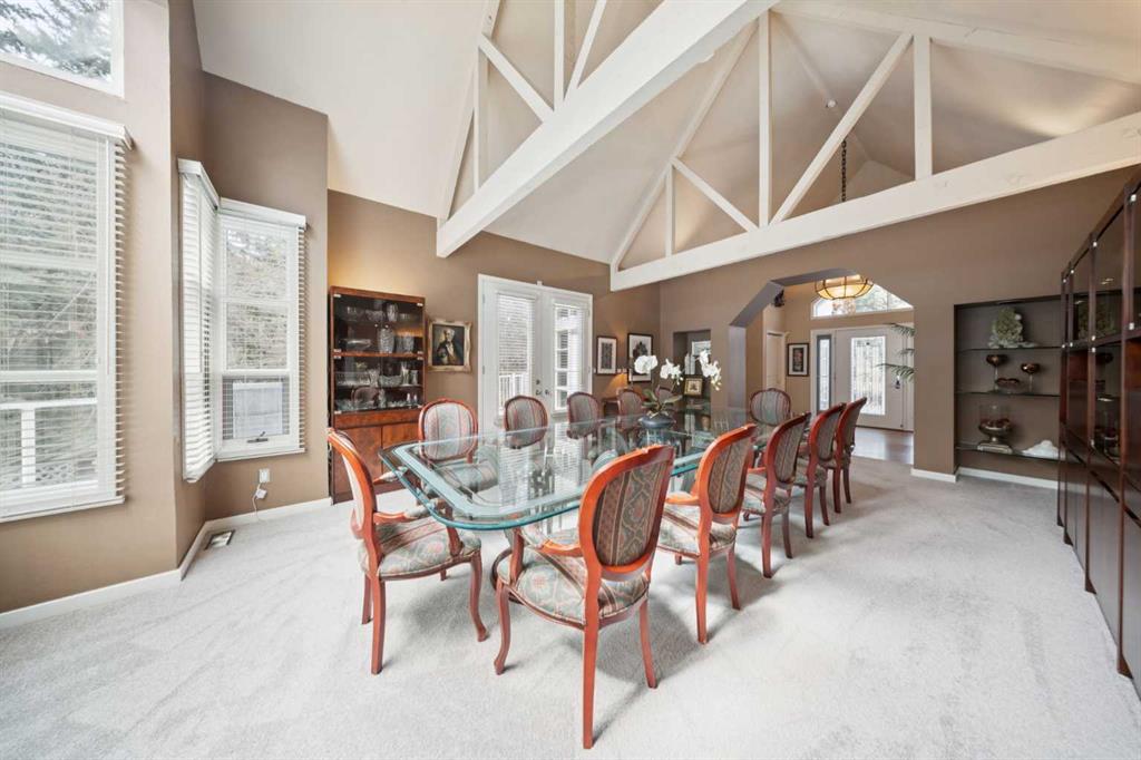 Tucked away at the end of a quiet cul-de-sac in prestigious Pump Hill, this rare, oversized bungalow offers an extraordinary combination of scale, character, and timeless quality. Spanning an impressive 3,178 SF above grade with an additional 2,446 SF in the fully developed walkout basement, 5 bedrooms and 4.5 bathrooms (3 ensuites), this is a home seldom found in today’s market. From the moment you enter, soaring and varied ceiling heights, exposed beams, and expansive principal rooms create a sense of warmth and architectural presence that sets this residence apart. Designed with exceptional flow for both daily living and entertaining, the home features a gracious dining room that transitions seamlessly into an inviting sitting room, opening onto the expansive west-facing rear deck also accessible from the primary suite for a private morning coffee or evening retreat. The kitchen is generously proportioned and built for gathering, showcasing abundant cabinetry, double ovens, quality stone surfaces, and a massive island with eating bar that connects naturally to the welcoming family room. Nearby, a large laundry area, walk-in pantry, and practical boot room leading to the triple attached garage with epoxy flooring enhance everyday convenience. The main level offers two spacious bedrooms, each with beautifully renovated ensuites, including a luxurious primary retreat complete with an oversized walk-in closet and spa-inspired ensuite. The walkout lower level continues to impress with two additional bedrooms, a dedicated office, a fitness room with rubber flooring, updated bathrooms and extensive storage space. You will love summers in the serene backyard with gorgeous, mature landscaping and expansive patio space. Lovingly maintained over the years with clear pride of ownership making this is a rare opportunity to secure a substantial bungalow in one of Calgary’s most established and sought-after communities.