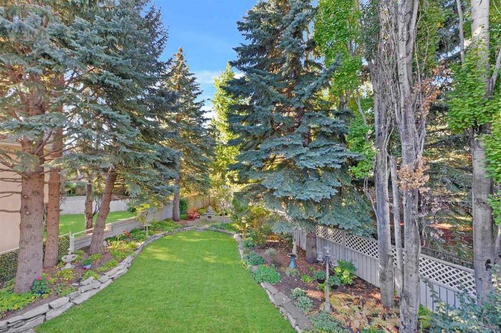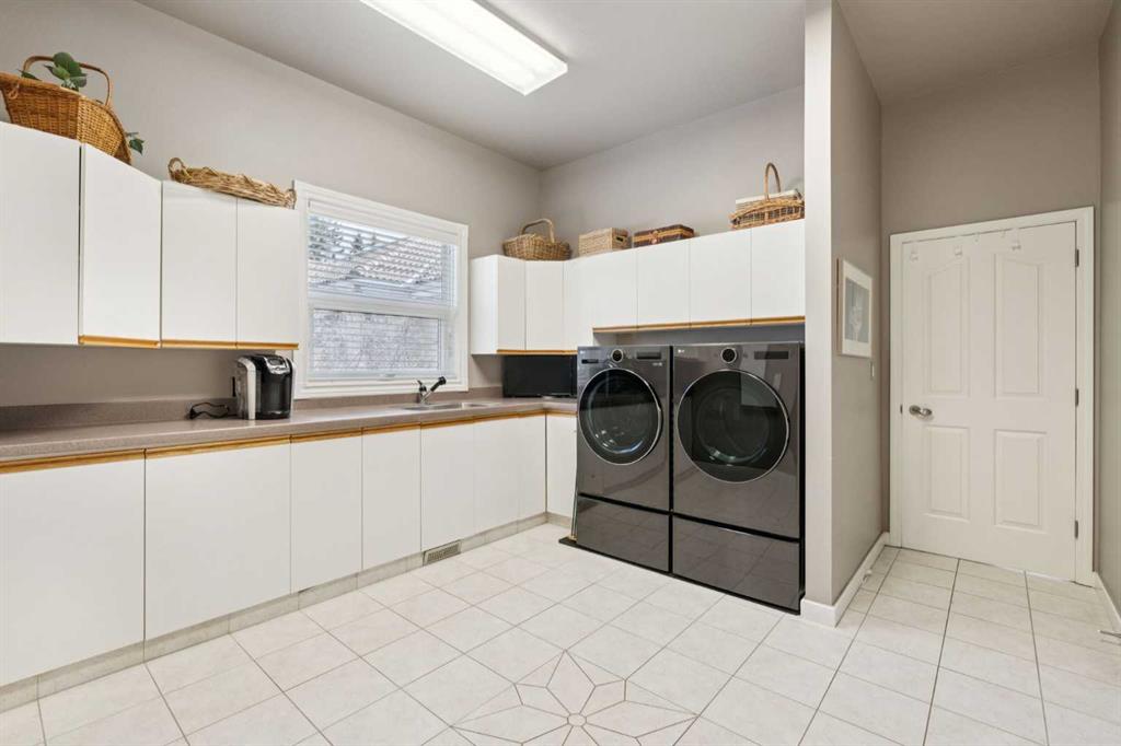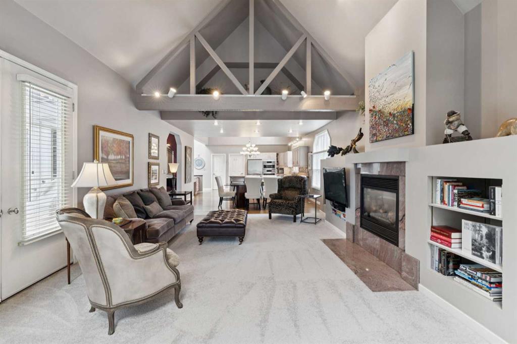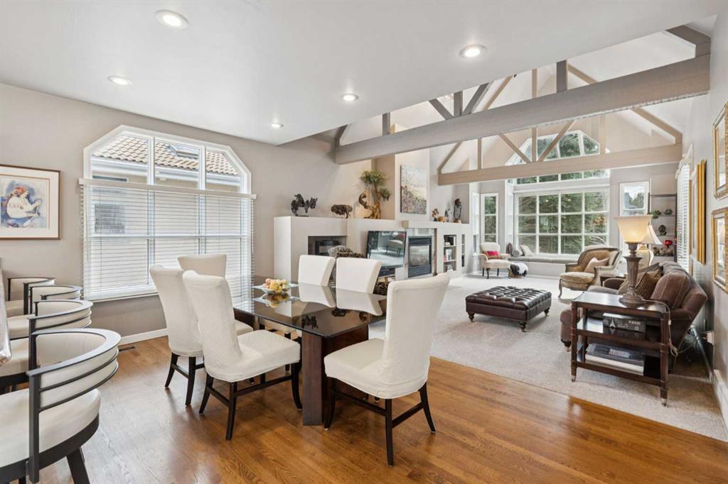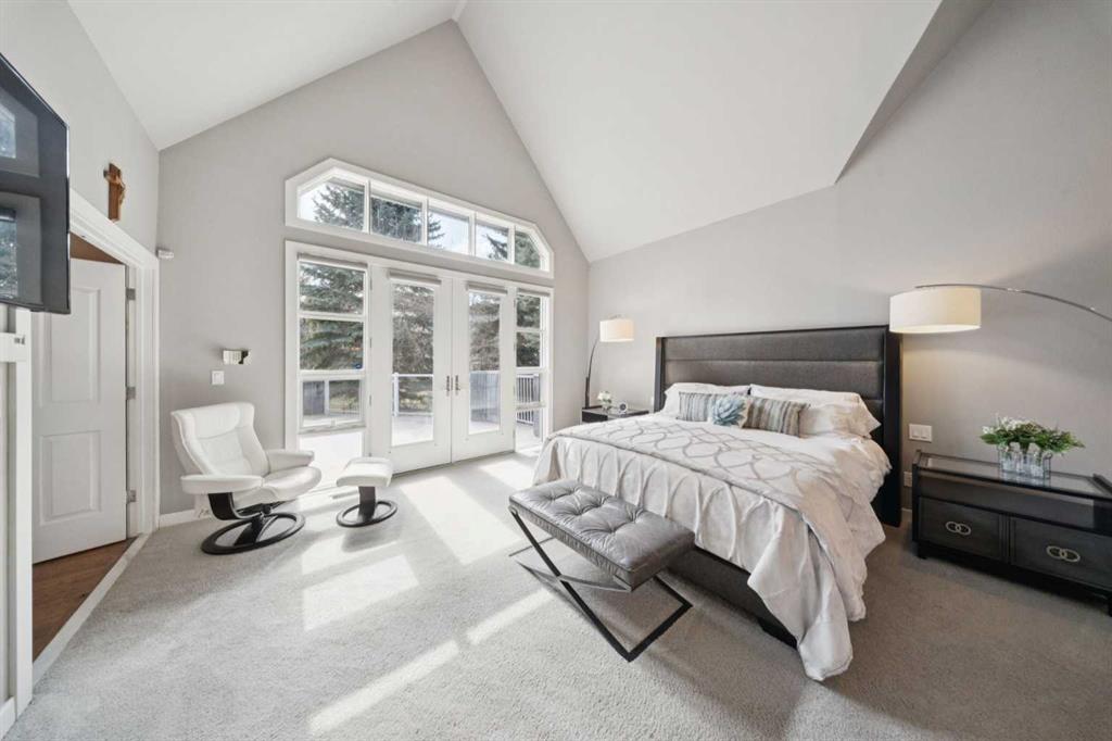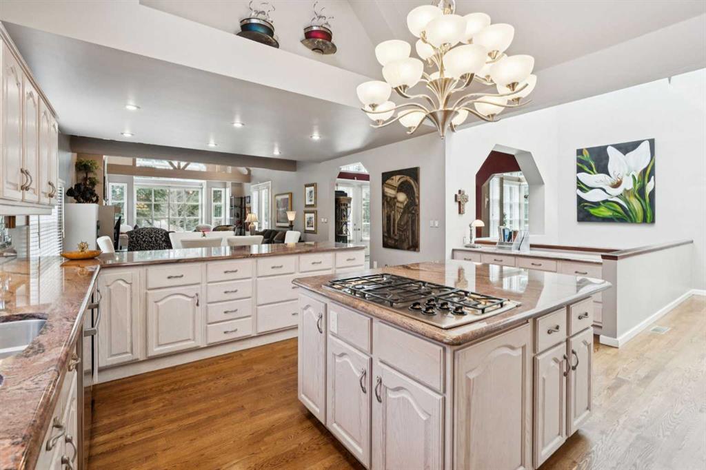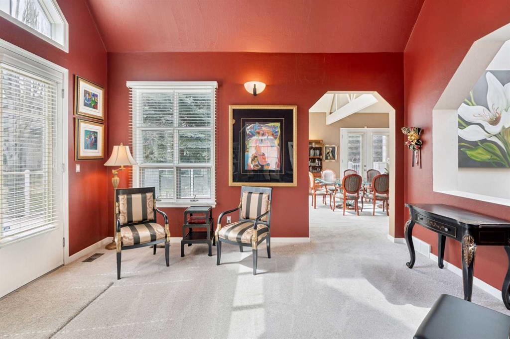 Tucked away at the end of a quiet cul-de-sac in prestigious Pump Hill, this rare, oversized bungalow offers an extraordinary combination of scale, character, and timeless quality. Spanning an impressive 3,178 SF above grade with an additional 2,446 SF in the fully developed walkout basement, 5 bedrooms and 4.5 bathrooms (3 ensuites), this is a home seldom found in today’s market. From the moment you enter, soaring and varied ceiling heights, exposed beams, and expansive principal rooms create a sense of warmth and architectural presence that sets this residence apart. Designed with exceptional flow for both daily living and entertaining, the home features a gracious dining room that transitions seamlessly into an inviting sitting room, opening onto the expansive west-facing rear deck also accessible from the primary suite for a private morning coffee or evening retreat. The kitchen is generously proportioned and built for gathering, showcasing abundant cabinetry, double ovens, quality stone surfaces, and a massive island with eating bar that connects naturally to the welcoming family room. Nearby, a large laundry area, walk-in pantry, and practical boot room leading to the triple attached garage with epoxy flooring enhance everyday convenience. The main level offers two spacious bedrooms, each with beautifully renovated ensuites, including a luxurious primary retreat complete with an oversized walk-in closet and spa-inspired ensuite. The walkout lower level continues to impress with two additional bedrooms, a dedicated office, a fitness room with rubber flooring, updated bathrooms and extensive storage space. You will love summers in the serene backyard with gorgeous, mature landscaping and expansive patio space. Lovingly maintained over the years with clear pride of ownership making this is a rare opportunity to secure a substantial bungalow in one of Calgary’s most established and sought-after communities.
