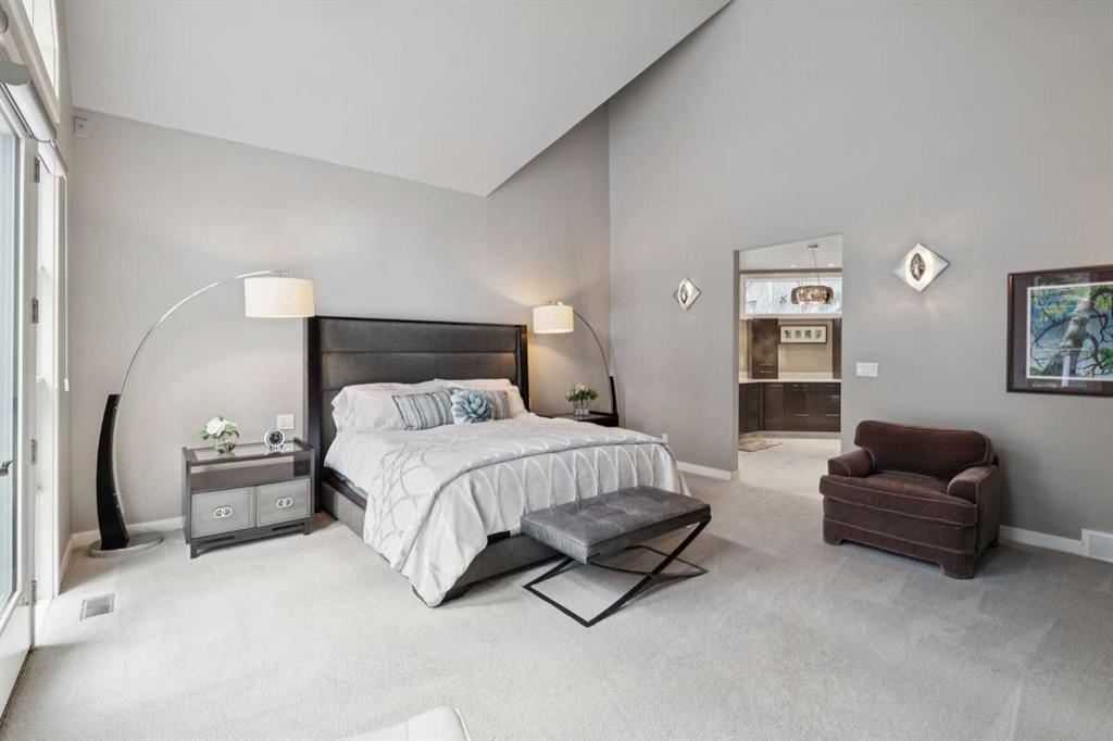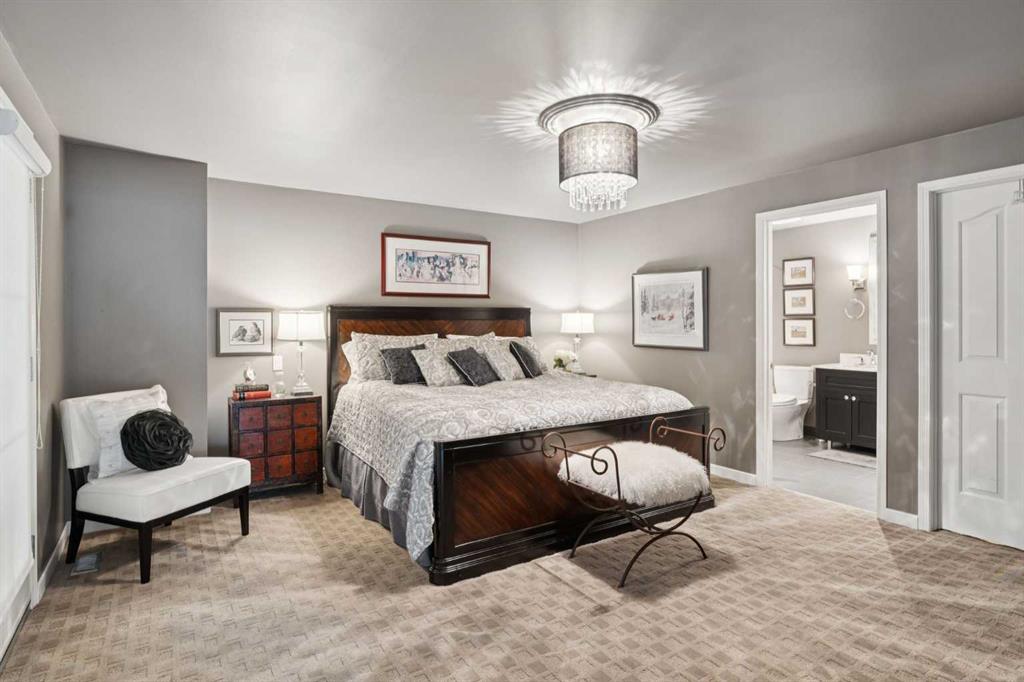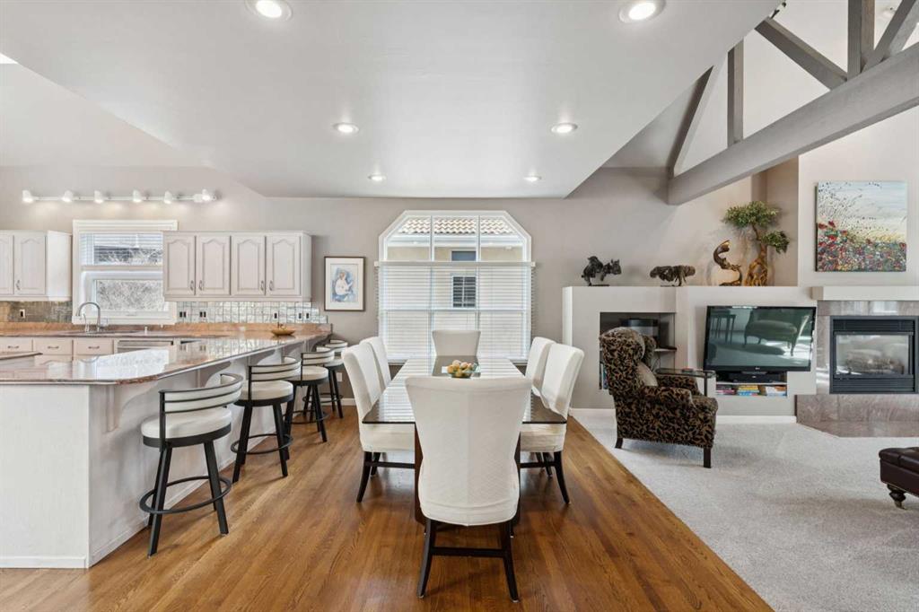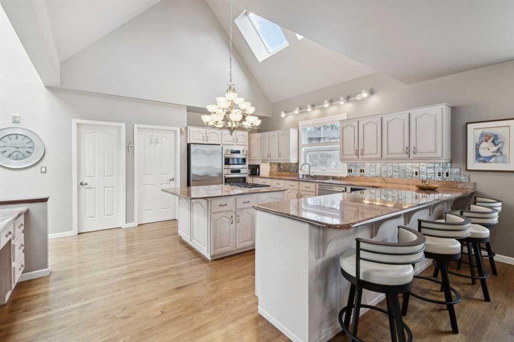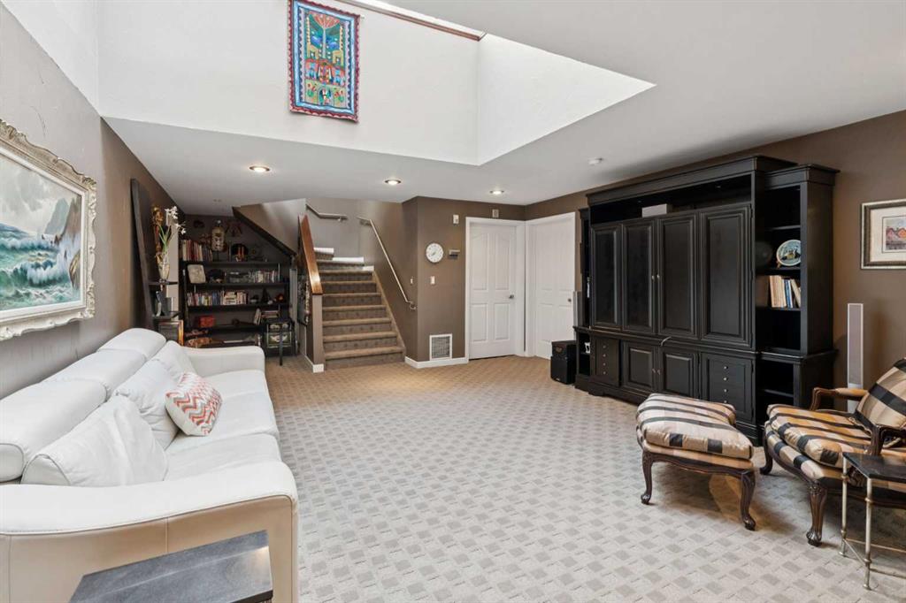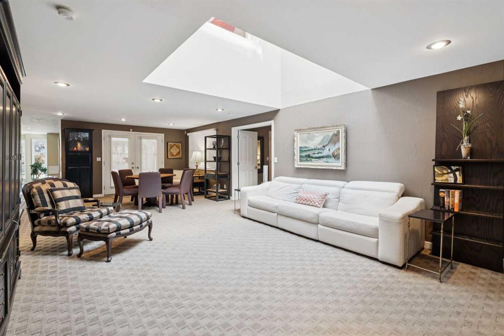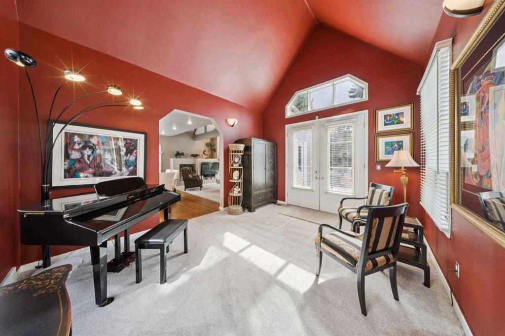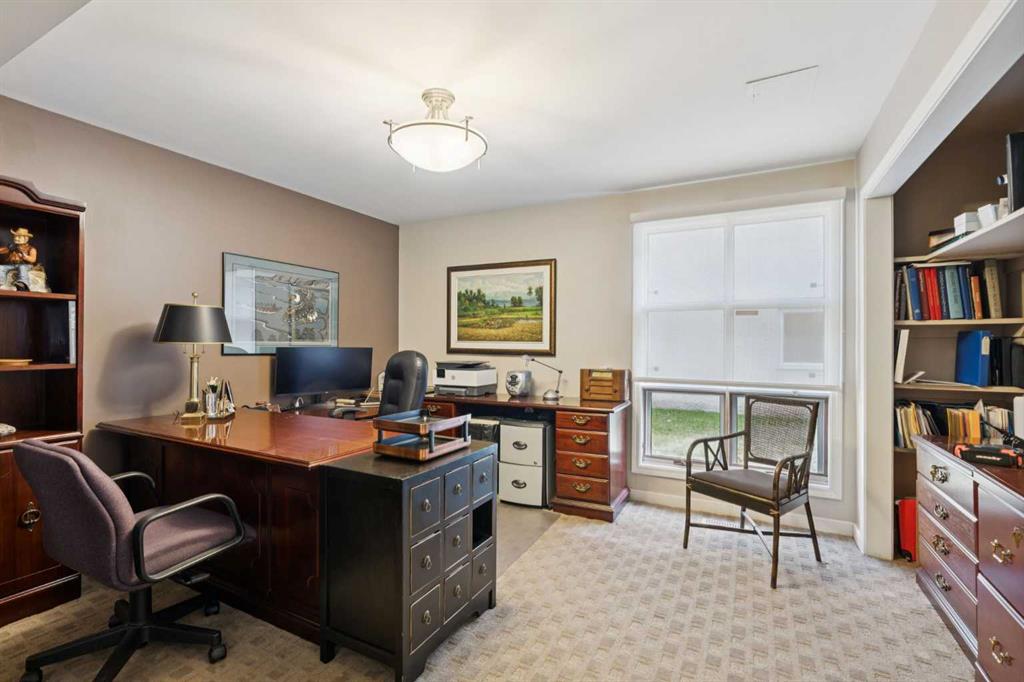 Tucked away at the end of a quiet cul-de-sac in prestigious Pump Hill, this rare, oversized bungalow offers an extraordinary combination of scale, character, and timeless quality. Spanning an impressive 3,178 SF above grade with an additional 2,446 SF in the fully developed walkout basement, 5 bedrooms and 4.5 bathrooms (3 ensuites), this is a home seldom found in today’s market. From the moment you enter, soaring and varied ceiling heights, exposed beams, and expansive principal rooms create a sense of warmth and architectural presence that sets this residence apart. Designed with exceptional flow for both daily living and entertaining, the home features a gracious dining room that transitions seamlessly into an inviting sitting room, opening onto the expansive west-facing rear deck also accessible from the primary suite for a private morning coffee or evening retreat. The kitchen is generously proportioned and built for gathering, showcasing abundant cabinetry, double ovens, quality stone surfaces, and a massive island with eating bar that connects naturally to the welcoming family room. Nearby, a large laundry area, walk-in pantry, and practical boot room leading to the triple attached garage with epoxy flooring enhance everyday convenience. The main level offers two spacious bedrooms, each with beautifully renovated ensuites, including a luxurious primary retreat complete with an oversized walk-in closet and spa-inspired ensuite. The walkout lower level continues to impress with two additional bedrooms, a dedicated office, a fitness room with rubber flooring, updated bathrooms and extensive storage space. You will love summers in the serene backyard with gorgeous, mature landscaping and expansive patio space. Lovingly maintained over the years with clear pride of ownership making this is a rare opportunity to secure a substantial bungalow in one of Calgary’s most established and sought-after communities.