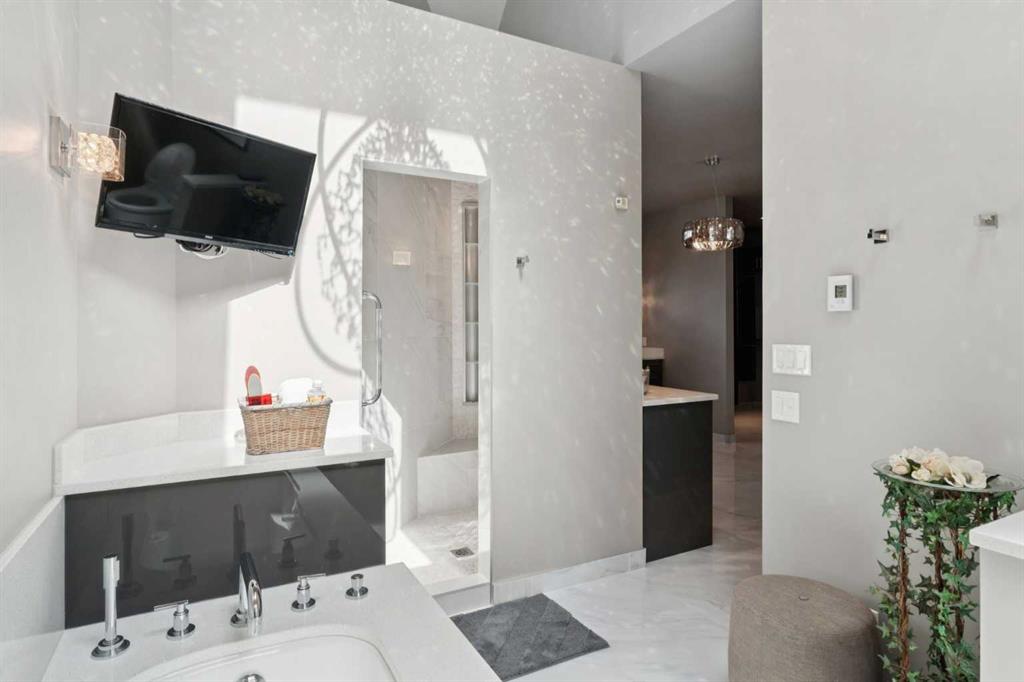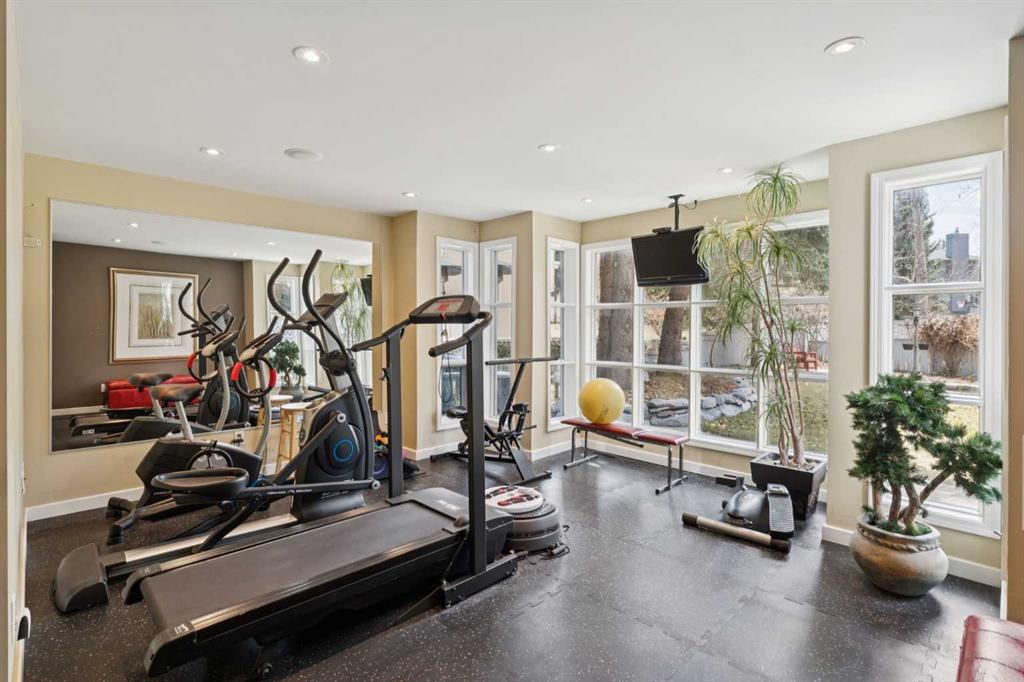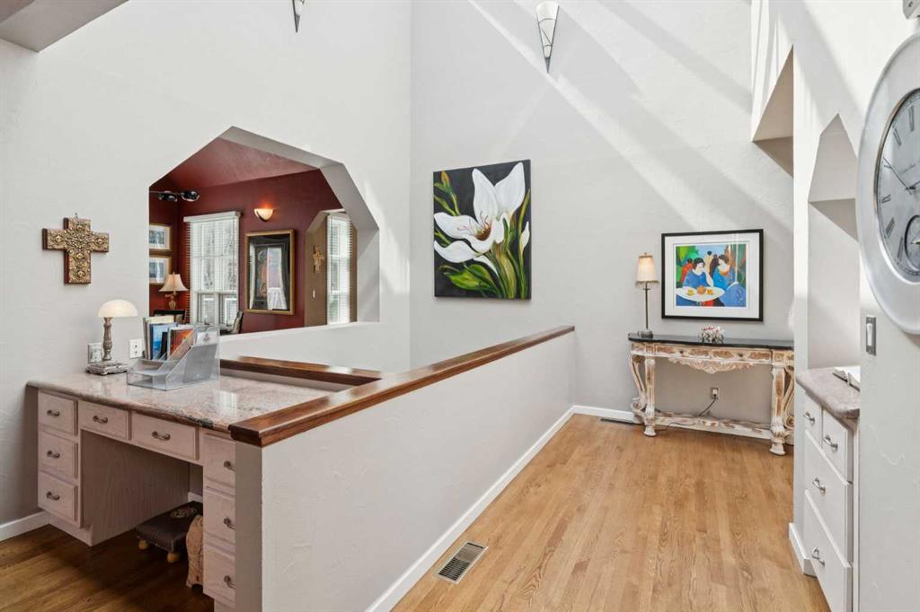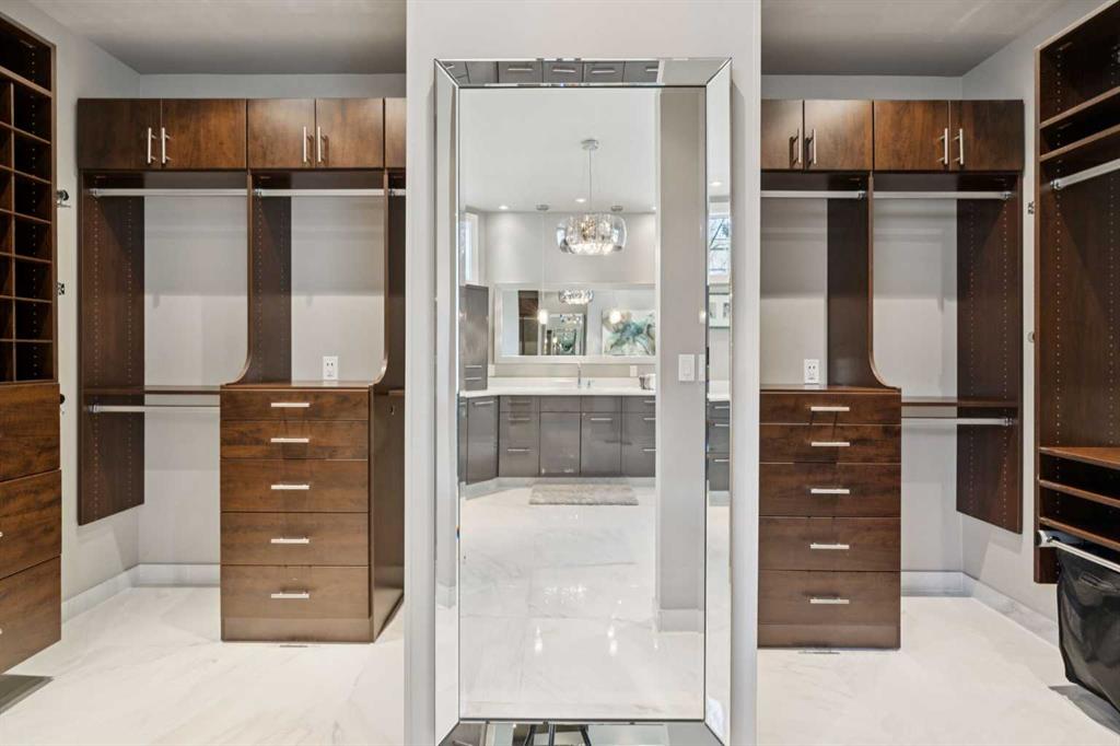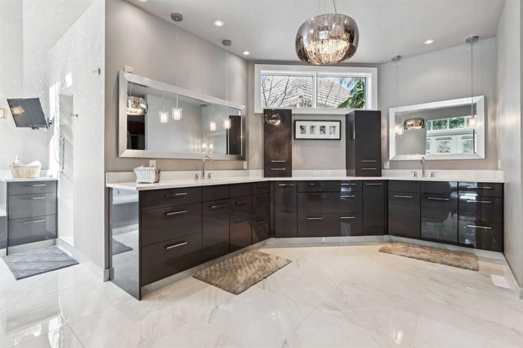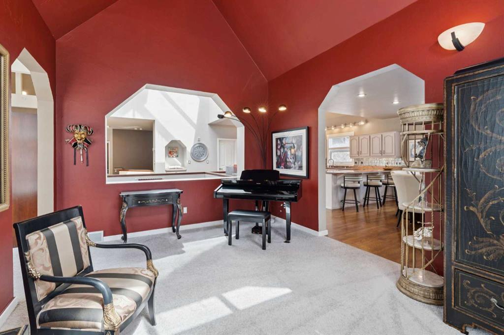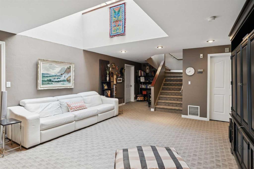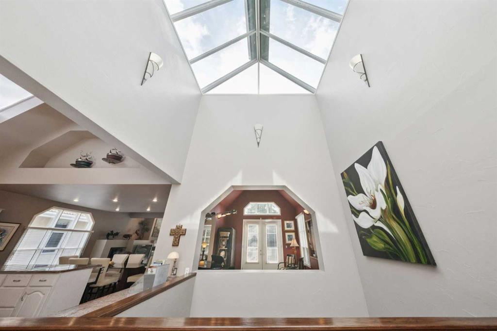 Tucked away at the end of a quiet cul-de-sac in prestigious Pump Hill, this rare, oversized bungalow offers an extraordinary combination of scale, character, and timeless quality. Spanning an impressive 3,178 SF above grade with an additional 2,446 SF in the fully developed walkout basement, 5 bedrooms and 4.5 bathrooms (3 ensuites), this is a home seldom found in today’s market. From the moment you enter, soaring and varied ceiling heights, exposed beams, and expansive principal rooms create a sense of warmth and architectural presence that sets this residence apart. Designed with exceptional flow for both daily living and entertaining, the home features a gracious dining room that transitions seamlessly into an inviting sitting room, opening onto the expansive west-facing rear deck also accessible from the primary suite for a private morning coffee or evening retreat. The kitchen is generously proportioned and built for gathering, showcasing abundant cabinetry, double ovens, quality stone surfaces, and a massive island with eating bar that connects naturally to the welcoming family room. Nearby, a large laundry area, walk-in pantry, and practical boot room leading to the triple attached garage with epoxy flooring enhance everyday convenience. The main level offers two spacious bedrooms, each with beautifully renovated ensuites, including a luxurious primary retreat complete with an oversized walk-in closet and spa-inspired ensuite. The walkout lower level continues to impress with two additional bedrooms, a dedicated office, a fitness room with rubber flooring, updated bathrooms and extensive storage space. You will love summers in the serene backyard with gorgeous, mature landscaping and expansive patio space. Lovingly maintained over the years with clear pride of ownership making this is a rare opportunity to secure a substantial bungalow in one of Calgary’s most established and sought-after communities.