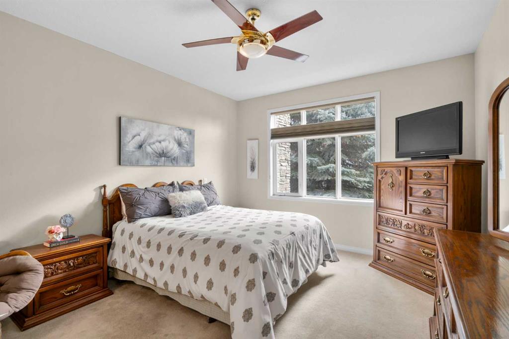 Located in Lake Bonavista Estates, this well-appointed 2-bedroom, 2-bathroom second-floor, south west facing unit offers a rare opportunity to enjoy quiet elegance, security & resort style living in one of Calgary’s most desirable gated communities – Bonavista Estates II. This bright, open-concept home offers 1,246 sq. ft. of thoughtfully designed living space with 9 foot ceilings, abundant natural light, and a layout that strikes the perfect balance of comfort, sophistication, & practicality. The airy living & dining areas feature a gas fireplace with tile surround & wood mantle, a wall of windows, an oversized private deck overlooking a quiet, beautifully landscaped courtyard with mature trees, peaceful greenspace plus sunny afternoon & sunset exposure. The spacious kitchen is ideal for entertaining & everyday living, showcasing maple cabinetry, tall cabinets, large pantry, a generous island and breakfast bar, drawer organizers, Bosch dishwasher, ample counter space, heated in-floor heating, tile in the entry & kitchen, hardwood in the living and dining rooms & carpet in the bedrooms, combining warmth, durability & style. The primary suite easily accommodates king sized furniture & includes two large double closets redesigned for exceptional storage, a relaxing 5 piece ensuite featuring double sinks, a soaker tub, separate shower & linen closet. The second bedroom is a perfect guest room or den, with an adjacent 3 piece bathroom. Highlights include laundry with full sized washer & dryer, extensive custom shelving and built-ins, central A/C, custom patio screen door, Hunter Douglas window coverings, gas BBQ hookup, a massive storage room #23 located in front of your titled heated underground parking stall #129, steps to the elevators plus plenty of surface guest parking. Bonavista Estates II is a secure, gated, pet-friendly (board approval), exceptionally well managed & financially sound complex, offering true lock-and-go, worry-free living with condo fees that include heat, water, trash, insurance, underground heated parking, landscaping, snow removal & unlimited access to premium amenities such as a resort style clubhouse with stone fireplace, fully equipped rentable kitchen, social lounge, games room with pool table, darts, & library, a fully equipped fitness center, 24 seat theatre room, two rentable guest suites, outdoor BBQ patio & gazebo, hobby room with billiards, car wash bay, air conditioning in the common areas, all conveniently located in Building 1000 & accessible by elevator & fob from this unit The location is truly unbeatable, with every amenity just minutes away. Walk across the street to Avenida Food Market, pharmacy, restaurants, Tim Hortons, Starbucks, Original Joe’s, Milestones, yoga studios, library, bus service right out front, easy access to the LRT, Southcentre Mall, Trico Centre & the natural beauty of Fish Creek Provincial Park for year-round recreation.