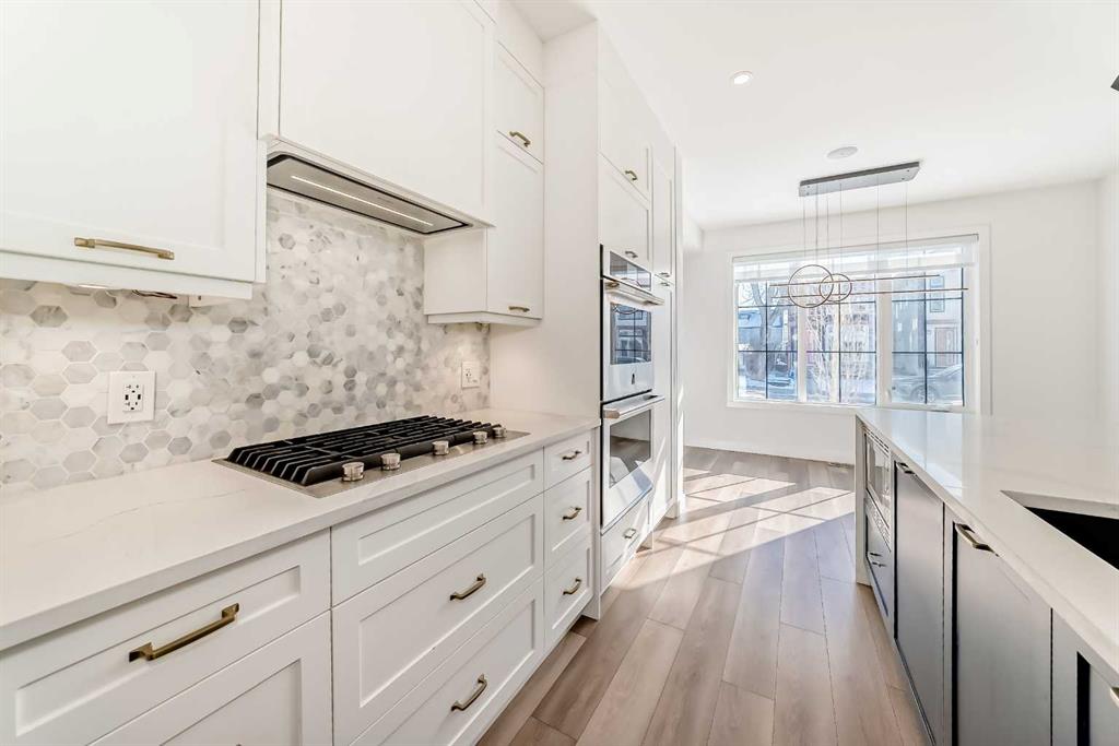 Discover the pinnacle of inner-city living in this custom-designed townhome, ideally situated in the heart of Renfrew. Thoughtfully crafted with an open-concept layout and rich textured finishes, this home seamlessly blends style and function. The heart of this home is a breathtaking chef-inspired kitchen that perfectly balances high-end performance with sleek design. Ideal for both everyday living and entertaining, it features a Blanco Silgranit sink, a custom full-height pantry, and elegant quartz countertops anchored by an impressive 12-foot waterfall island. The premium JennAir appliance package includes a 5-burner gas cooktop, a 48-inch built-in refrigerator/freezer, and a double wall oven. Upstairs, you’ll find two spacious bedrooms, each with its own ensuite, along with a well-appointed laundry room offering built-in shelving and generous storage. The primary suite comfortably accommodates a king-sized bed, boasts an oversized walk-in closet, has high vaulted ceilings, and a luxurious five-piece ensuite. The fully developed basement extends the living space with a third bedroom, an additional bathroom, and a wet bar—perfect for guests or entertaining. Additional highlights include a living room fireplace, built-in closet organizers throughout, a BBQ gas line, air conditioning, built in speakers, a kinetico water softerner and smart home features such as a Nest thermostat and doorbell. With a Walk Score of 82 and a perfect Bike Score of 100, you’re just a 5-minute drive or a quick 9-minute bike ride from downtown. This exceptional inner-city home is a must-see.