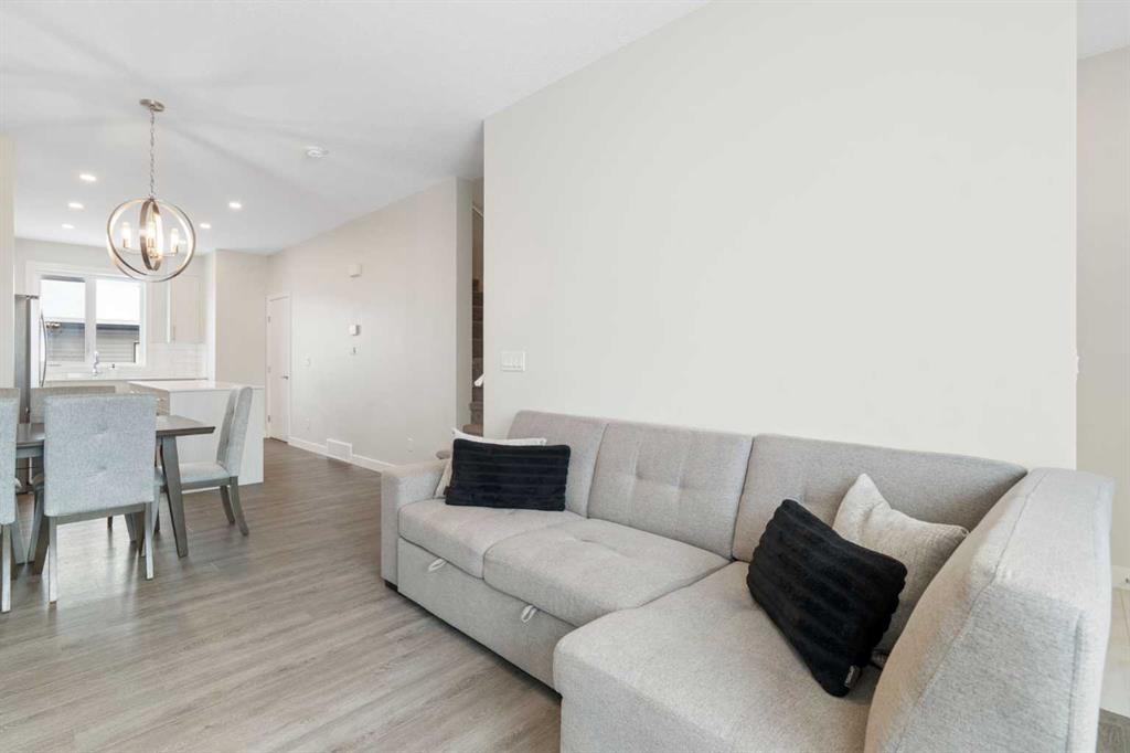 Welcome to your new home in the vibrant and growing community of Homestead in NE Calgary! If you’ve been dreaming of homeownership with the right blend of style, comfort, and convenience—this is it. Step inside this beautifully maintained NO-CONDO-FEE, end unit townhouse and you’ll immediately notice the inviting open-concept layout that makes the space feel light, airy, and welcoming. Whether you’re hosting friends for dinner or just enjoying a quiet night in, the seamless flow from the kitchen through the dining area to the living room creates the ideal setup for modern living. The kitchen is a standout feature, complete with a large center island topped with sleek quartz counters, stainless steel appliances, and plenty of cabinet and counter space for all your cooking needs. It opens right into the dining and living areas, so you’ll never feel cut off while entertaining or watching your favorite show while making dinner. Just off the main level, you’ll find the fully fenced backyard – offering just the right amount of outdoor space for container gardening or relaxing in the sun. Upstairs, you’ll find three generous bedrooms, including a primary retreat with a walk-in closet and a private 4-piece ensuite. A second 4-piece bathroom and convenient laundry room complete the upper floor, making daily routines a breeze. The basement currently offers extra storage space but has loads of potential to be developed to feature a rec room, a home gym, or an office. This home comes with a tankless hot water system, plus a double detached garage. You’re also in a prime location, walking distance to future playgrounds, playing fields, schools, shops, transit and much more. Plus, with easy access to Stoney Trail, McKnight Blvd, Country Hills Blvd and Airport Trail, commuting or getting around the city couldn’t be more convenient. If you are looking for a move-in ready home that combines functionality, comfort, and lifestyle—this one checks all the boxes. Come see what life in Homestead has to offer. You’re going to love it here!