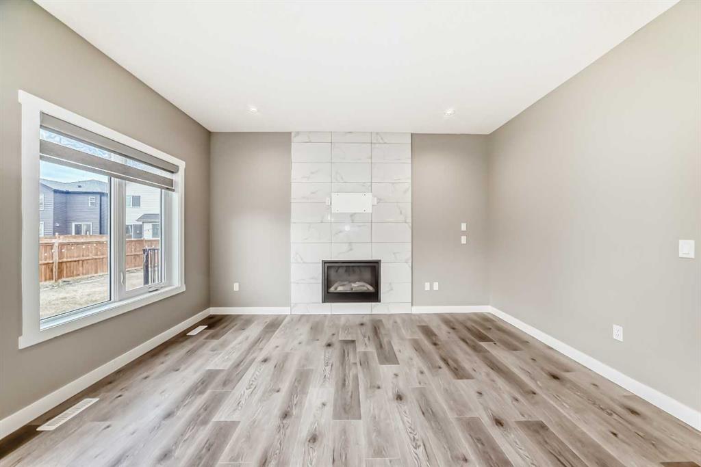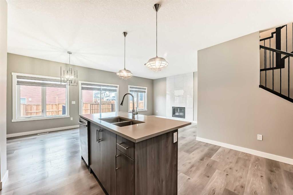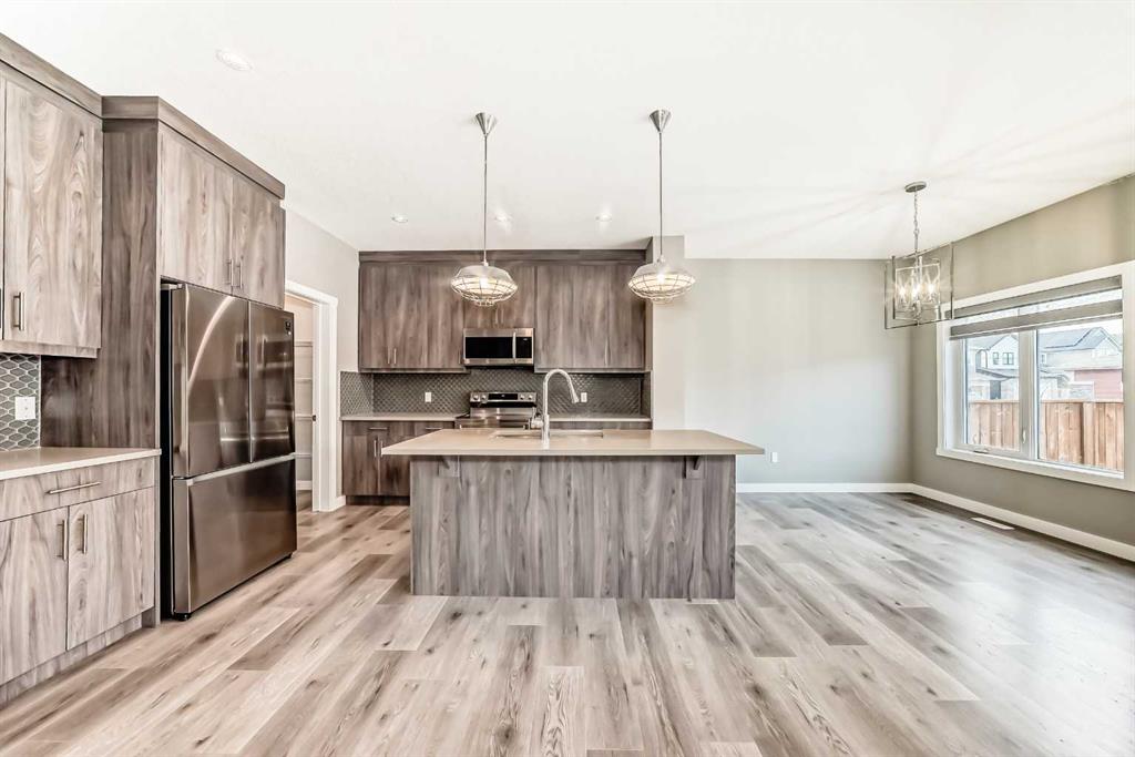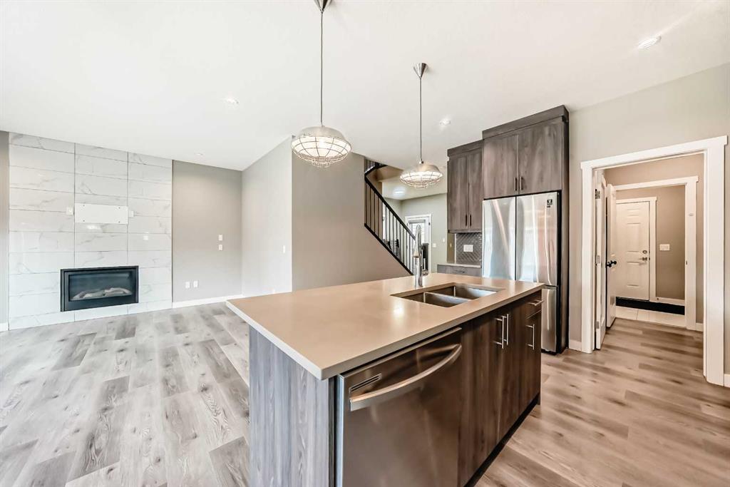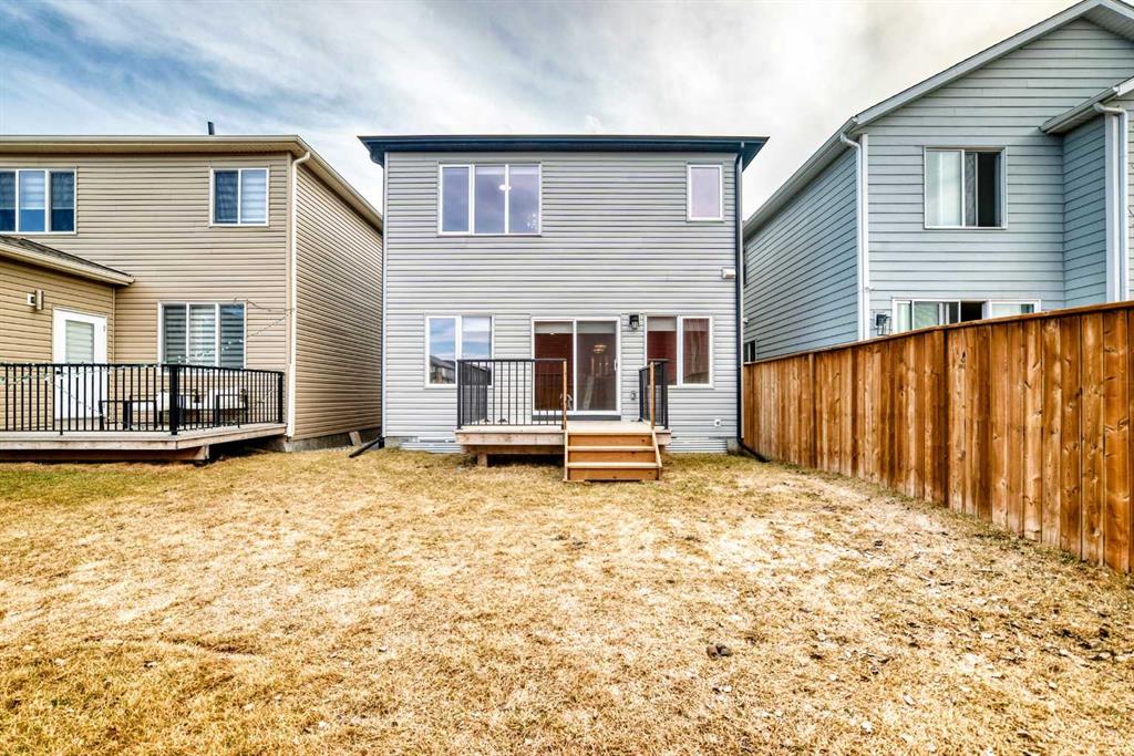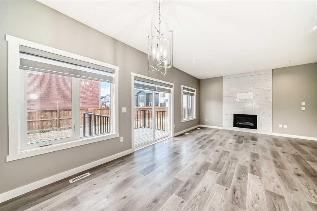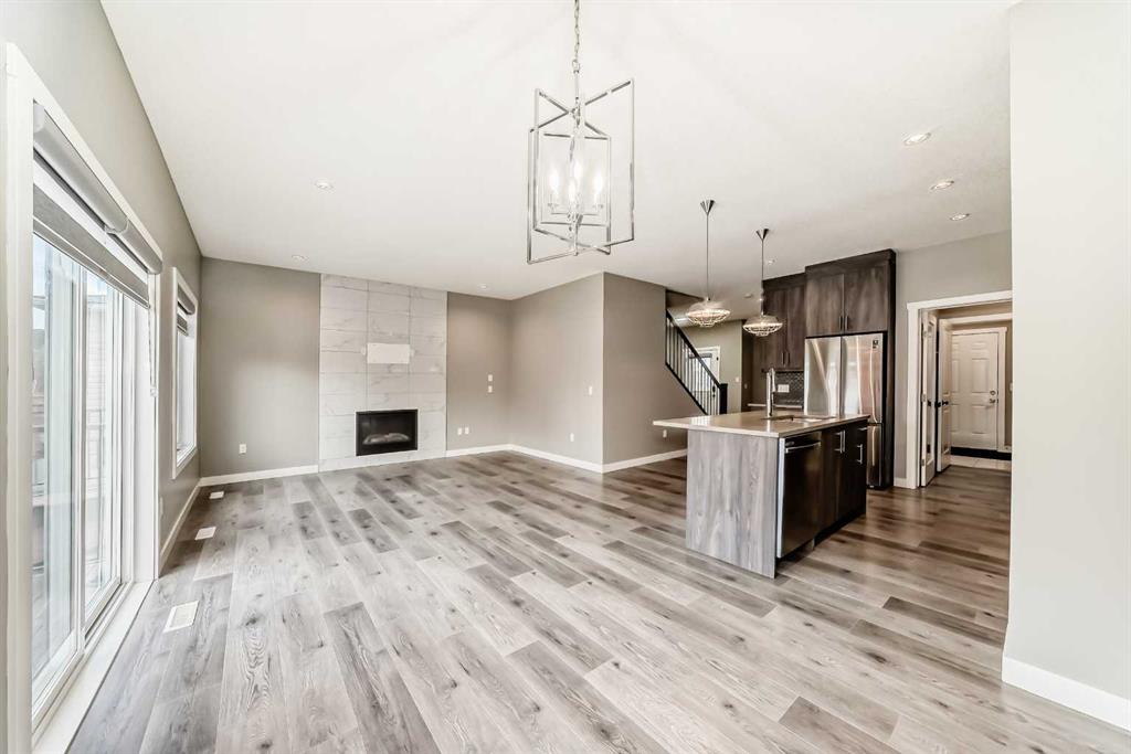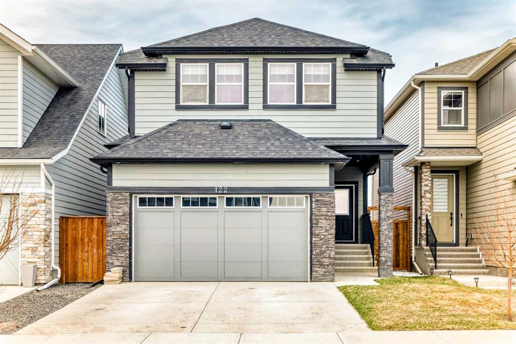 BETTER THAN NEW! Welcome to a beautiful 2-story detached home with 3 bedrooms and 2.5 baths in desirable Legacy SE Calgary. FRESH NEW PAINT throughout! Entrance way is welcoming with tiled front entry and leads to a cozy living room with gas fireplace . This home features many upgrades such as high ceilings, LVP flooring, taking up the stairs giving it an open feel. upgraded lighting, blinds, quartz countertops throughout, PREMIUM HARDIE BOARD SIDING on front exterior. As you enter through the front door you are greeted by a spacious tiled foyer with a bench and 9ft ceilings on the main floor. The main floor consists of a powder room, mudroom with closet and shelves, a walk-through pantry with ample storage space leading to the kitchen. The stunning kitchen entails full height kitchen cabinets, stainless-steel appliances, quartz countertops, full tile backsplash, and an island for additional seating. The living room has a decorative TILED GAS fireplace and open concept living and dining complete the main floor. The stairs leading to second floor consist of an upgraded black spindle railing giving it an open feel. Upstairs is a large bonus room with tray ceiling. The Primary bedroom is set aside from the 2 other bedrooms and also beautifully drained with Tray ceiling and an elegant 5 pc bathroom with private toilet also has a upgraded tray ceiling, elegantly designed 5-pce ensuite with private toilet, dual vanities, a soaker tub, stand-up glass tiled shower, and a walk-in closet with plenty of space! The upper floor provides for two more south facing sun filled spacious bedrooms, a laundry room with Samsung washer/dryer, linen closet for storage and a full 3-pce bathroom.
