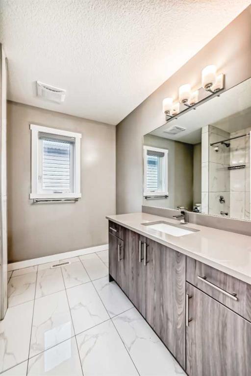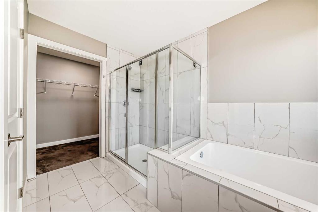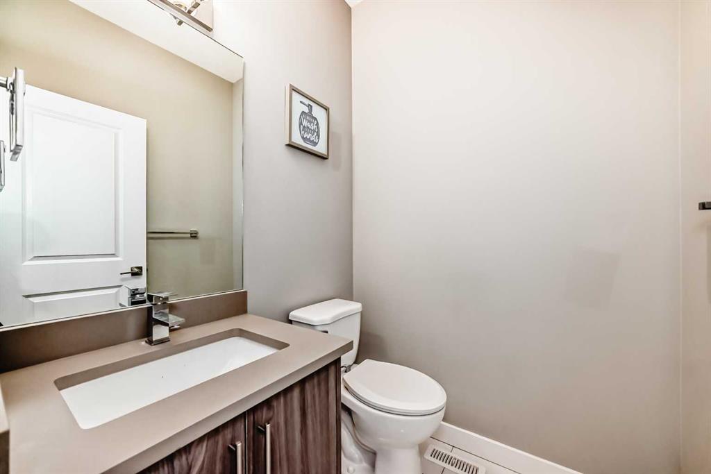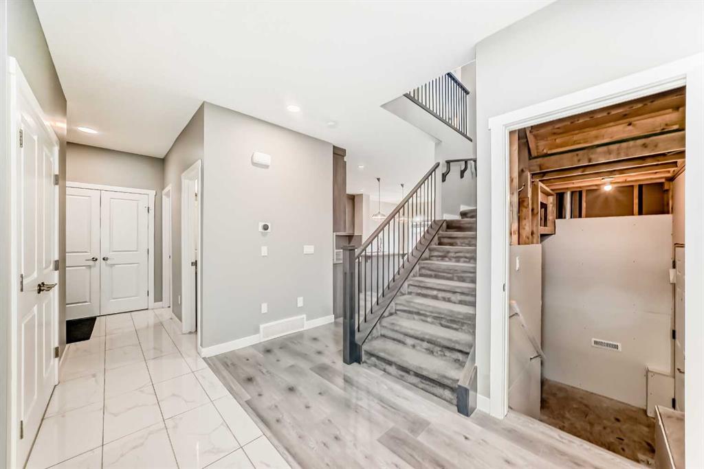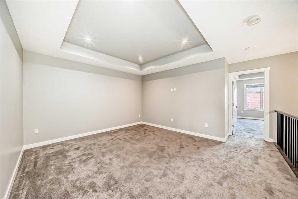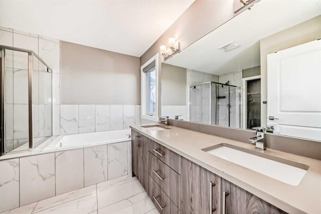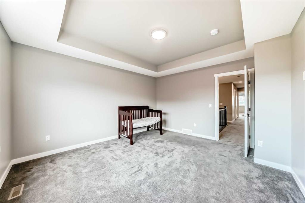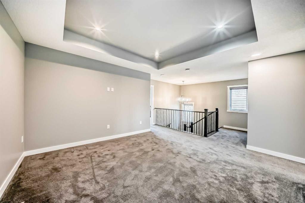 BETTER THAN NEW! Welcome to a beautiful 2-story detached home with 3 bedrooms and 2.5 baths in desirable Legacy SE Calgary. FRESH NEW PAINT throughout! Entrance way is welcoming with tiled front entry and leads to a cozy living room with gas fireplace . This home features many upgrades such as high ceilings, LVP flooring, taking up the stairs giving it an open feel. upgraded lighting, blinds, quartz countertops throughout, PREMIUM HARDIE BOARD SIDING on front exterior. As you enter through the front door you are greeted by a spacious tiled foyer with a bench and 9ft ceilings on the main floor. The main floor consists of a powder room, mudroom with closet and shelves, a walk-through pantry with ample storage space leading to the kitchen. The stunning kitchen entails full height kitchen cabinets, stainless-steel appliances, quartz countertops, full tile backsplash, and an island for additional seating. The living room has a decorative TILED GAS fireplace and open concept living and dining complete the main floor. The stairs leading to second floor consist of an upgraded black spindle railing giving it an open feel. Upstairs is a large bonus room with tray ceiling. The Primary bedroom is set aside from the 2 other bedrooms and also beautifully drained with Tray ceiling and an elegant 5 pc bathroom with private toilet also has a upgraded tray ceiling, elegantly designed 5-pce ensuite with private toilet, dual vanities, a soaker tub, stand-up glass tiled shower, and a walk-in closet with plenty of space! The upper floor provides for two more south facing sun filled spacious bedrooms, a laundry room with Samsung washer/dryer, linen closet for storage and a full 3-pce bathroom.
