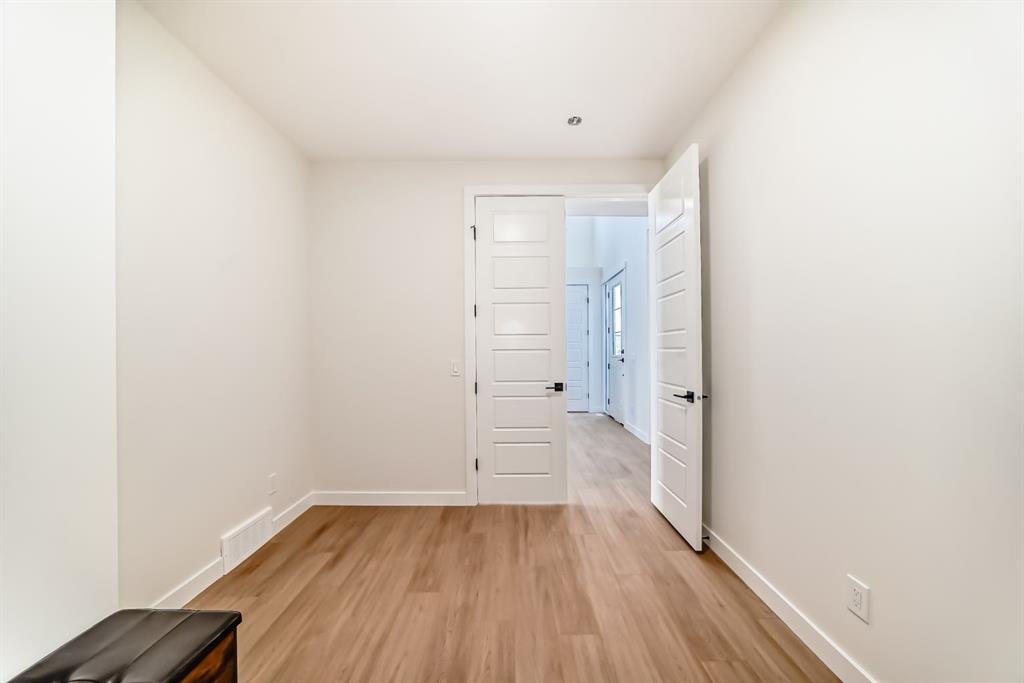 Welcome to Waterford Estates, one of Chestermere’s most sought after new communities. Built by Paramount Homes, this brand new duplex blends modern design with thoughtful functionality, making it an ideal choice for families. The open concept main floor is filled with natural light and features a stylish living room with a contemporary fireplace, a beautifully appointed kitchen with quartz countertops, sleek cabinetry, and a walk-in pantry, along with a full bathroom and a versatile main floor office or flex space. Upstairs, you’ll find a spacious bonus room, convenient upper floor laundry, and three well sized bedrooms, including a luxurious primary retreat complete with a spa inspired ensuite and walk-in closet. The undeveloped basement, featuring a separate side entrance, offers exceptional potential for a future suite or additional living space. Finished with a double attached garage and ideally located near parks, schools, shopping, and the scenic shores of Chestermere Lake, this home delivers the perfect balance of comfort, style, and long term value.