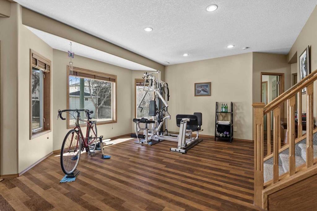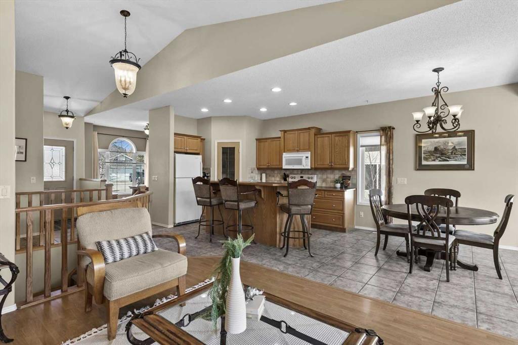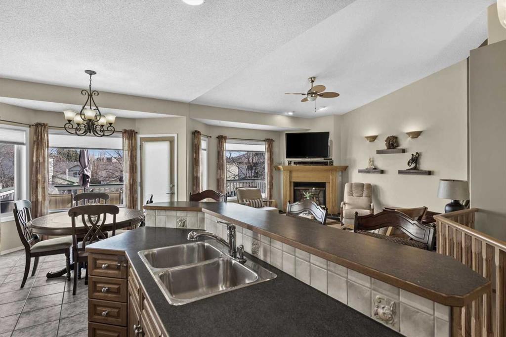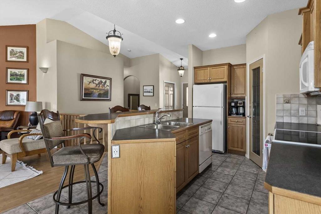 Welcome to this beautifully maintained walkout bungalow nestled on a quiet cul-de-sac in the highly sought-after community of West Terrace in Cochrane. From the moment you arrive, this home invites you to slow down, breathe deeply, and imagine the life you could be living here every single day. Step inside and you are greeted by a warm and inviting main floor thoughtfully designed for both the rhythm of daily family life and the joy of entertaining. The kitchen is the true heart of this home, featuring rich oak cabinetry, a premium appliance package, and an abundance of counter space that makes every meal a pleasure to prepare. The large central island with breakfast bar is a natural gathering spot, perfect for quick weekday breakfasts or lingering weekend mornings with the people you love most. A dedicated pantry keeps everything neatly organized, and the coffee station ensures your mornings begin on exactly the right note. The adjacent spacious dining room is ideal for hosting dinner parties and opens seamlessly onto a massive deck that spans the full width of the home, overlooking a large & private backyard. Picture summer evenings entertaining friends, lazy Sunday mornings with a coffee in hand, or watching the kids play freely in the yard below. The primary bedroom is a true retreat, a quiet and generous sanctuary tucked away from the bustle of the main living areas. After a long and full day, this is the space where you come to exhale, recharge, and truly unwind. Thoughtfully positioned to offer privacy and calm, it is the kind of bedroom that makes you genuinely look forward to the end of the day. A second bedroom and a versatile den, ideal for a home office or reading room, complete the main floor alongside a two-piece powder room. Venture downstairs and you will find a bright and beautifully finished walkout lower level that truly sets this home apart. Soaring nine-foot ceilings & oversized windows bathe every corner in natural light, creating a space that feels expansive and welcoming. Two additional bedrooms and a dedicated laundry area provide practical comfort for the whole family. The home gym means your wellness routine is always just steps away. The media room is the ultimate retreat, the perfect place to catch the newest release or cheer on your favourite team on game night. The separate games room gives every member of the family their own space to unwind & recharge. Outside, a side drive provides dedicated RV and boat storage and additional parking options, a rare and genuinely valuable feature, and the double attached garage adds year-round practicality. West Terrace in Cochrane is one of those communities that instantly reminds you why you chose this lifestyle. Tucked into the foothills and bordered by the Bow River, nature is not just nearby, it is part of your everyday routine. Morning walks along the river, evening strolls through open pathways, and the ever-present backdrop of the Rocky Mountains make this a truly special place to call home.