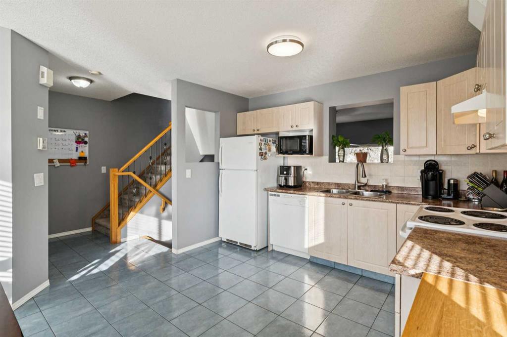 Additional highlights include an attached single-car garage, an extra-long driveway for additional parking, and recent roof replacement. Conveniently located near East Hills Shopping Centre, Tim Hortons, Elliston Park, transit, and with quick access to Stoney Trail, this home offers an excellent balance of space, functionality, and low-maintenance living. Backing onto green space, this property provides added privacy and a peaceful outdoor setting, making it a great opportunity for buyers seeking convenience and comfort.