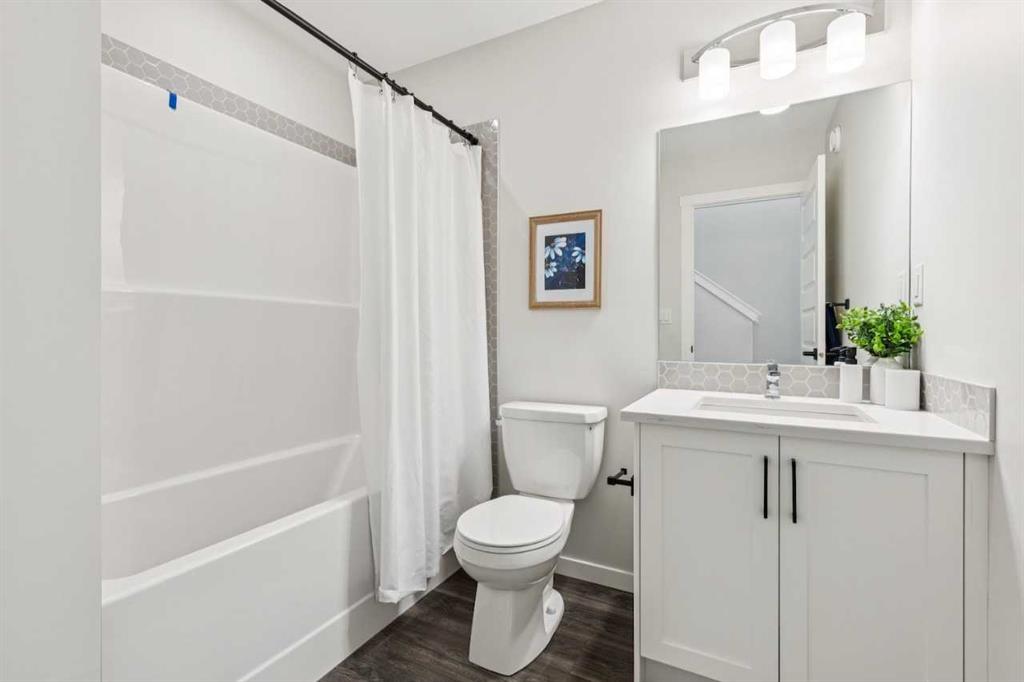 Welcome to Ambrosia, a beautifully designed 2-bedroom, 2.5-bath, two-storey stacked townhome in the scenic community of Crimson Ridge. Take in stunning views of the Bow Valley River, Downtown Calgary, and Canada Olympic Park, with a golf course just steps from your door. The open-concept main floor is perfect for entertaining, featuring a spacious kitchen island and luxury vinyl plank flooring throughout the main level and bathrooms. Upstairs offers two generous bedrooms designed for comfort and privacy, including a primary bedroom with walk-in closet and private ensuite, along with the convenience of upper-floor laundry. Built for superior energy efficiency with triple-pane windows and enhanced insulation, this home provides year-round comfort and reduced energy costs. Thoughtfully crafted for modern living. Photos are representative.
