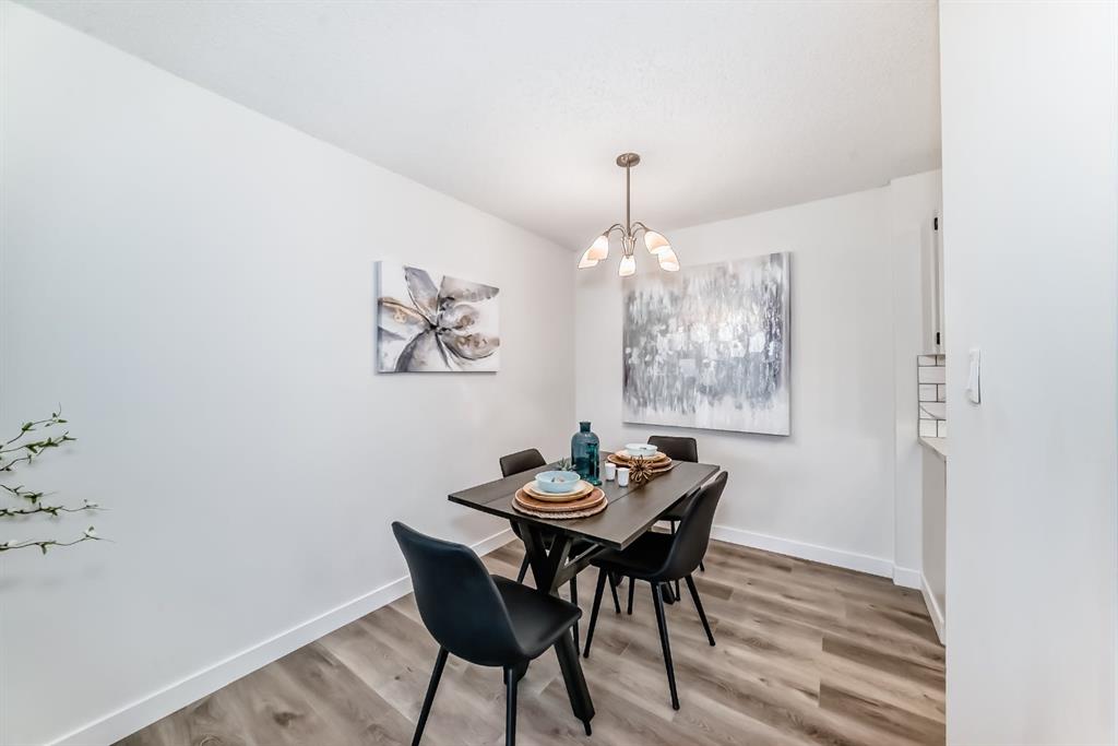 The upgraded kitchen includes new countertops, a new S/S sink with an upscale faucet, a trendy backsplash, and freshly painted kitchen cabinets. Off the kitchen is the dining area, which opens onto the large living room. Wall-to-wall windows and a patio door open onto the west-facing deck to capture the afternoon sun – it’s the ideal spot to savour a glass of wine as the day unfolds or to host a relaxed barbecue with family and friends! The bedroom has space for a king-size bed and a small sitting/desk area. The closet has ample room for all your clothes, shoes, handbags, etc. The 4-piece bathroom has been updated with a new comfort-height toilet, a reglazed bathtub, a dazzling vanity light, a new countertop, a new backsplash, and a new faucet. This condo has a warm, inviting atmosphere, with abundant natural light flooding the main areas. Particularly notable is the in-suite laundry room with a stacking washer and dryer, a standout feature, especially since many units in the complex don’t offer this. In addition, this residence includes an assigned outdoor parking stall just steps from the building’s secondary entrance. Ideally situated in the heart of Haysboro, the condo provides quick access to the C-train, nearby bus stops, major thoroughfares, and an array of established shopping destinations, restaurants, cafés, and everyday conveniences. This condo is beautifully presented, with show-home-style furniture and artwork, some of which may be purchased separately for a turnkey move-in option.