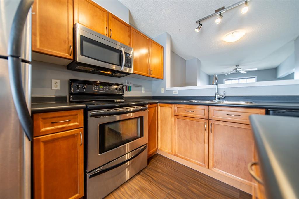Welcome to this beautifully updated end-unit townhome, ideally located in one of the best spots in the complex with unobstructed panoramic mountain views. Offering over 1,100 sq ft, this home features a functional dual primary bedroom layout, each with walk-in closets and private 4-piece ensuites. The main floor is bright and open with a soaring 14-foot ceiling in the living room, a spacious dining area, and a well-appointed kitchen complete with a centre island, stainless steel appliances, and full pantry. Enjoy your sunny west-facing front patio, the perfect place to take in stunning views of 12 Mile Coulee, Lynx Ridge Golf Course, and the Rocky Mountains. The lower level offers a large storage/laundry area and direct access to the double attached garage. Ideally located close to schools, parks, pathways, shopping, restaurants, and the Tuscany Club, this home offers exceptional value in a sought-after community.