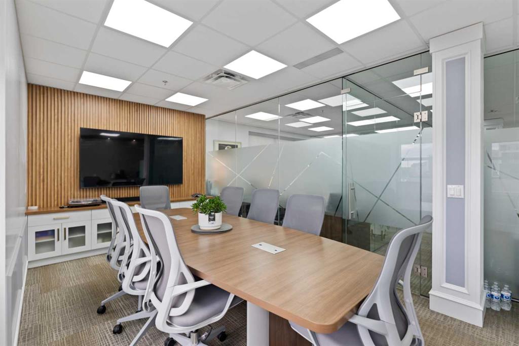 The unit features a functional layout with three private offices, a spacious conference room, and a convenient kitchenette, making it ideal for a variety of business uses. Large windows provide ample natural light, creating a bright and productive work environment.