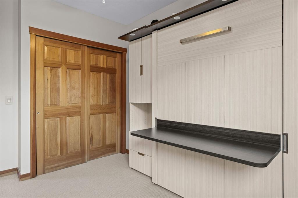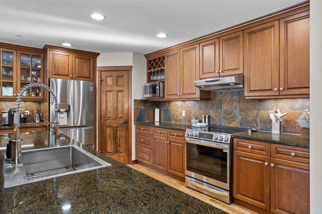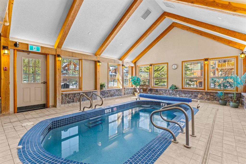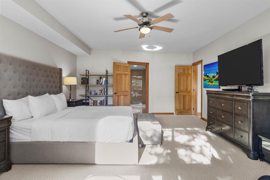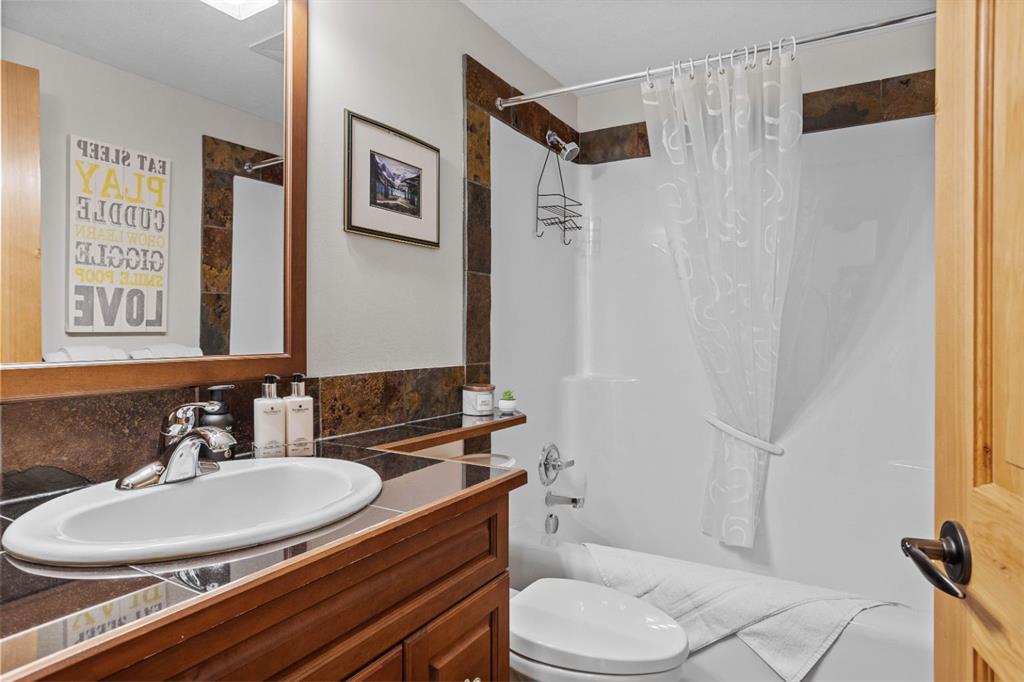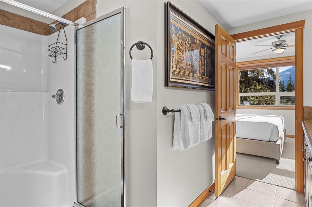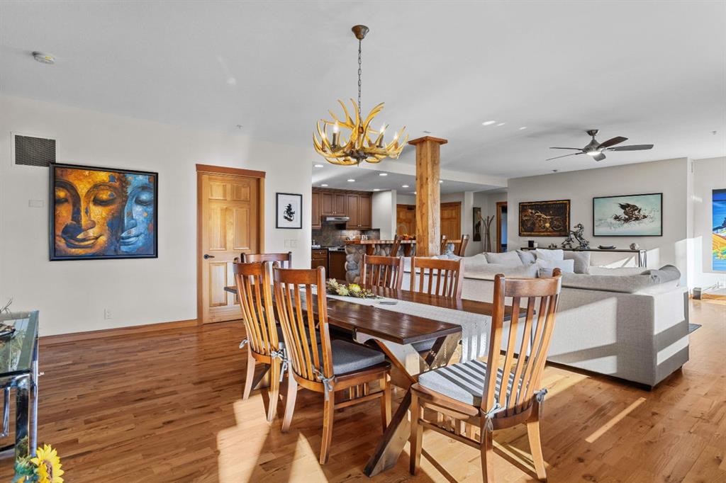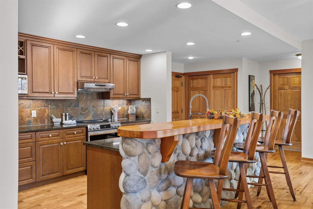 Experience the best of mountain living at this stunning 3-bedroom, 3-bathroom, single level condo in Trailside Lodges. Spanning over 2000SF, this property offers breathtaking, Southeast-facing mountain views, an abundance of natural light, and a seamless blend of comfort and style. You feel the warmth and spaciousness here from the moment you step inside this beautiful open-concept living area with floor-to-ceiling stone fireplace and beautiful hardwood flooring. The gourmet kitchen features high-end finishes, generous counter space, and lots of cupboards, ideal for culinary enthusiasts. The primary suite is a fabulous private retreat with space for a lounge area, direct deck access, and a large ensuite with a corner jetted tub, double vanity, spacious shower, water closet and walk-in closet. A second master suite also boasts direct deck access, a walk-in closet, and another elegant ensuite with double vanities. The third bedroom, tucked away for privacy, enjoys its own unique mountain views with a third full bathroom nearby. An oversized laundry room with additional flex space add to the home’s thoughtful design and offer tons of storage room. Enjoy outdoor living year-round on the impressive 35′ x 9′ partially covered deck, complete with a roll-down sunshade and patio heater, providing a comfortable space to take in the incredible mountain vistas. A number of recent upgrades have been completed, including new appliances, new kitchen sink/faucet, new toilets, & a murphy bed. Ownership at Trailside Lodges includes access to one of the best-outfitted clubhouses in Canmore, with hands down, the best outdoor hot tub with unbelievable panoramic views, an indoor resistance pool, a well-equipped fitness center, billiards & games loft, and a theatre room. Additional conveniences include a heated underground parking stall, storage for all your seasonal gear, and ample guest parking. This home is move-in ready and offers the perfect lock-and-leave lifestyle without compromising space or luxury.