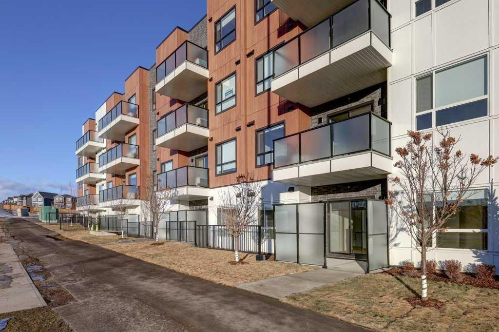 INTRODUCING GLACIER RIDGE, IN BEAUTIFUL NORTHWEST CALGARY. BUILT BY CEDARGLEN LIVING, WINNER OF THE Customer Insight BUILDER OF CHOICE AWARD, 6 YEARS RUNNING! BRAND NEW “GR07R” unit with high-spec features. You will feel right at home in this well thought-out, 915.99 RMS sq.ft. 2 bed, 2 bath home with open plan, 9′ ceilings, LVP flooring throughout (NO CARPET), Low E triple glazed windows, BBQ gas line on the patio, Fresh Air System (ERV), A/C rough-in, and so much more. The kitchen is spectacular with full height, two tone cabinets, quartz counters, upgraded bank of drawers for pots and pans, undermount sink, rough-in water line to the fridge and S/S appliances. The island is extensive with built in flush breakfast bar, which transitions into the spacious living area, perfect for entertaining. The spacious primary bedroom has a large bright window (triple pane windows) and huge walk-in closet. You’ll be impressed with the 4pc ensuite with double vanities and stand up shower. The second bedroom is located on the other side of the unit for privacy and a 4pc bath with quartz counters, and undermount sink is located next to it. Nearby is the spacious laundry/storage room, this is a must see (washer & dryer included). Highlights include: Hardie board siding, designer lighting package, sound reducing membrane to reduce sound transmission between floors, clear glass railing to balconies and 1 titled underground parking stall included. A once in a lifetime community in Northwest Calgary. Framed by views of the Rocky Mountains and distinguished by natural coulees that cross the land, Glacier Ridge offers a rare chance for families to live in a new community. PET FRIENDLY COMPLEX, IMMEDIATE POSSESSION AVAILABLE AND DON’T FORGET TO CHECK OUT THE VIRTUAL TOUR.