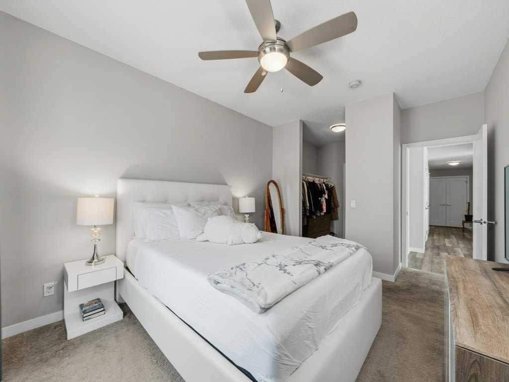 Step outside to your large, covered stamped concrete patio with southeast exposure looking onto the tranquil green space, with a BBQ gas line and plenty of room for seating and container gardening. Additional features include in-suite laundry, radiant in-floor heating, a titled underground tandem parking stall for two vehicles, a separate assigned storage unit and bicycle storage. This pet-friendly building welcomes up to two dogs or cats with no size or breed restrictions, and is professionally managed with a strong reserve fund and reasonable condo fees. Located just steps from extensive shopping, dining, fitness, and the scenic pathways of Radio Park, with easy access to major routes including Old Banff Coach Road, 85 Street and Stoney Trail.