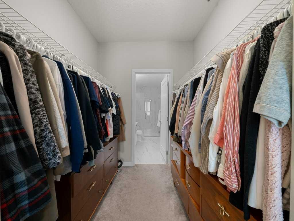 The well-designed floor plan offers two spacious bedrooms and two full bathrooms, including a primary retreat with a walk-in closet and private ensuite. The second bedroom enjoys its own “cheater” access to a four-piece bath—ideal for guests or shared living. Storage is abundant throughout – the most I’ve seen in any condo of this size – making this home as practical as it is beautiful with a space for everything.