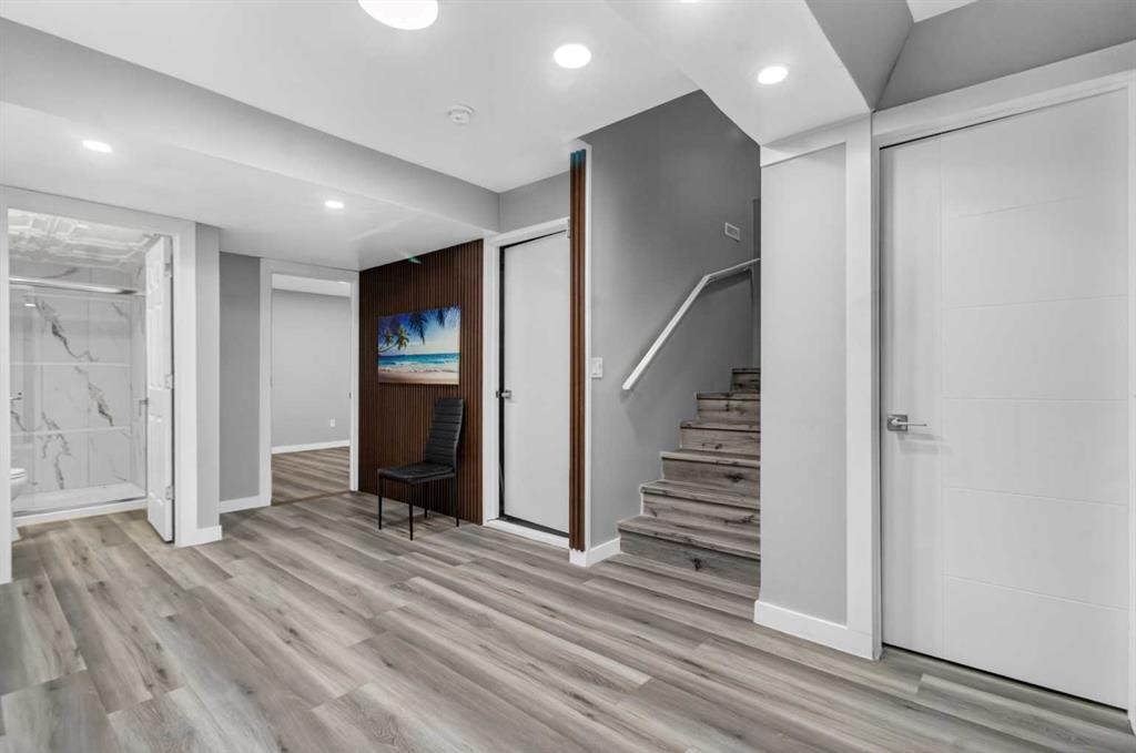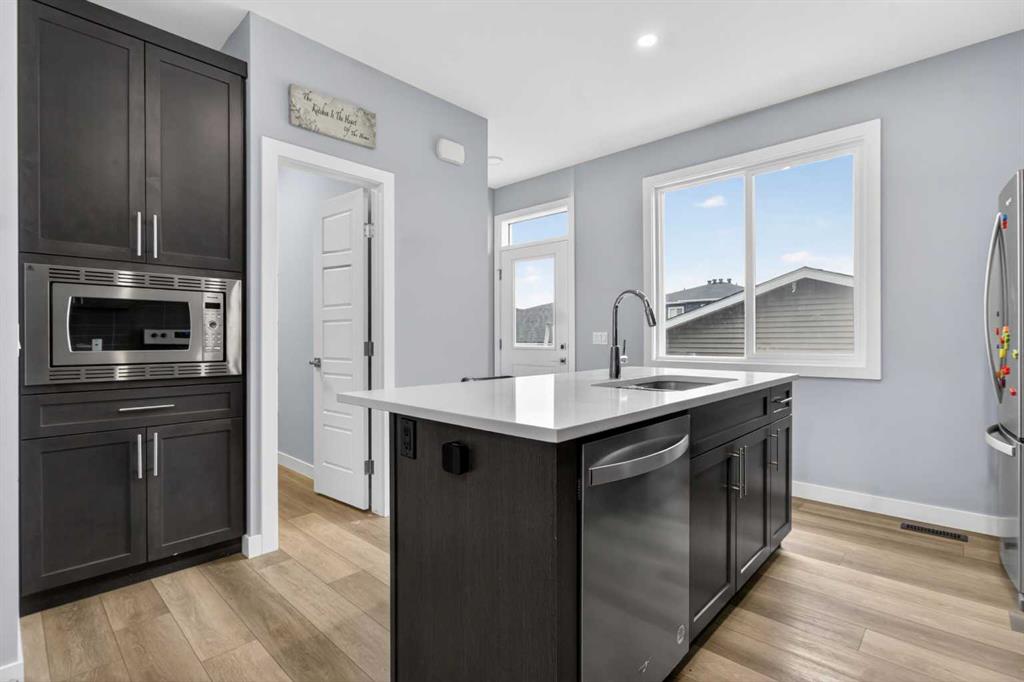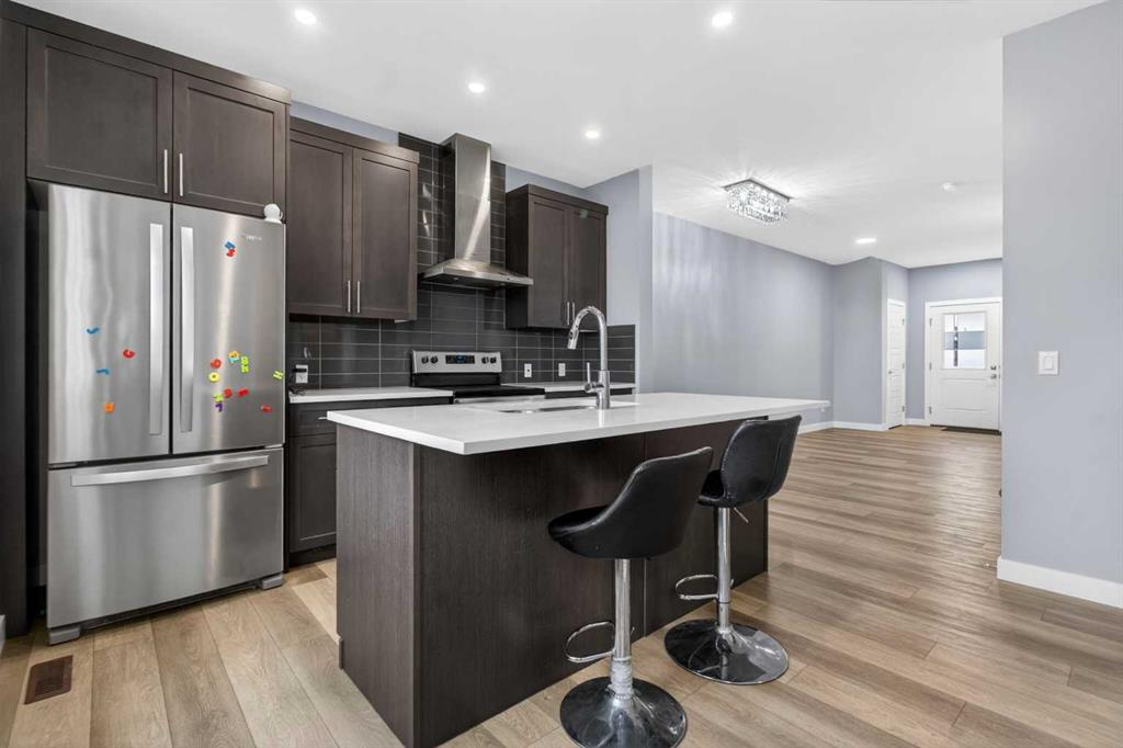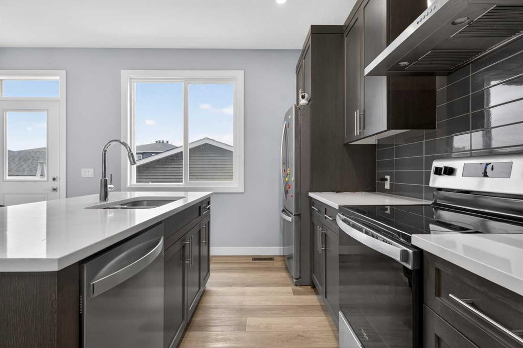 BEST PRICE FOR DETACHED with 2-CAR GARAGE, FINISHED BASEMENT with SEPARATE ENTRANCE and DECK | Welcome to 124 Chelsea Glen, a modern and spacious 5-bedroom, 3.5-bath home built in 2022 in the family-friendly community of Chelsea. This bright two-storey offers an open-concept main floor with a stylish kitchen, quartz countertop, ample cabinetry, pantry, large island for meal prep, half bath, and a bonus room, perfect for guests or a home office. The upper level offers three bedrooms, including a primary suite with a 3-piece ensuite, along with two additional bedrooms, a full bathroom, and convenient upper-floor laundry. The fully finished basement adds outstanding versatility with two more bedrooms, a full bathroom, and dedicated storage space, making it ideal for extended family or future potential. Outside, enjoy a large back deck, low-maintenance yard, and an oversized double detached garage with extra parking. Located in the desirable Chelsea neighborhood, you’re close to schools, parks, pathways, shopping, Chestermere lake and all the amenities Chestermere has to offer. Start your next chapter in Chestermere—reach out now to view this beautiful home.