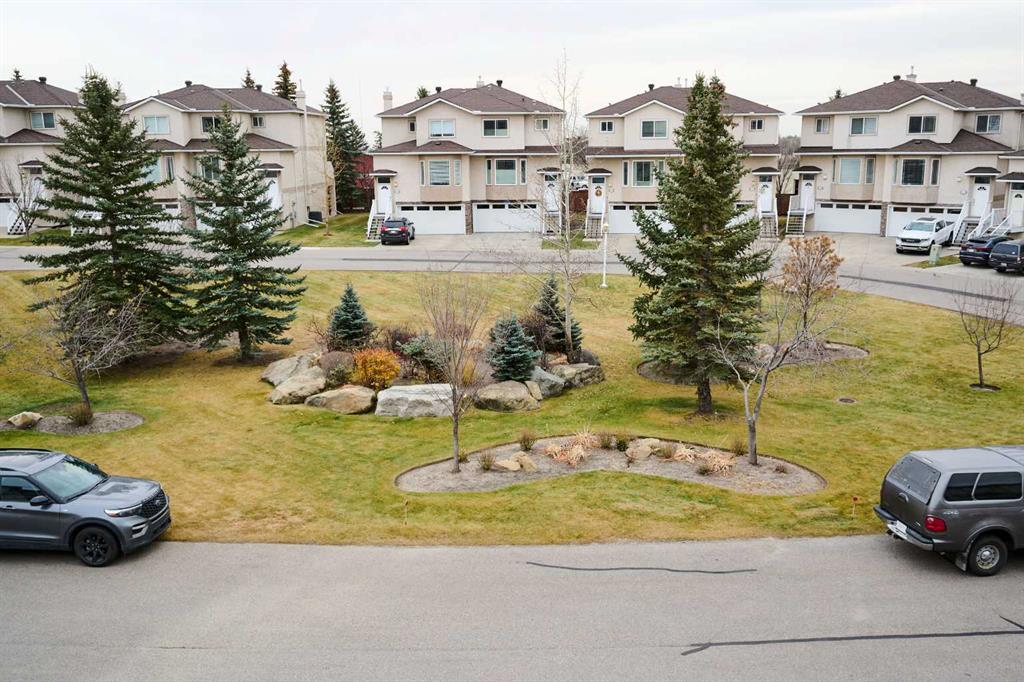 Welcome to The Fairways Vistas, your new home! This recently renovated executive-style townhome offers spacious living paired with stylish comfort and smart design. As you walk in, a mid-century partition opens up to a bright main living area featuring a large bay window that fills the room with natural light and courtyard views. The corner gas fireplace adds warmth and atmosphere, especially during those fall evenings. Next to the living room, a dropped ceiling defines the open dining area, which can also serve as a perfect spot for a home office. Past the main floor powder room is a modern kitchen outfitted with stainless steel appliances, quartz countertops, and elegant oak cabinetry. The practical layout includes generous counter space, a pantry near the range, and an oversized sink with a garburator, making meal prep easy. Hosting is simple with a sizable peninsula that features a built-in microwave, eating bar, and wine fridge. The adjacent breakfast nook is designed for gatherings and gives access to a large rear deck, complete with a gas hookup for barbequing and mature trees for privacy and shade. Upstairs are two large master suites. The primary suite has a walk-through closet leading to a roomy bathroom with a soaker tub, separate shower, and a wide vanity perfect for two sinks if desired. An adjoining flexible space works well as a reading nook, yoga area, or nursery. The second suite overlooks the SE facing courtyard and comes with a walk-through closet with custom wood shelving and upgraded organizers, plus its own full bathroom! The lower level provides a versatile ground-level area accessible from the double garage—ideal for a gym, hobby room, home office or extra storage. It’s prepped for a future bathroom if you want to convert it into a lower-level laundry, wine making or mudroom. This home offers more space than most brand new builds and features larger and more private grounds. Premium upgrades including luxury vinyl plank flooring throughout, fresh paint, and updated lighting. Recent updates feature a fiberglass front door, insulated garage door with tinted windows, resurfaced deck and entryway, composite steps with aluminum railing, and improved roofing and gutters. Residents enjoy modern amenities in a mature community, close to golf courses, walking paths, the airport, major traffic routes, and all kinds of shopping. Schedule a visit to discover the comfort and lifestyle this outstanding residence has to offer.